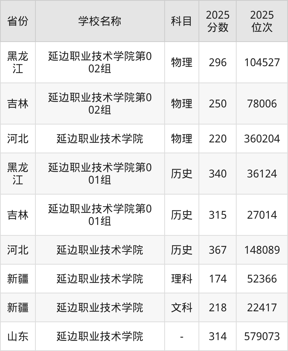 一、2025延边职业技术学院录取分数线