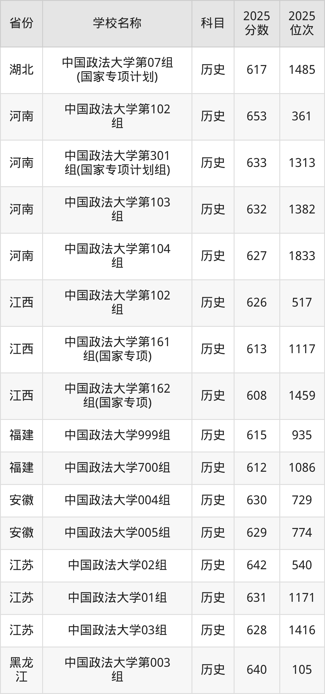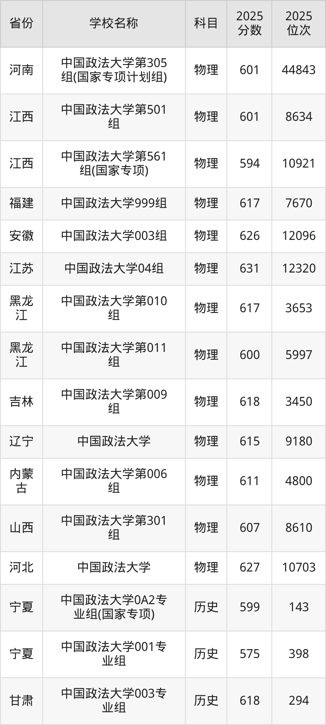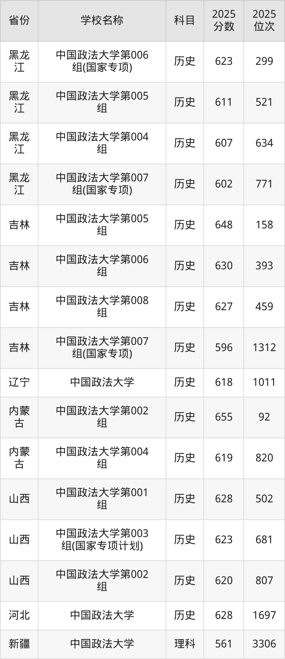中国政法大学2025年有5个专业组面向北京市内的考生招生: