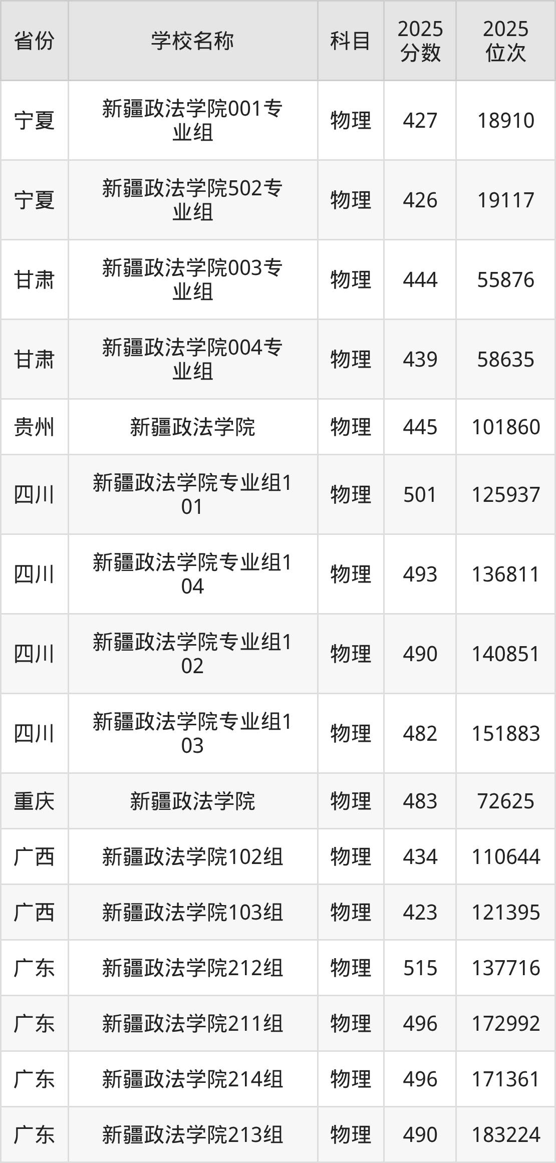 可见,新疆政法学院的不同科目,在“招生专业、录取分数线”等方面有较大区别。不同科目组之间的分数线差距高达51分。