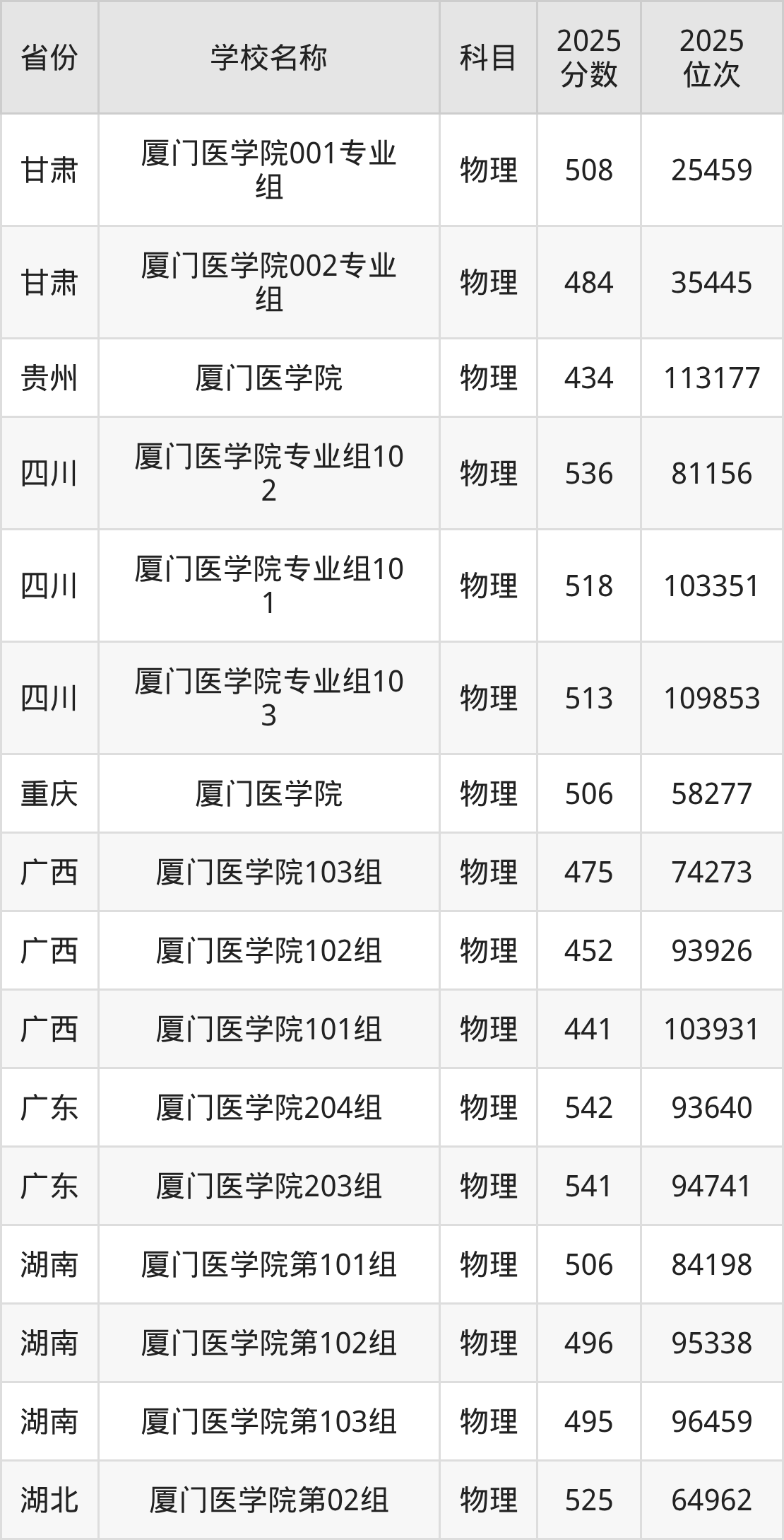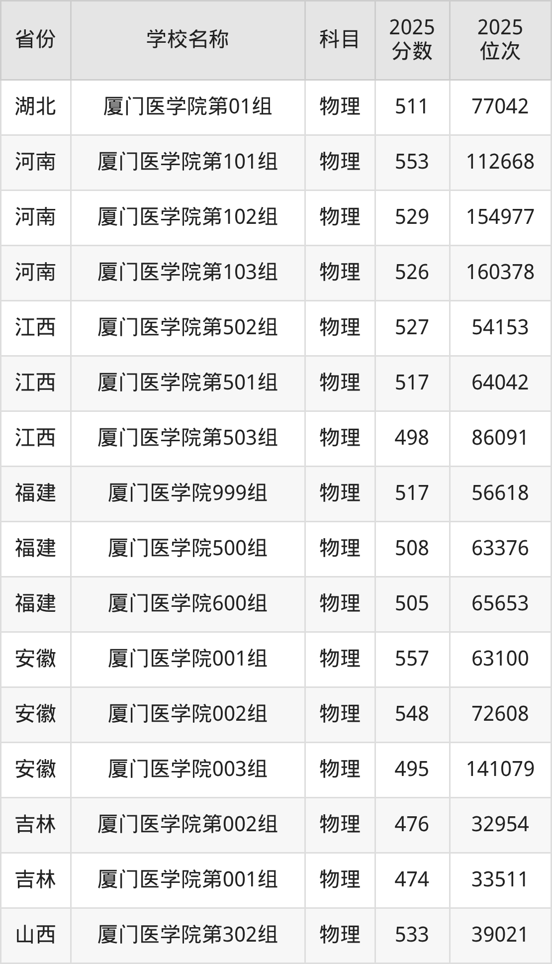 厦门医学院2025年有7个专业组面向福建省内首选了物理科目的考生招生: