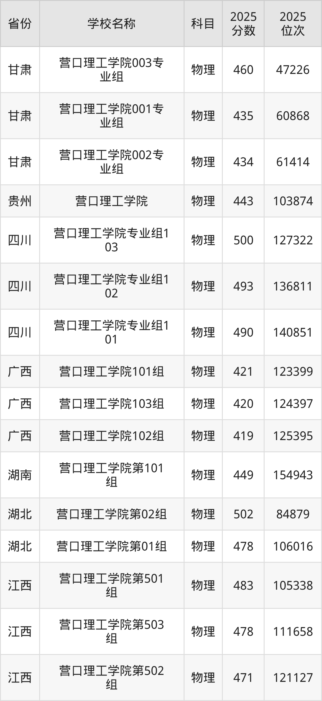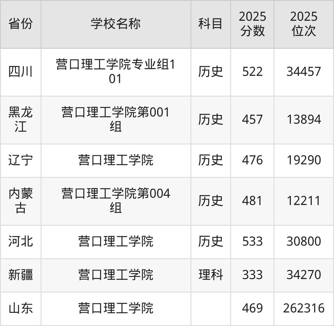 一、2025营口理工学院录取分数线