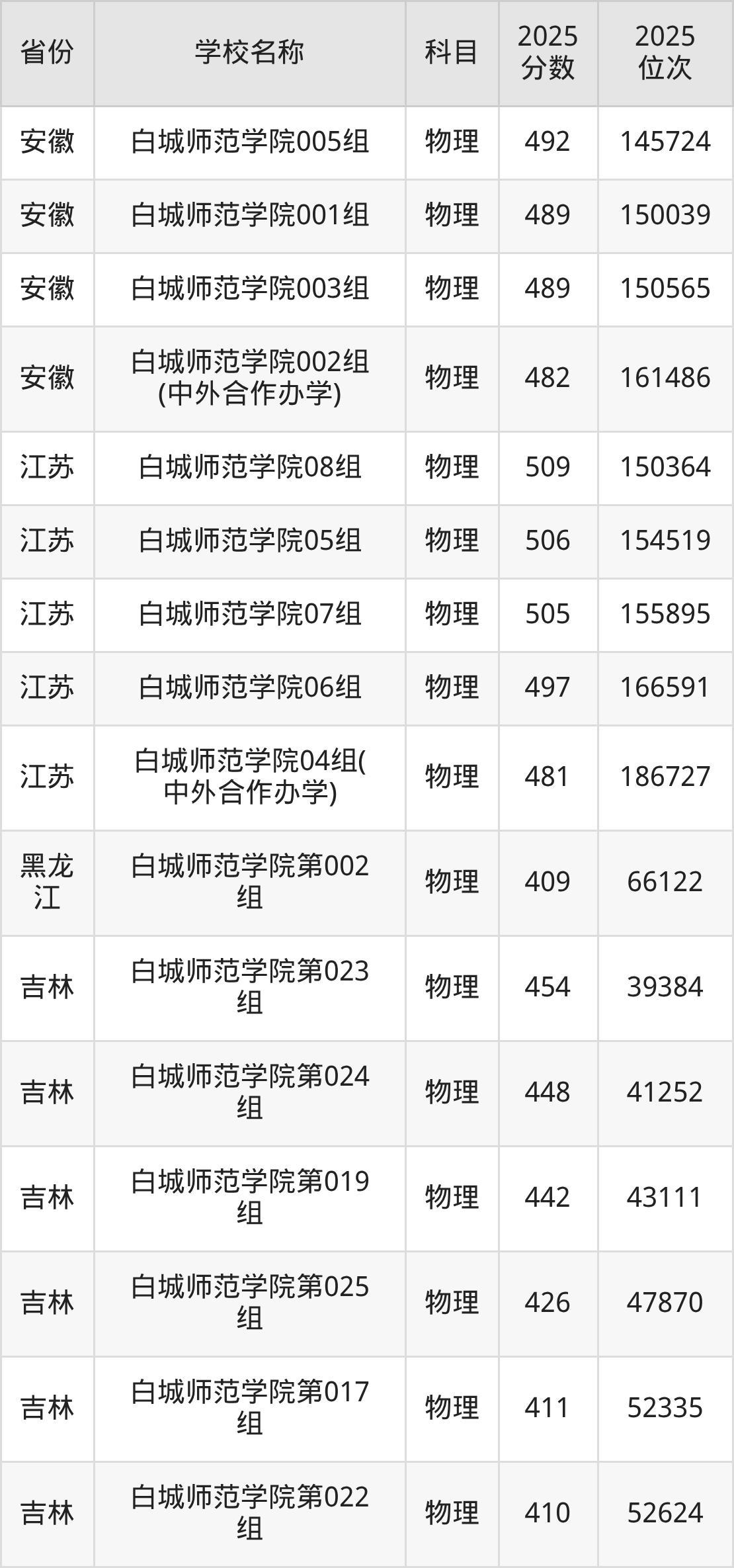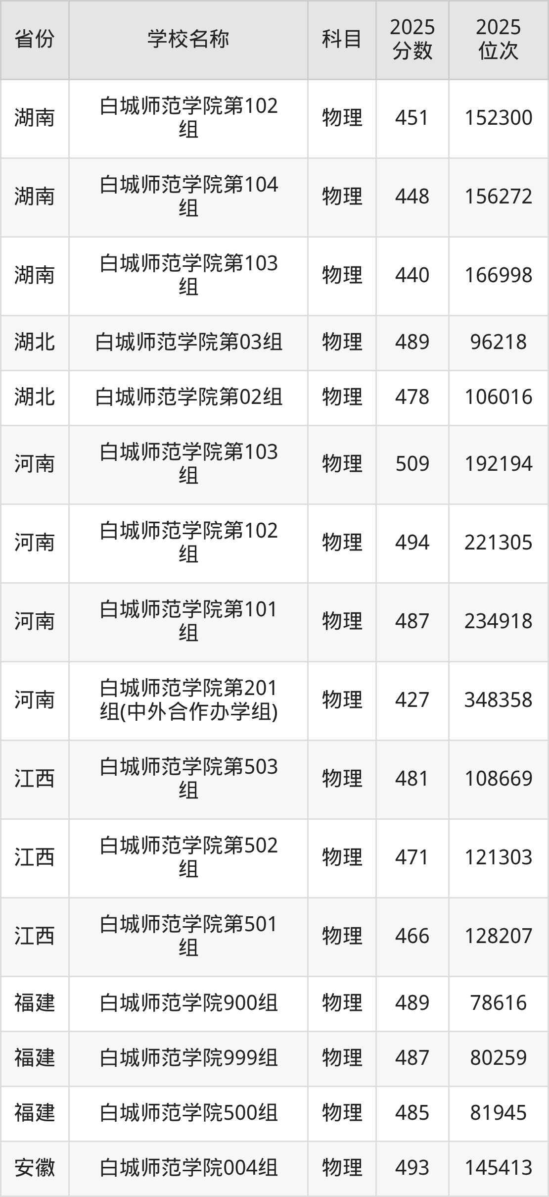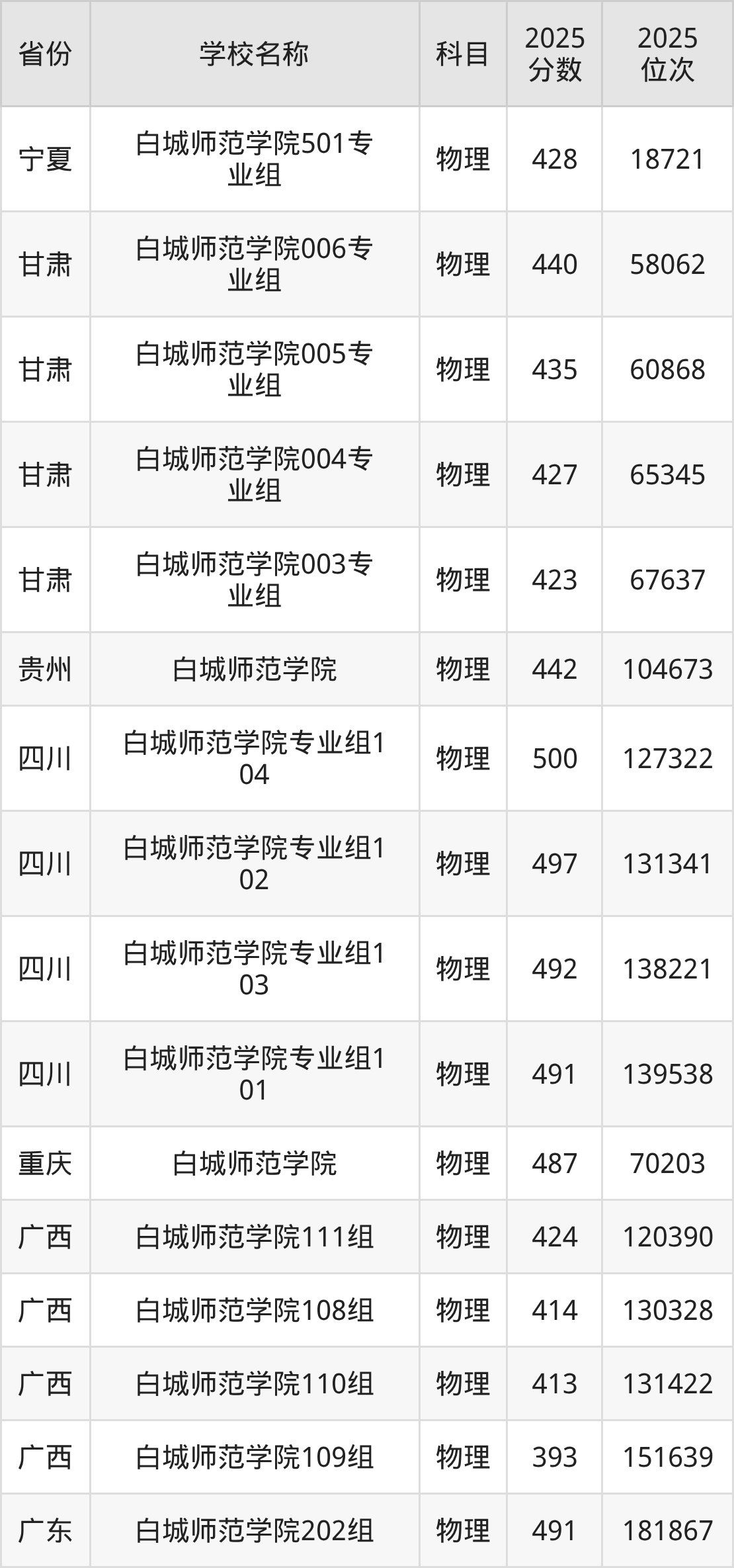 4、物理学专业:2025年最低449分、最低位次是40957