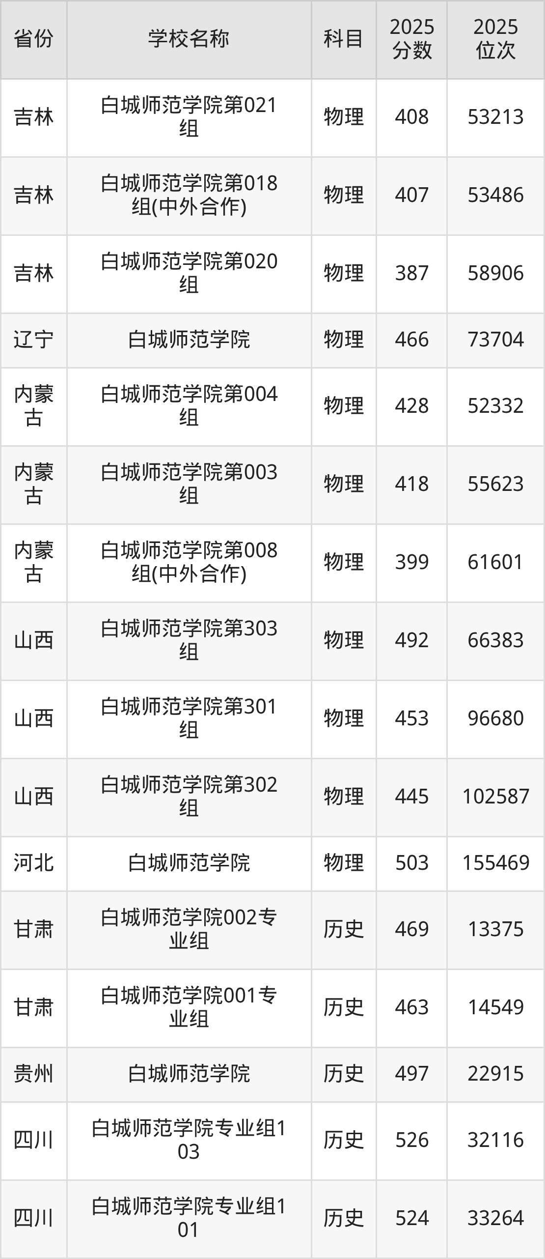二、白城师范学院各专业录取分数线
