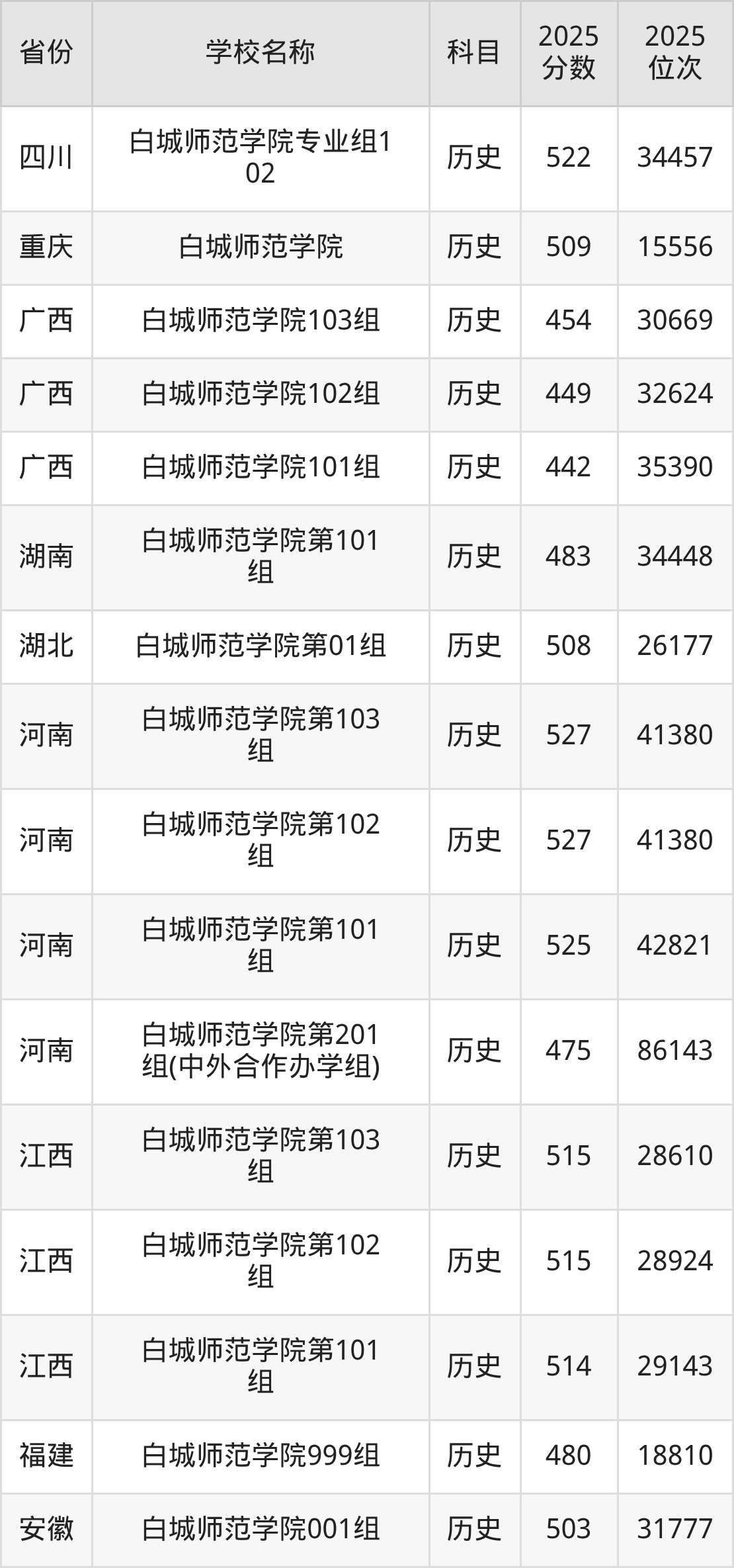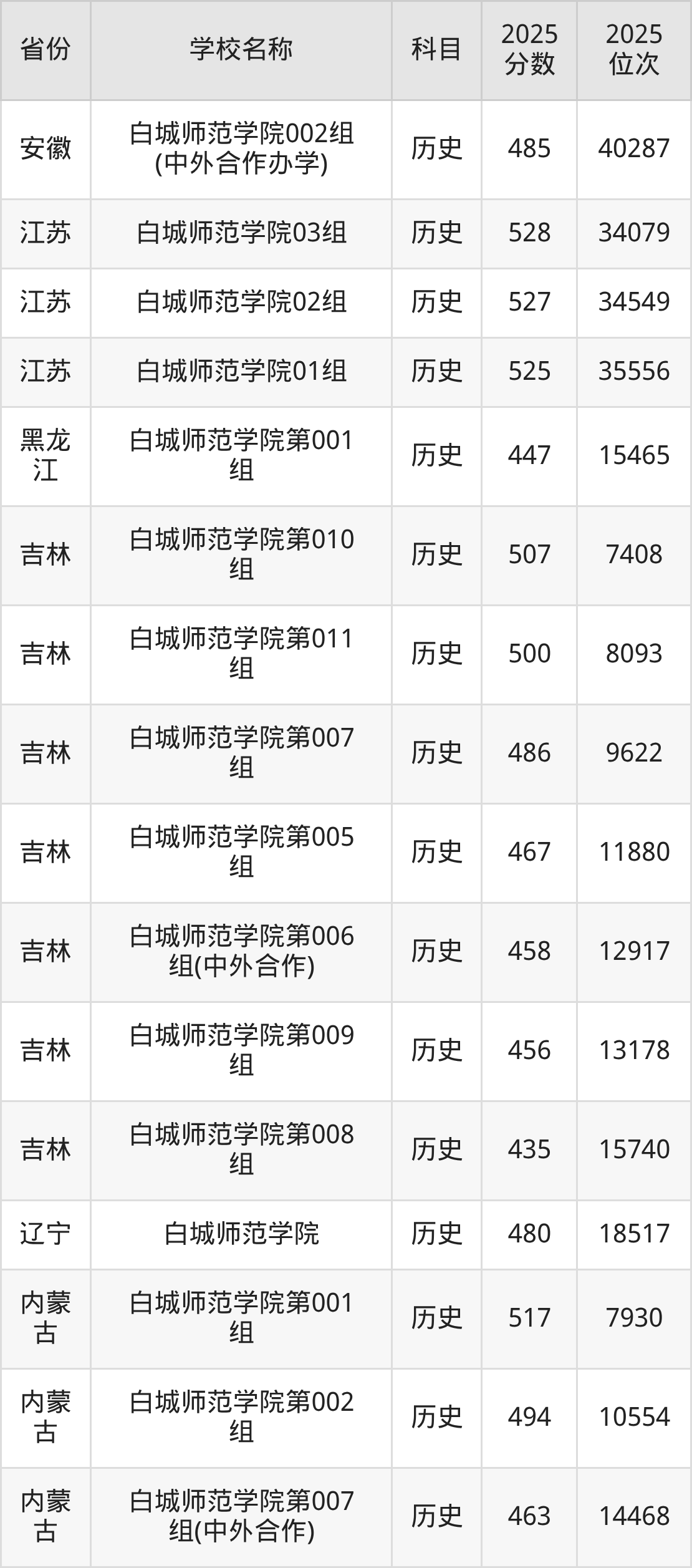 白城师范学院2025年有10个专业组面向吉林省内首选了历史科目的考生招生:
