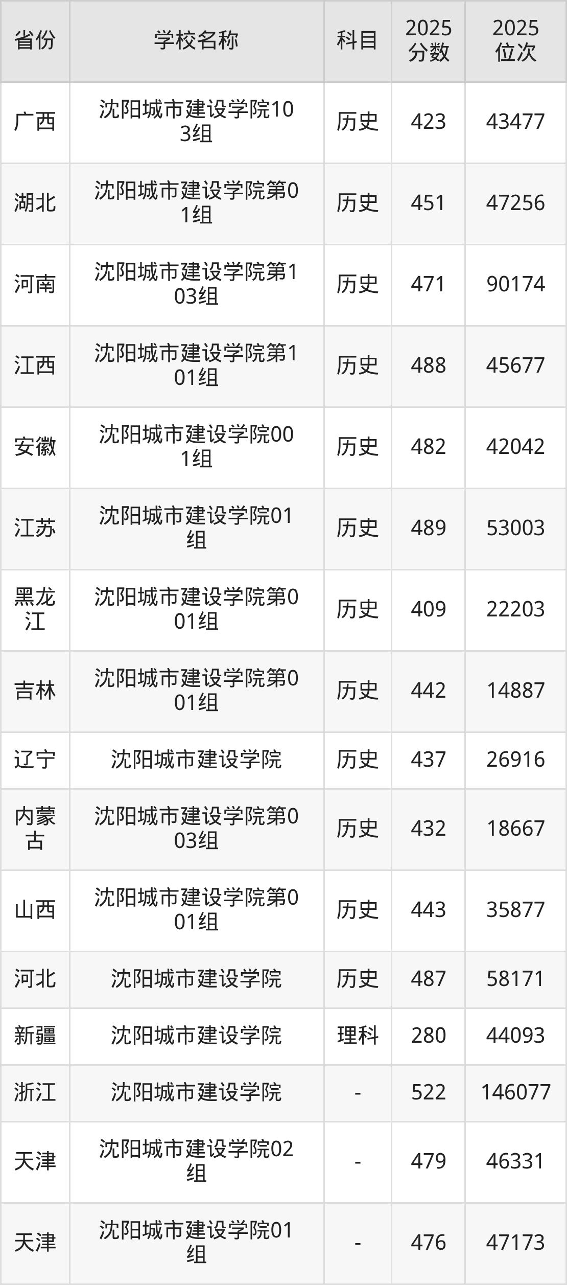 2025年沈阳城市建设学院在全国各省本科的最低录取分数线在280~522分之间。浙江高考生最低522分能上沈阳城市建设学院、天津高考生最低479分能上沈阳城市建设学院……下文将展示沈阳城市建设学院在全国22个高考省份中的本科最低投档录取分汇总!