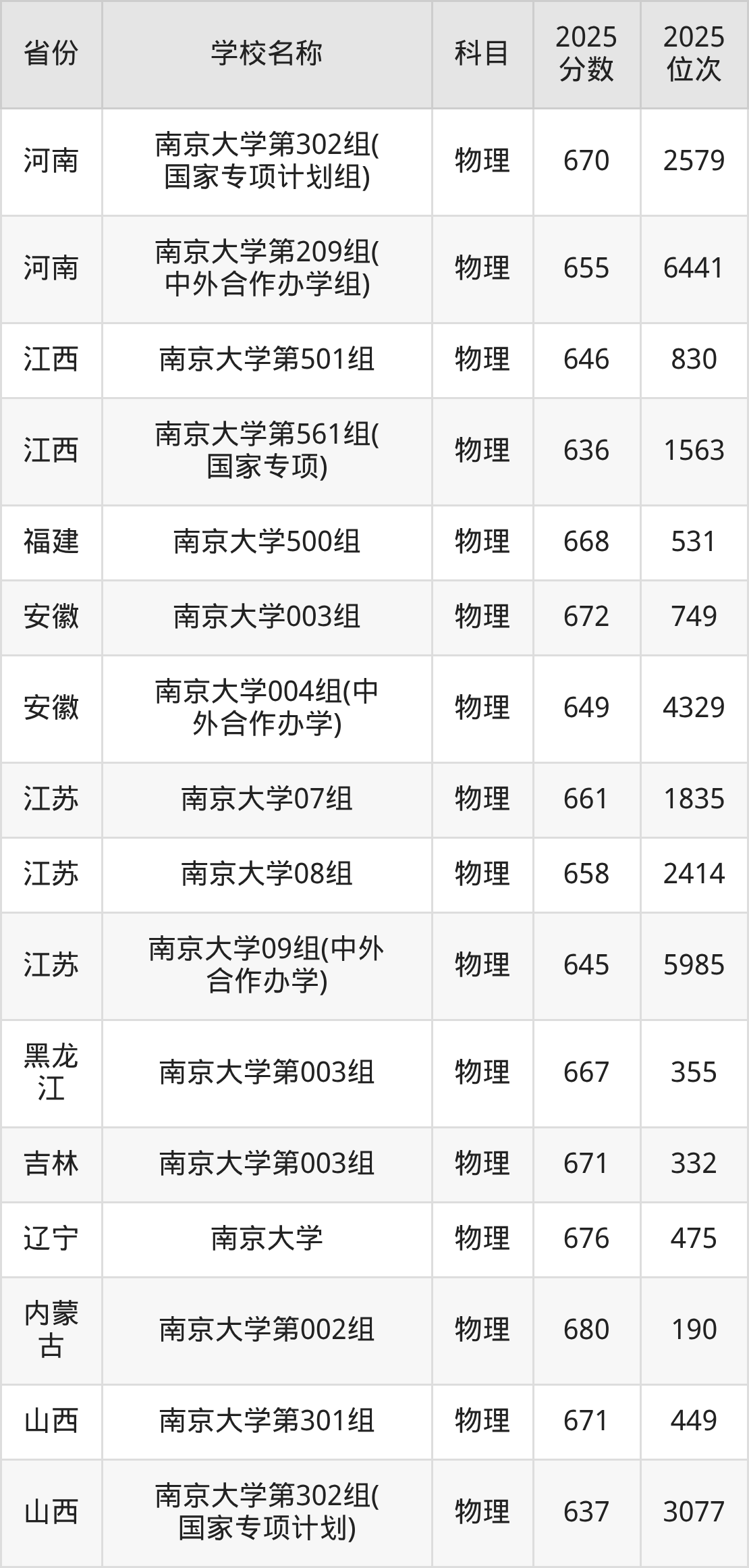 可见,南京大学的不同专业组,在“招生专业、录取分数线”等方面有较大区别。物理类专业组之间的分数线差距高达16分。