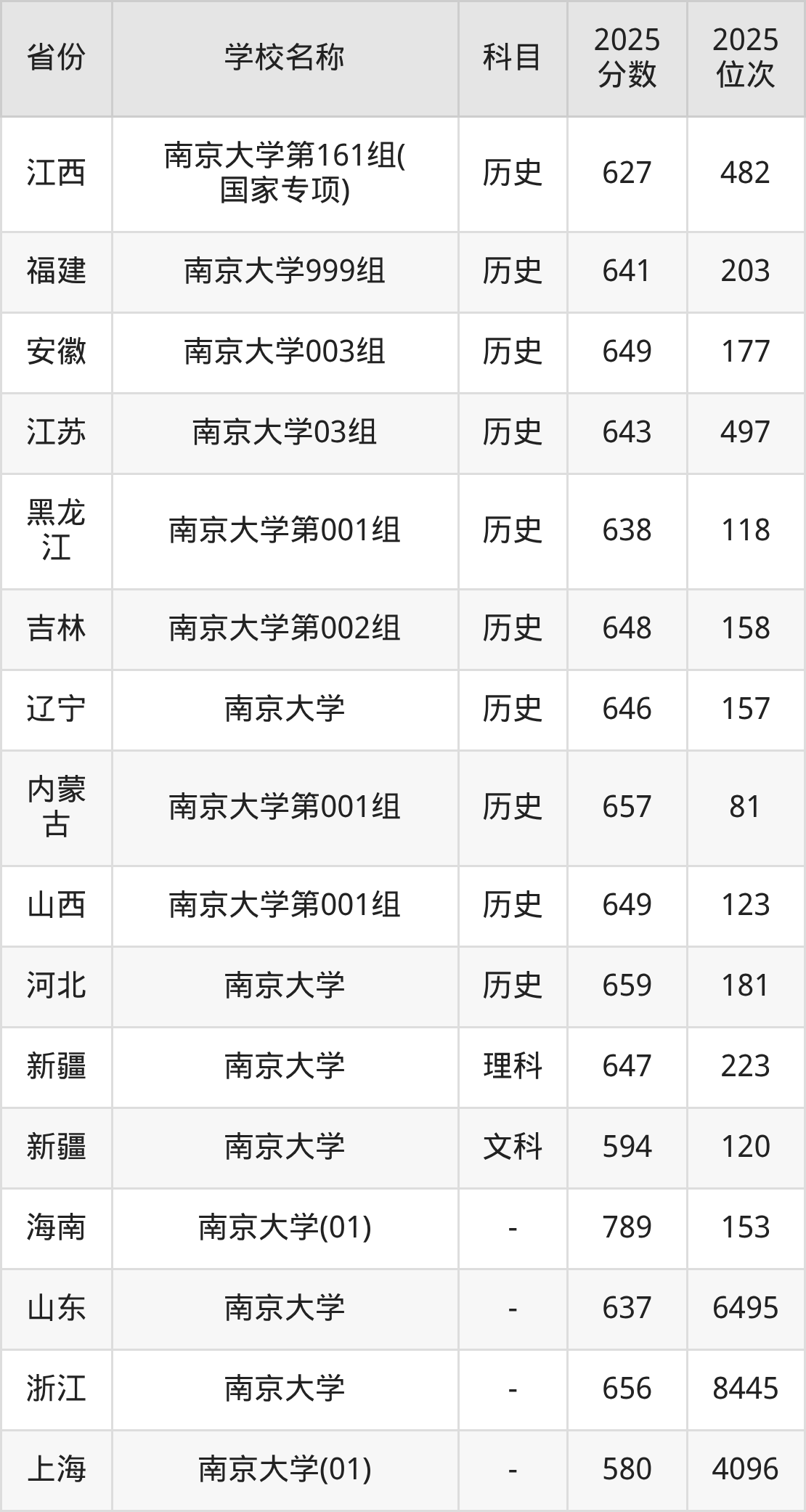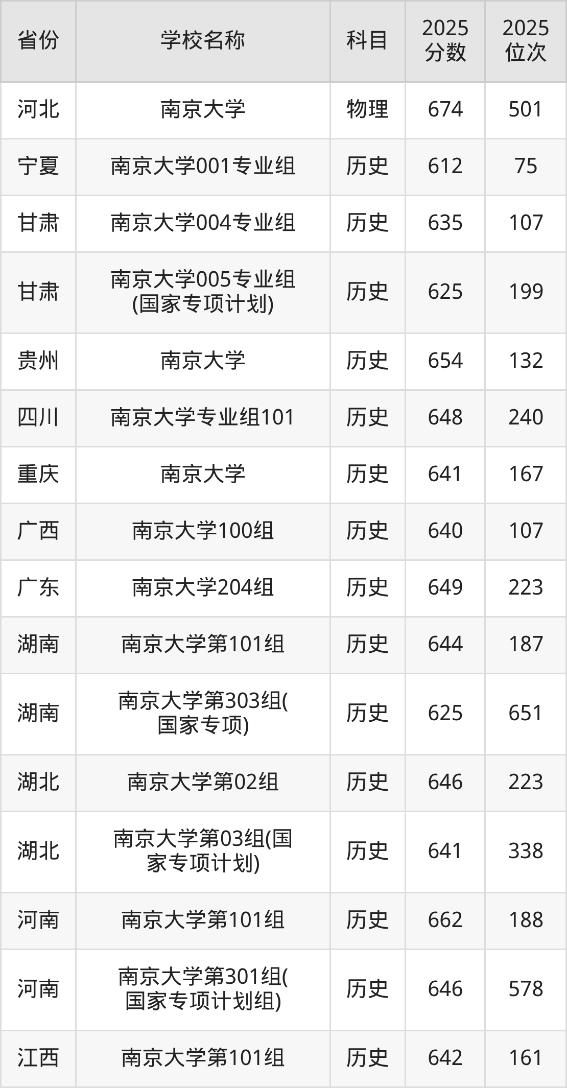 南京大学2025年有3个专业组面向江苏省内首选了历史科目的考生招生: