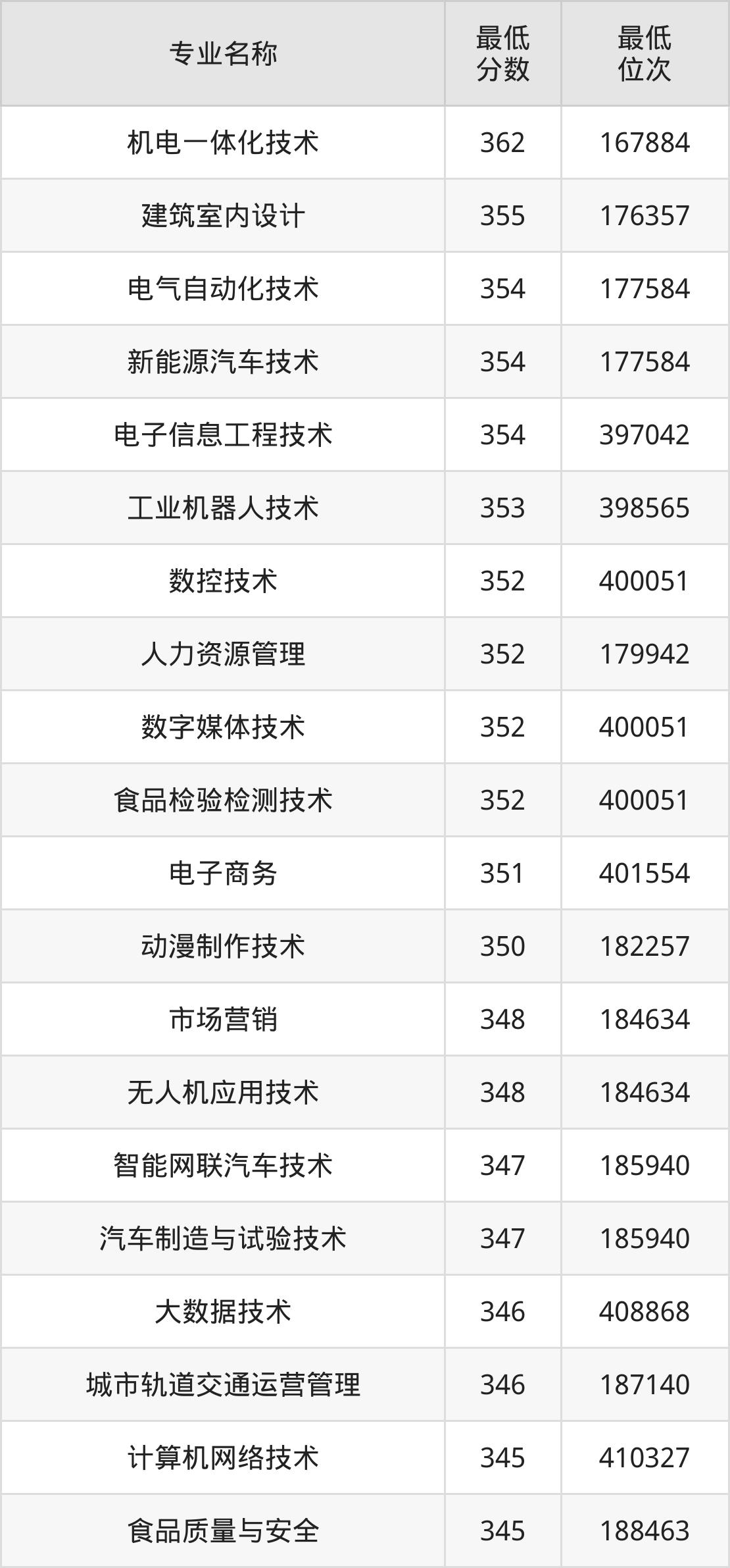 | 云南 | 理科高职专科 批 | —— | 376 |