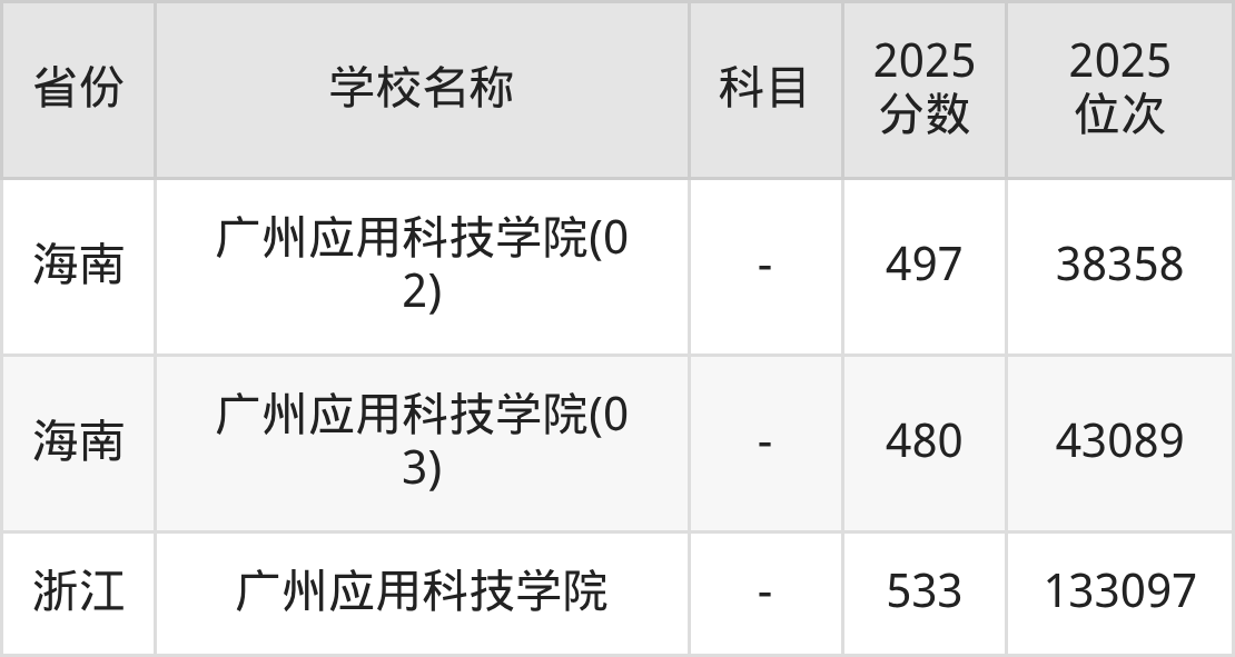 2025年广州应用科技学院在全国各省本科的最低录取分数线在370~533分之间。浙江高考生最低533分能上广州应用科技学院、海南高考生最低515分能上广州应用科技学院……下文将展示广州应用科技学院在全国11个高考省份中的本科最低投档录取分汇总!