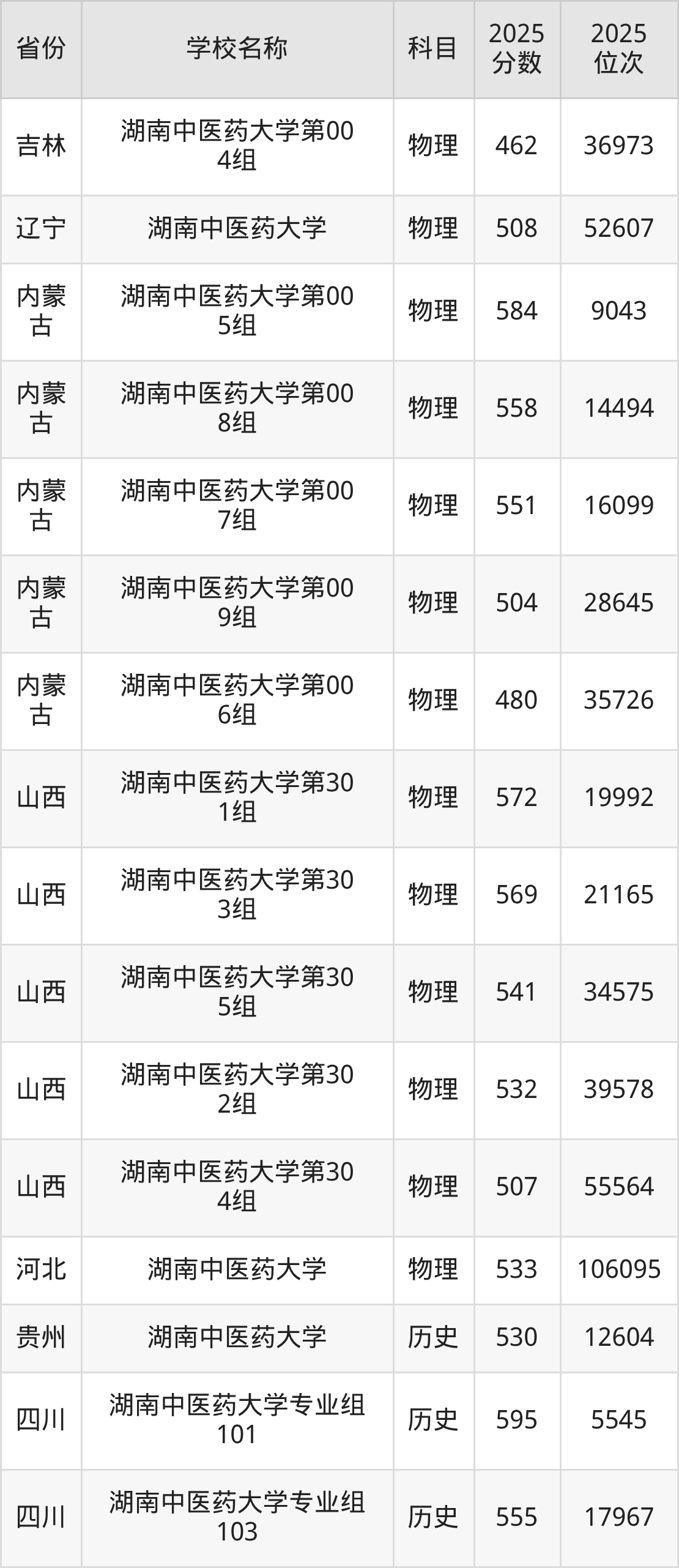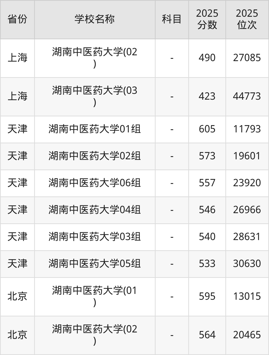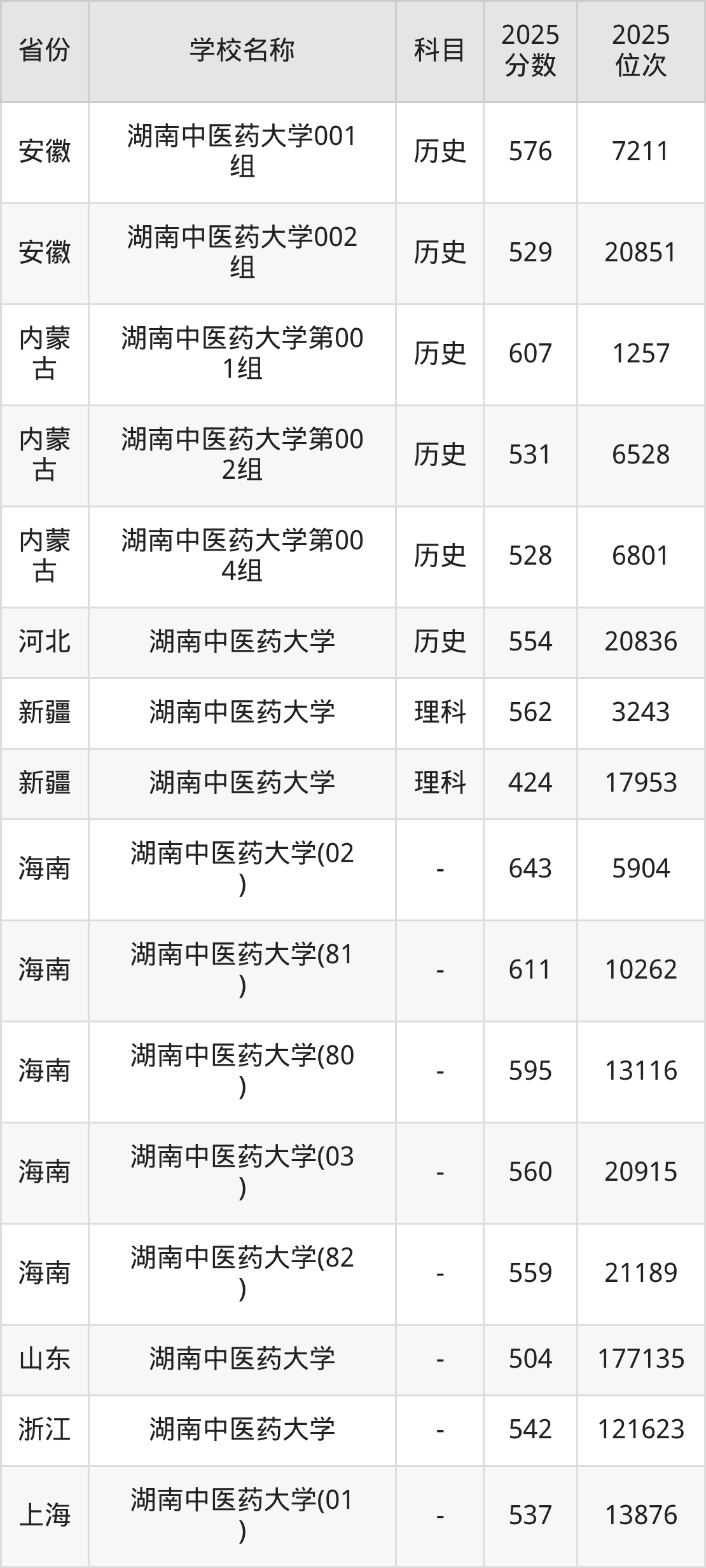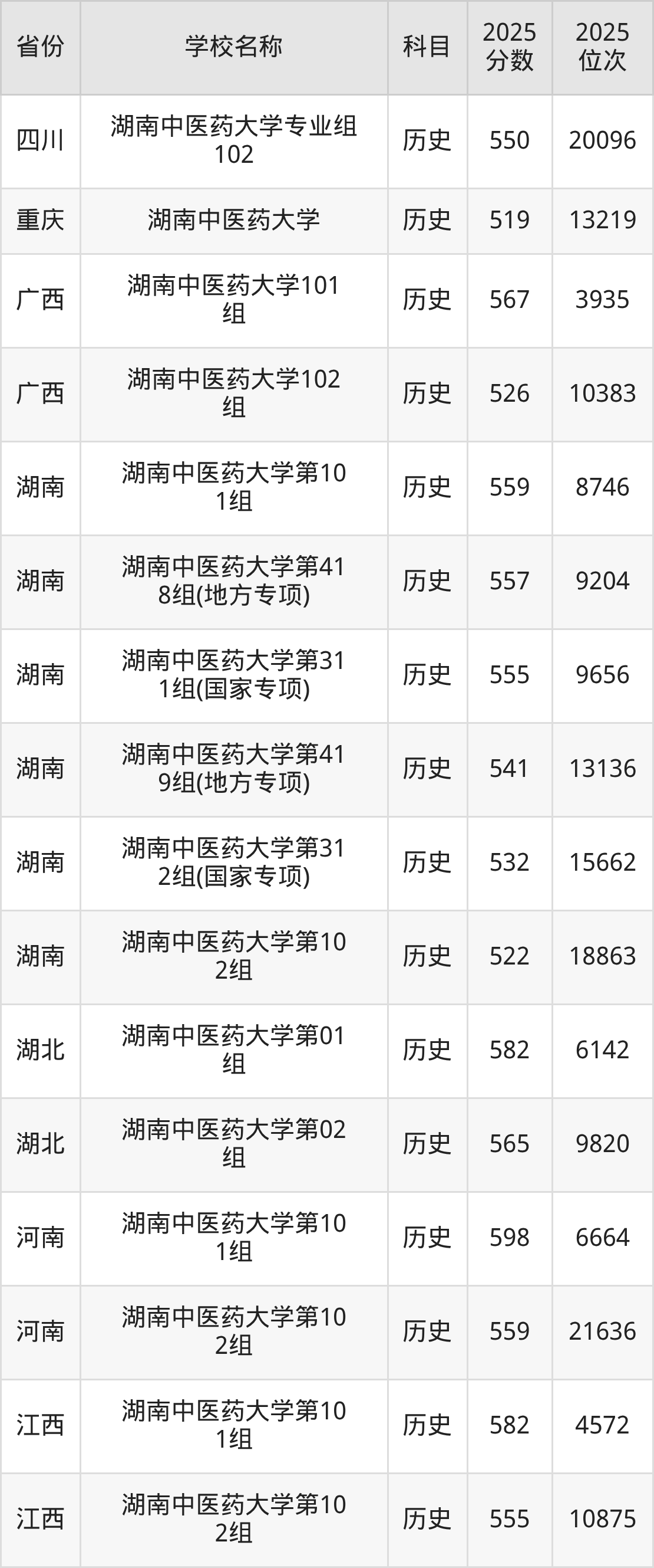 湖南中医药大学2025年有24个专业组面向湖南省内首选了历史科目的考生招生: