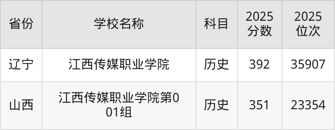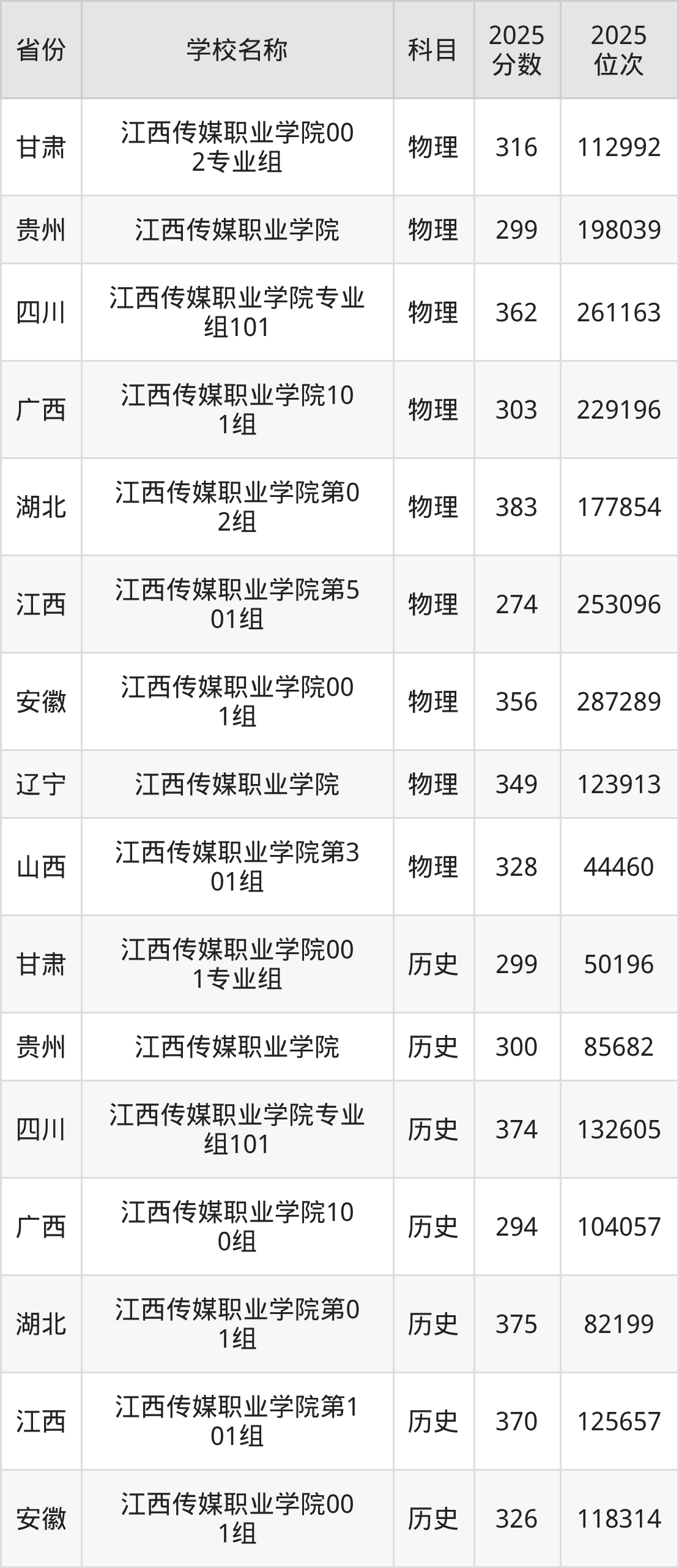 江西传媒职业学院2025年有1个专业组面向江西省内首选了历史科目的考生招生: