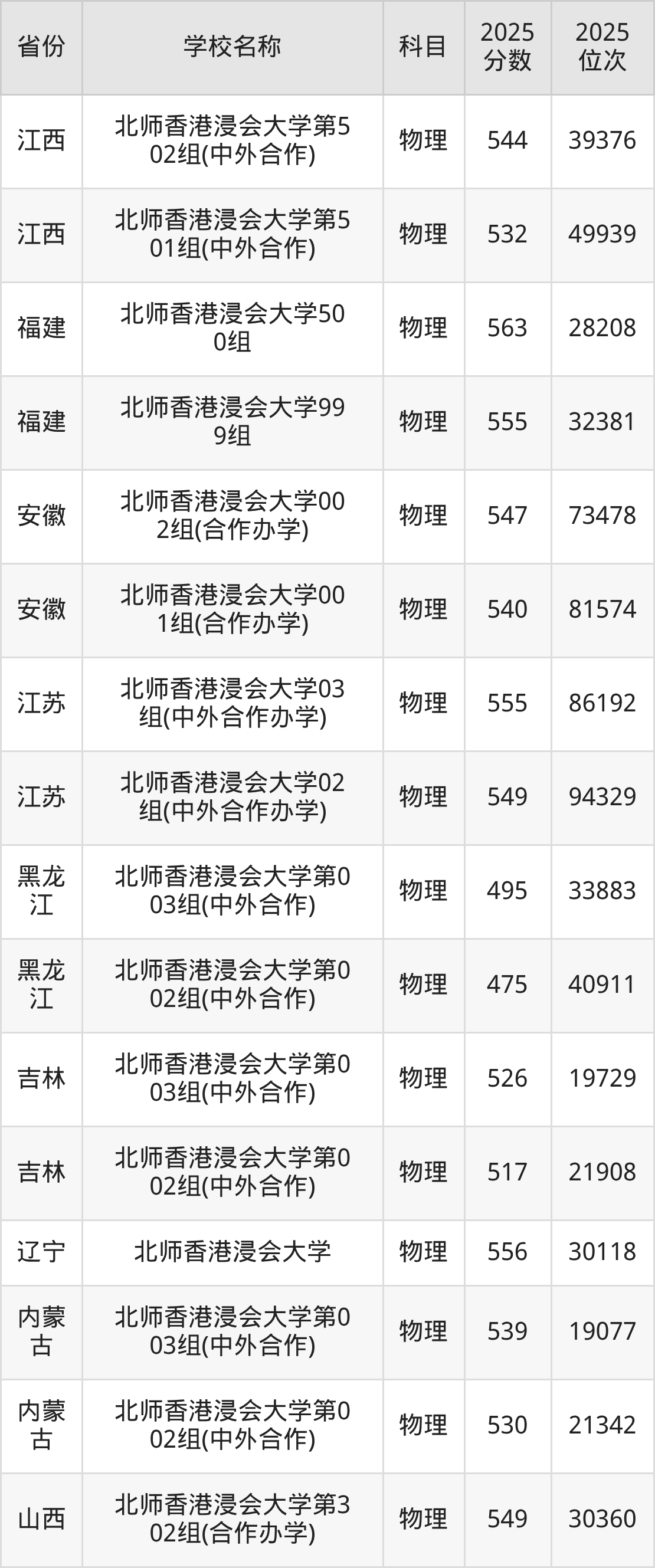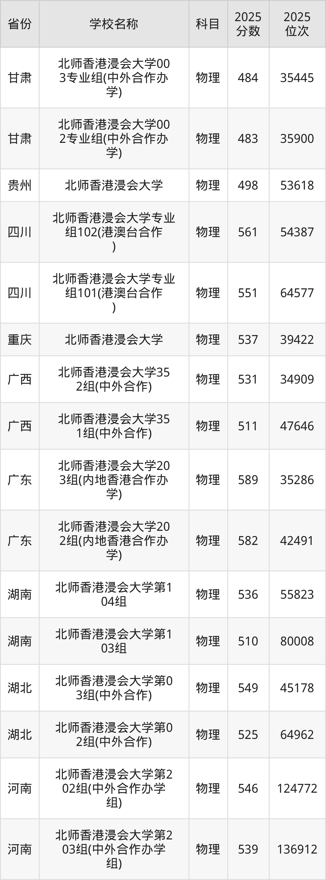 北师香港浸会大学2025年有2个专业组面向广东省内首选了物理科目的考生招生: