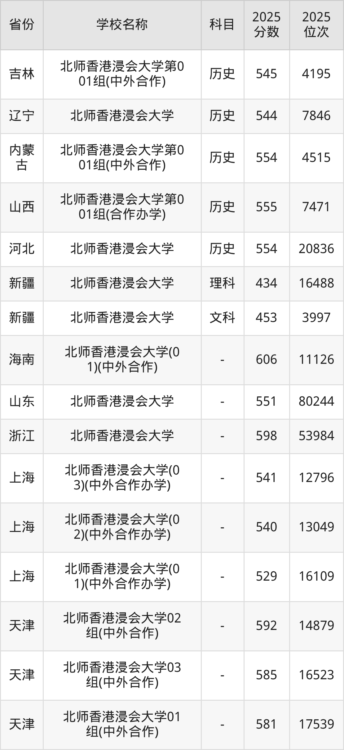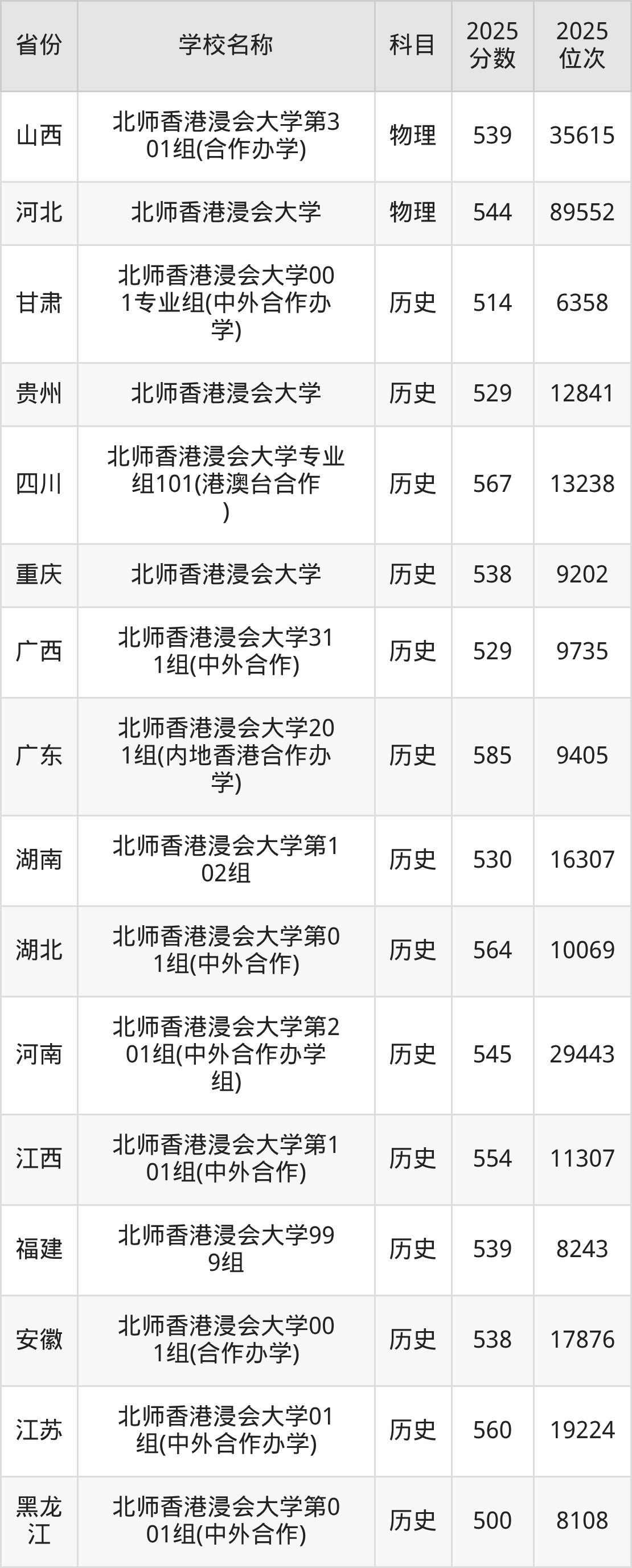 北师香港浸会大学2025年有1个专业组面向广东省内首选了历史科目的考生招生:
