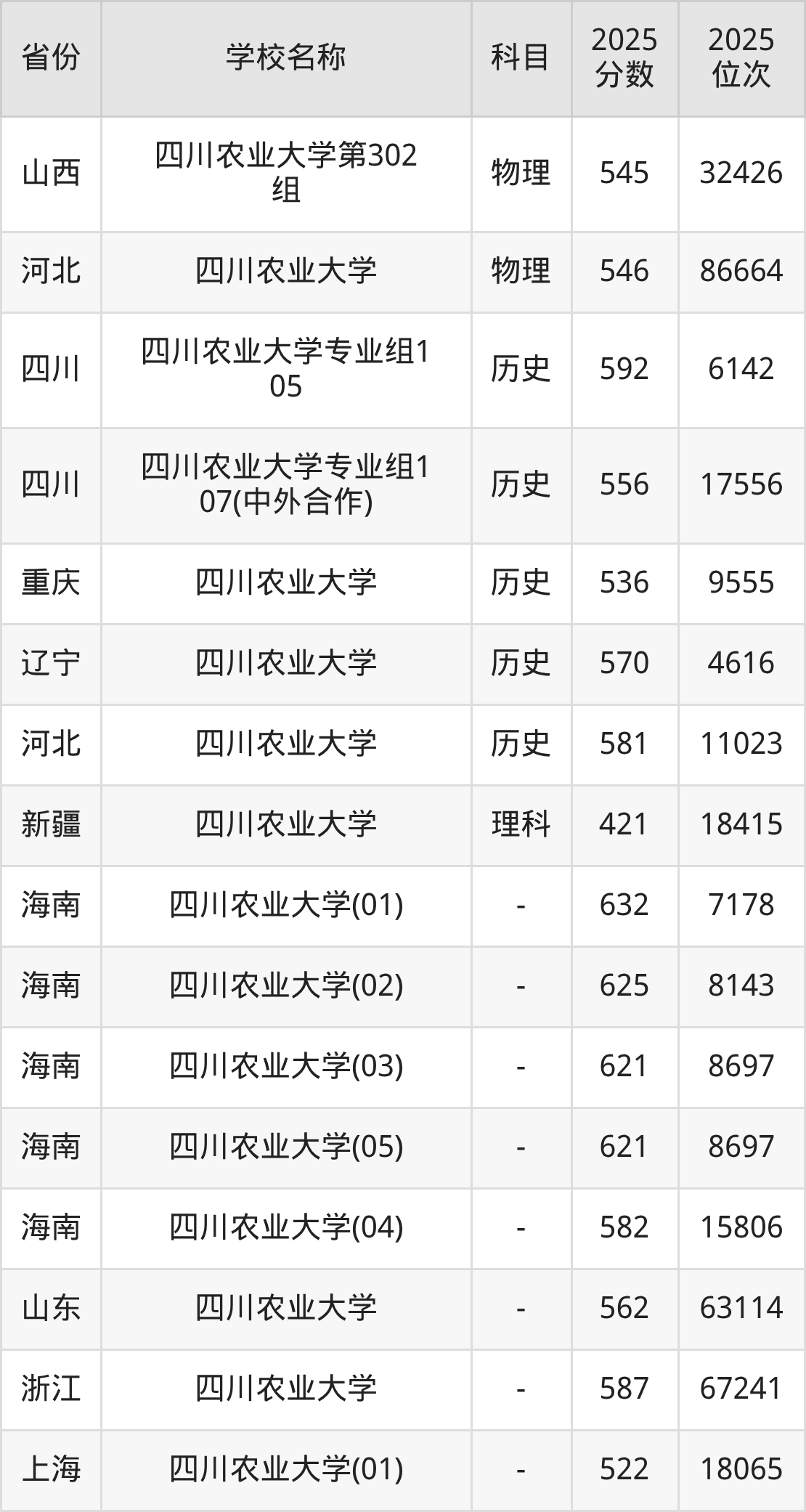 二、四川农业大学各专业录取分数线