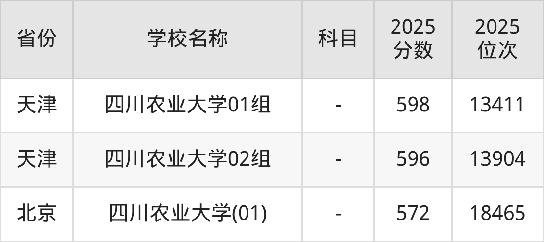 四川农业大学2025年有4个专业组面向四川省内首选了历史科目的考生招生: