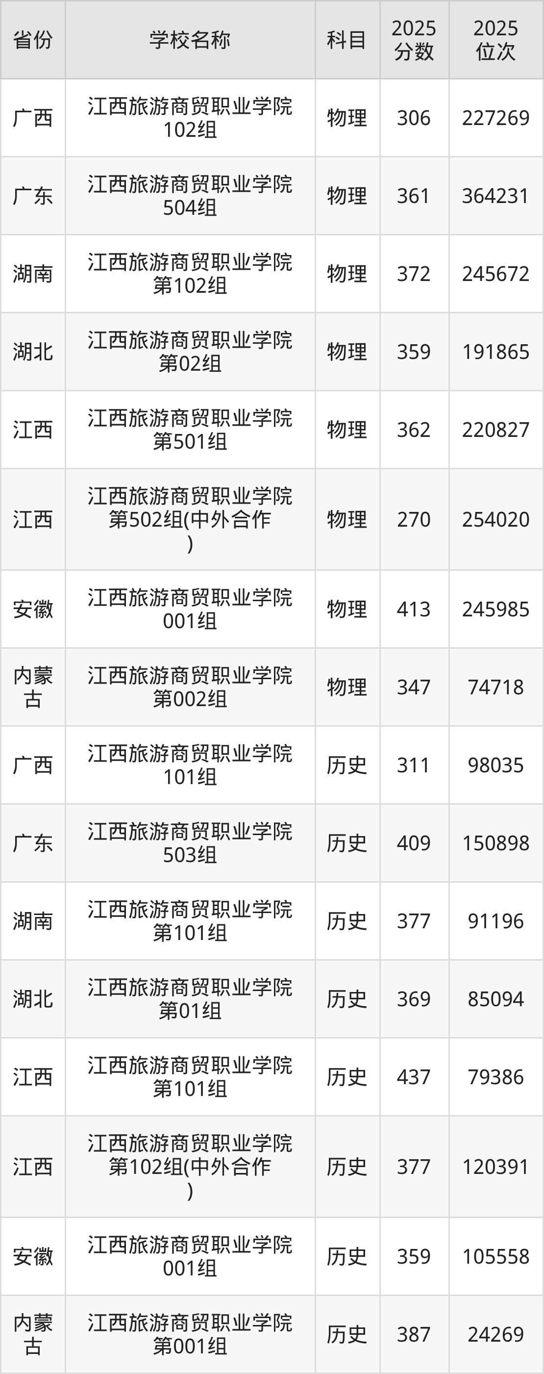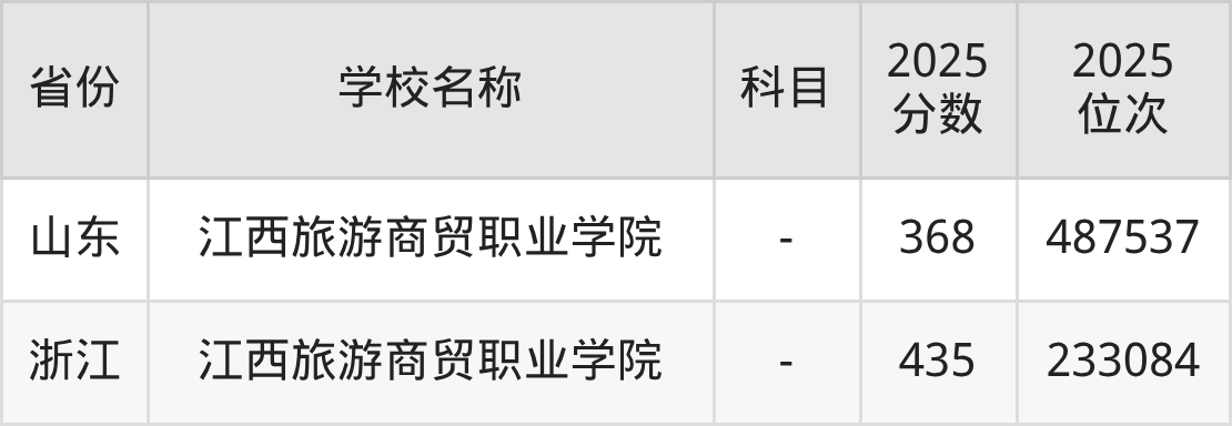 一、2025江西旅游商贸职业学院录取分数线