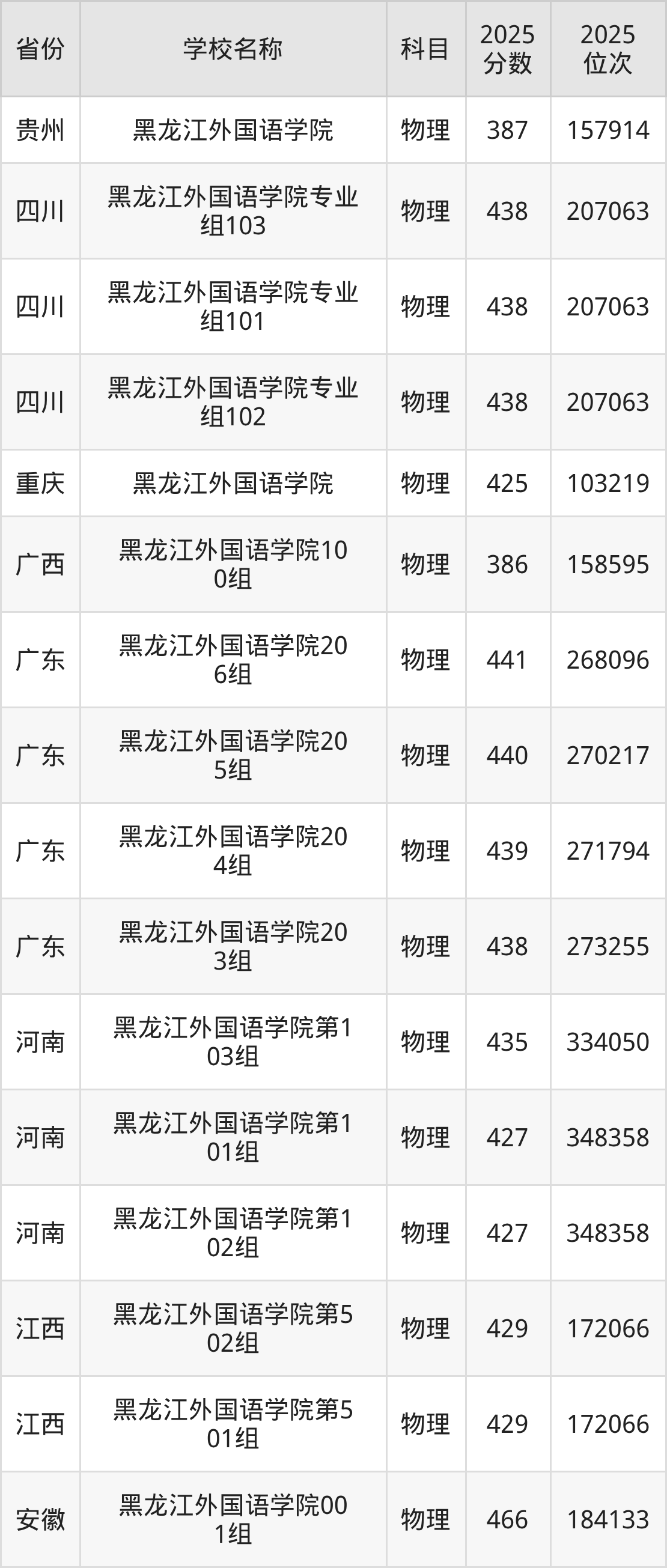 黑龙江外国语学院2025年有5个专业组面向黑龙江省内首选了物理科目的考生招生: