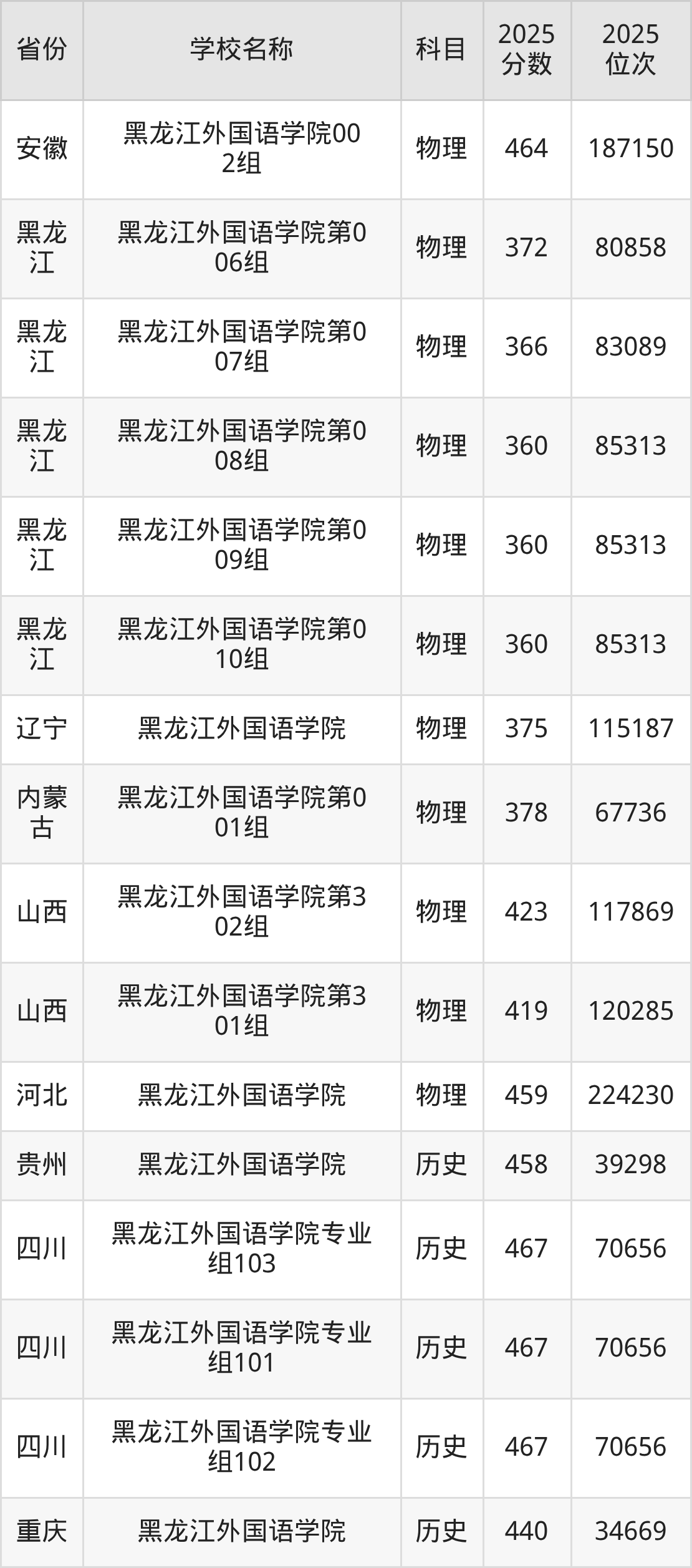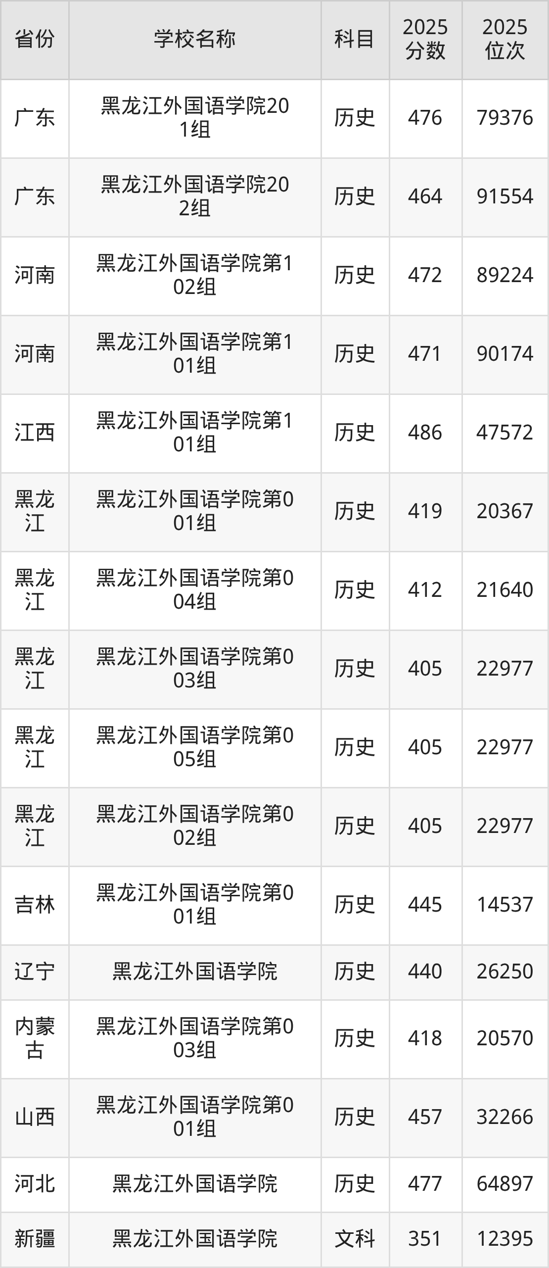 二、黑龙江外国语学院各专业录取分数线