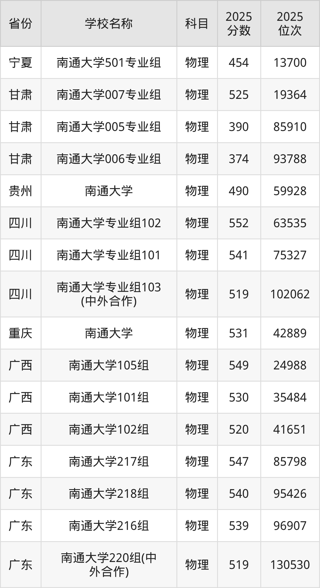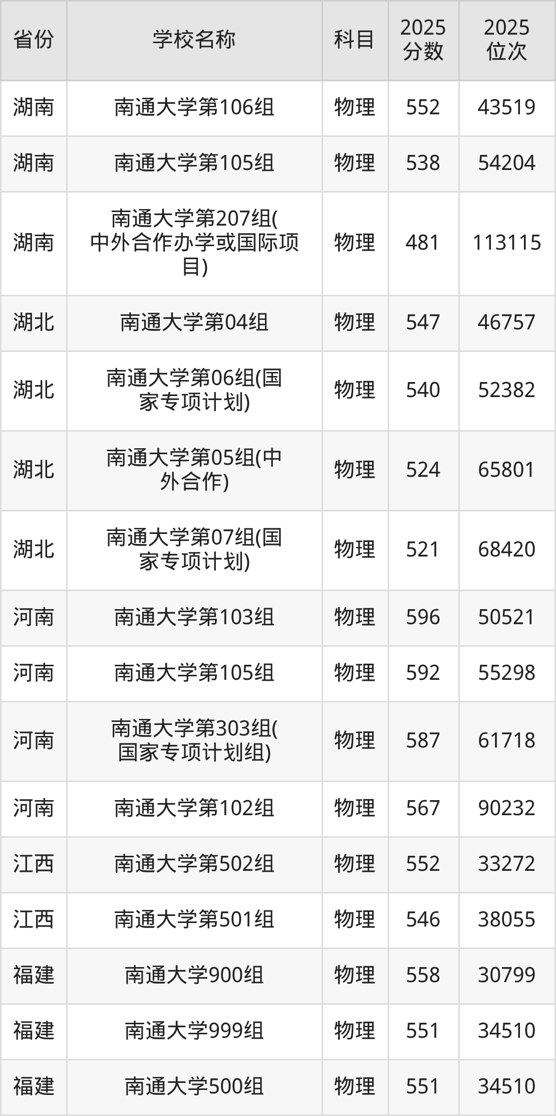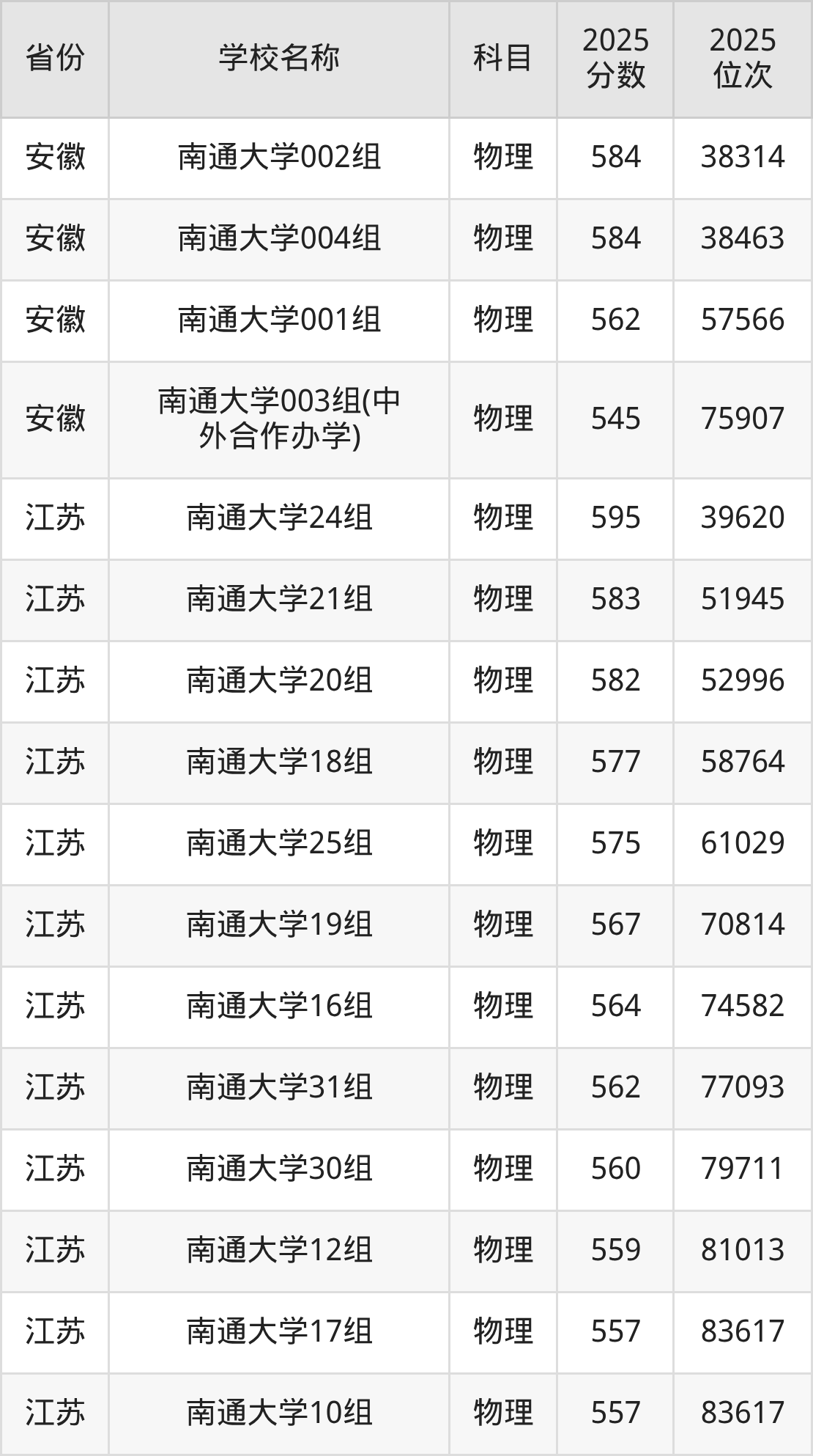 31、物理学专业:2025年最低561分、最低位次是77094