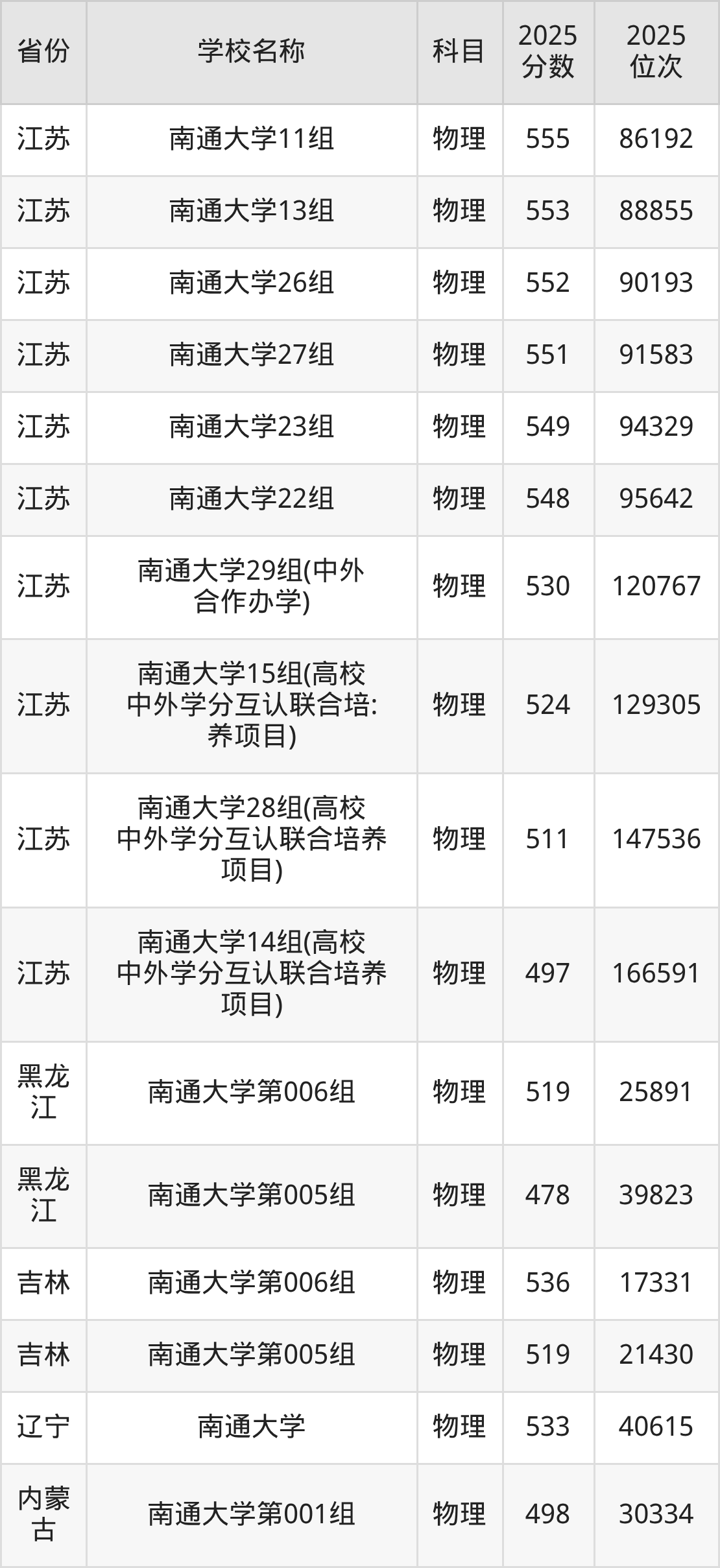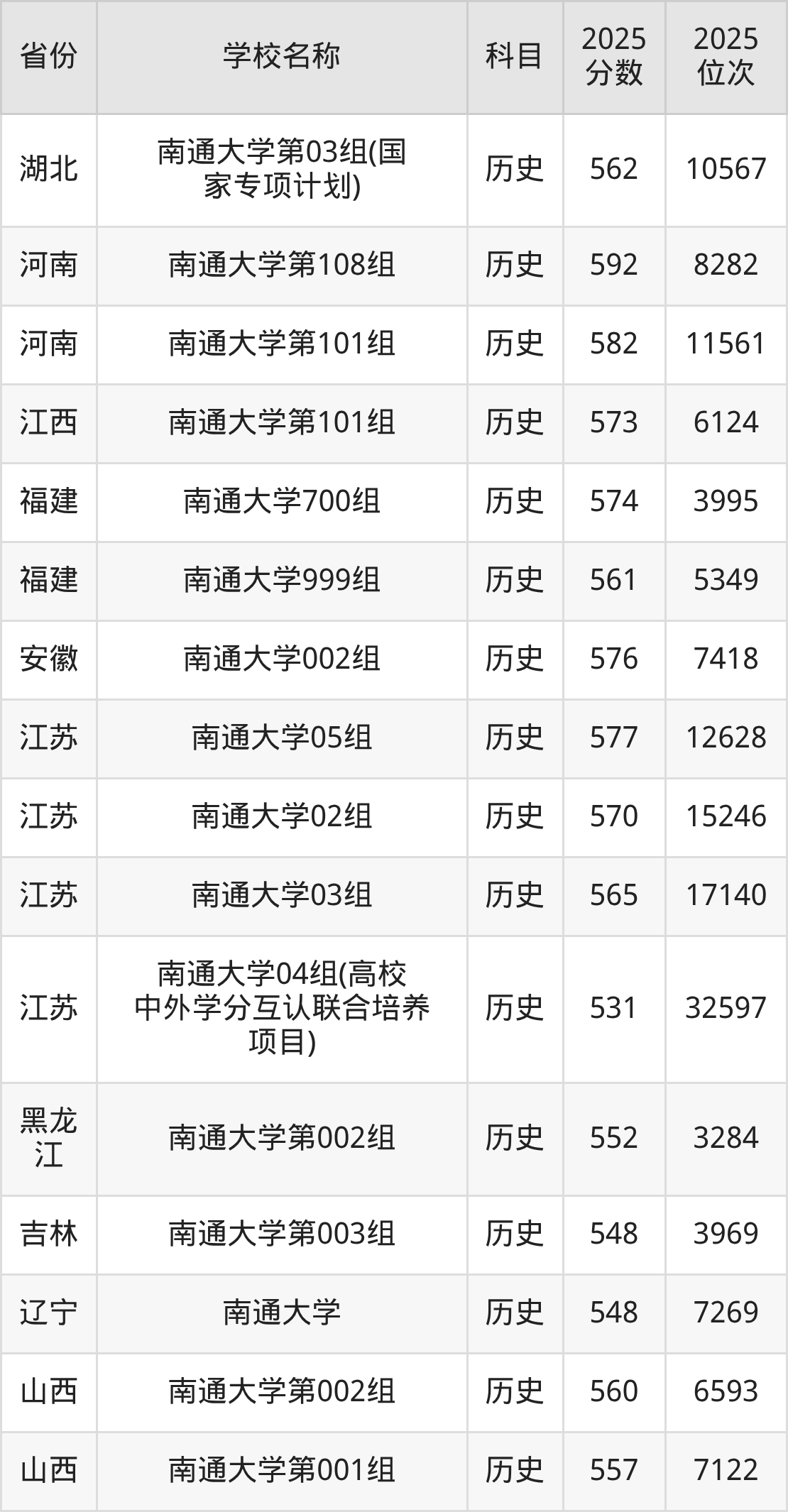 二、南通大学各专业录取分数线