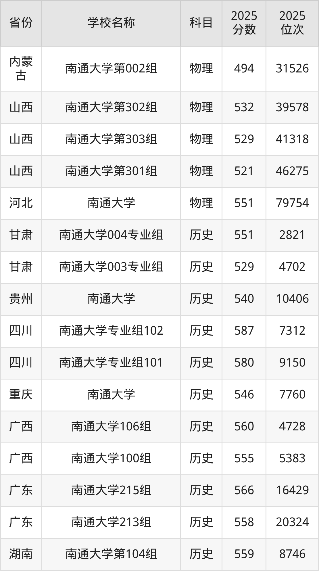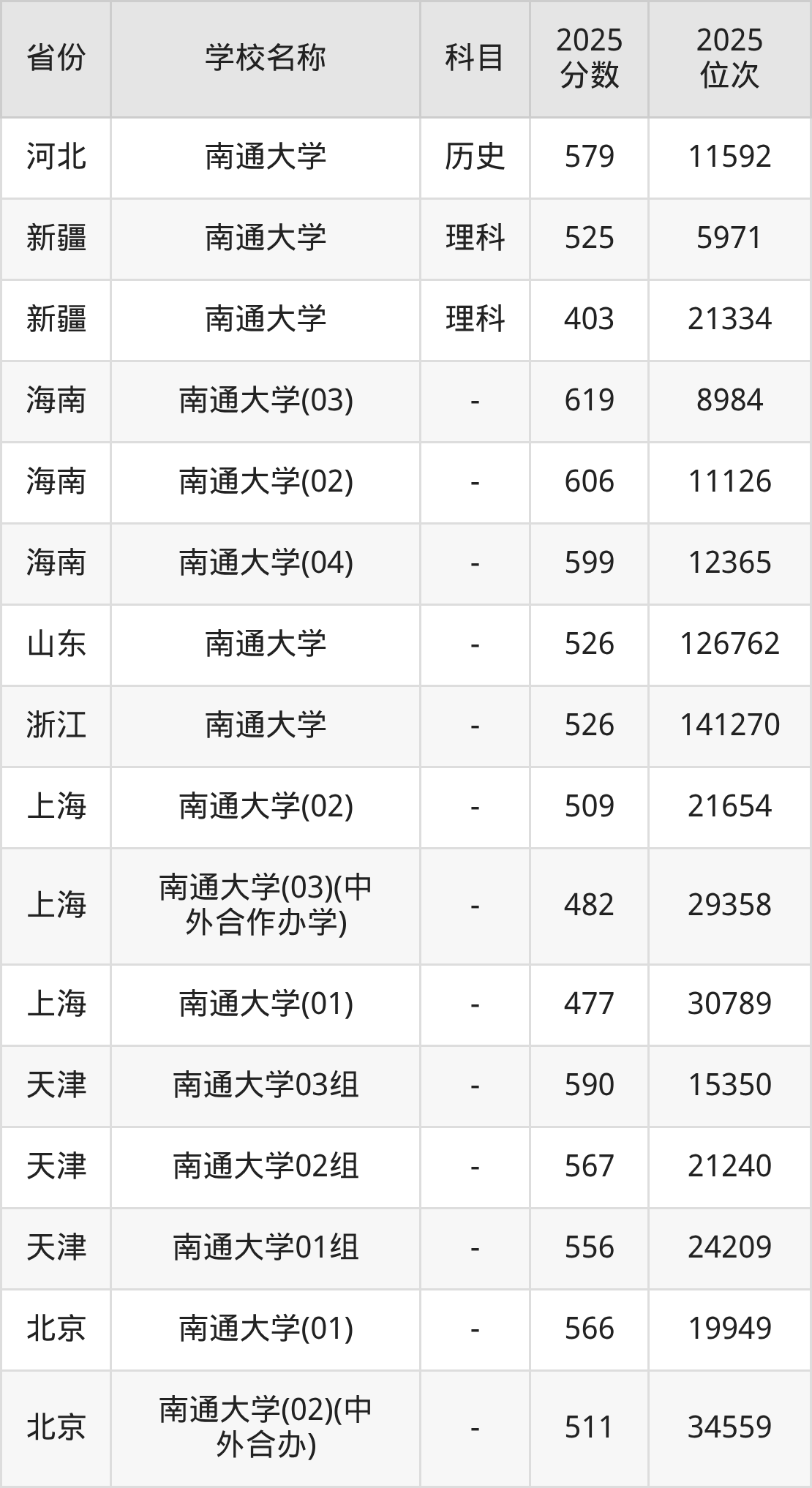 一、2025南通大学录取分数线