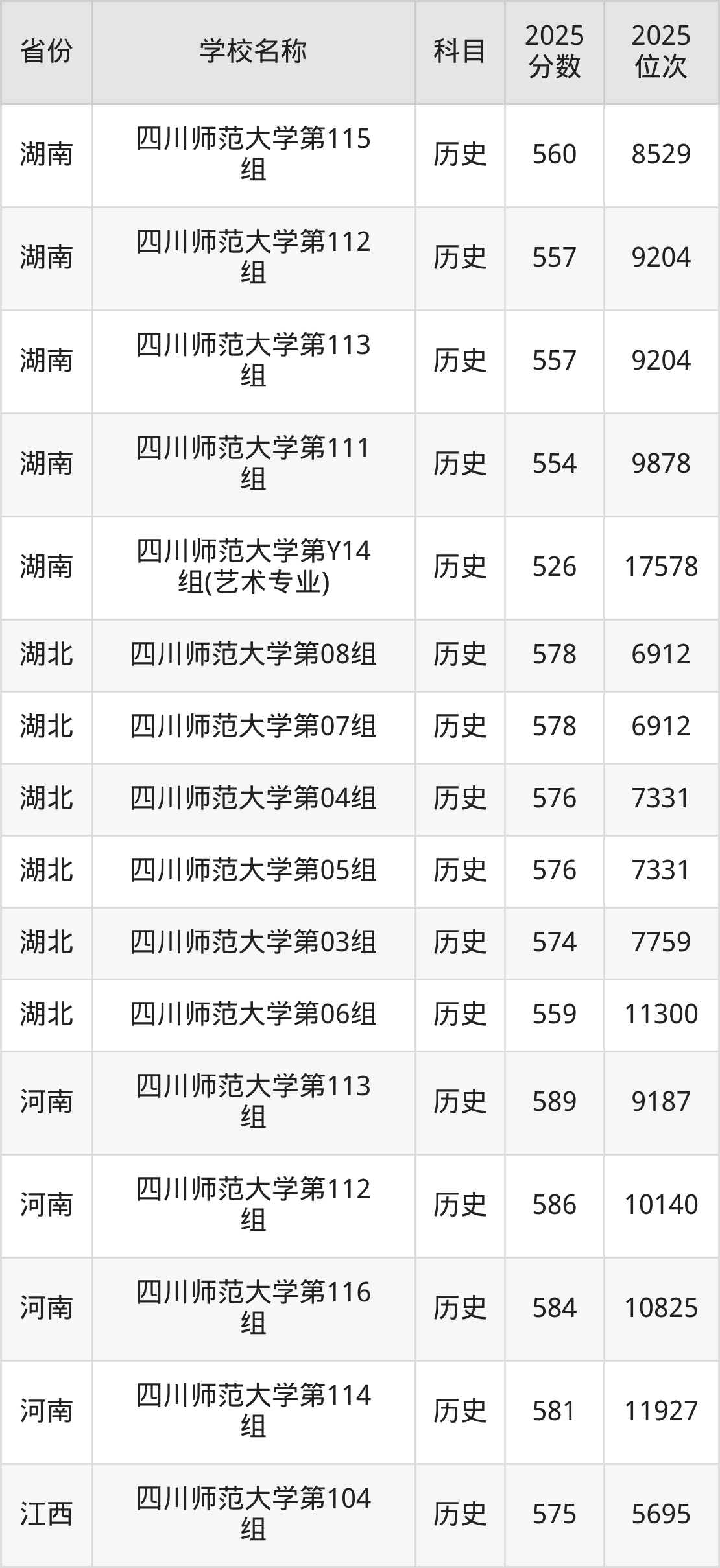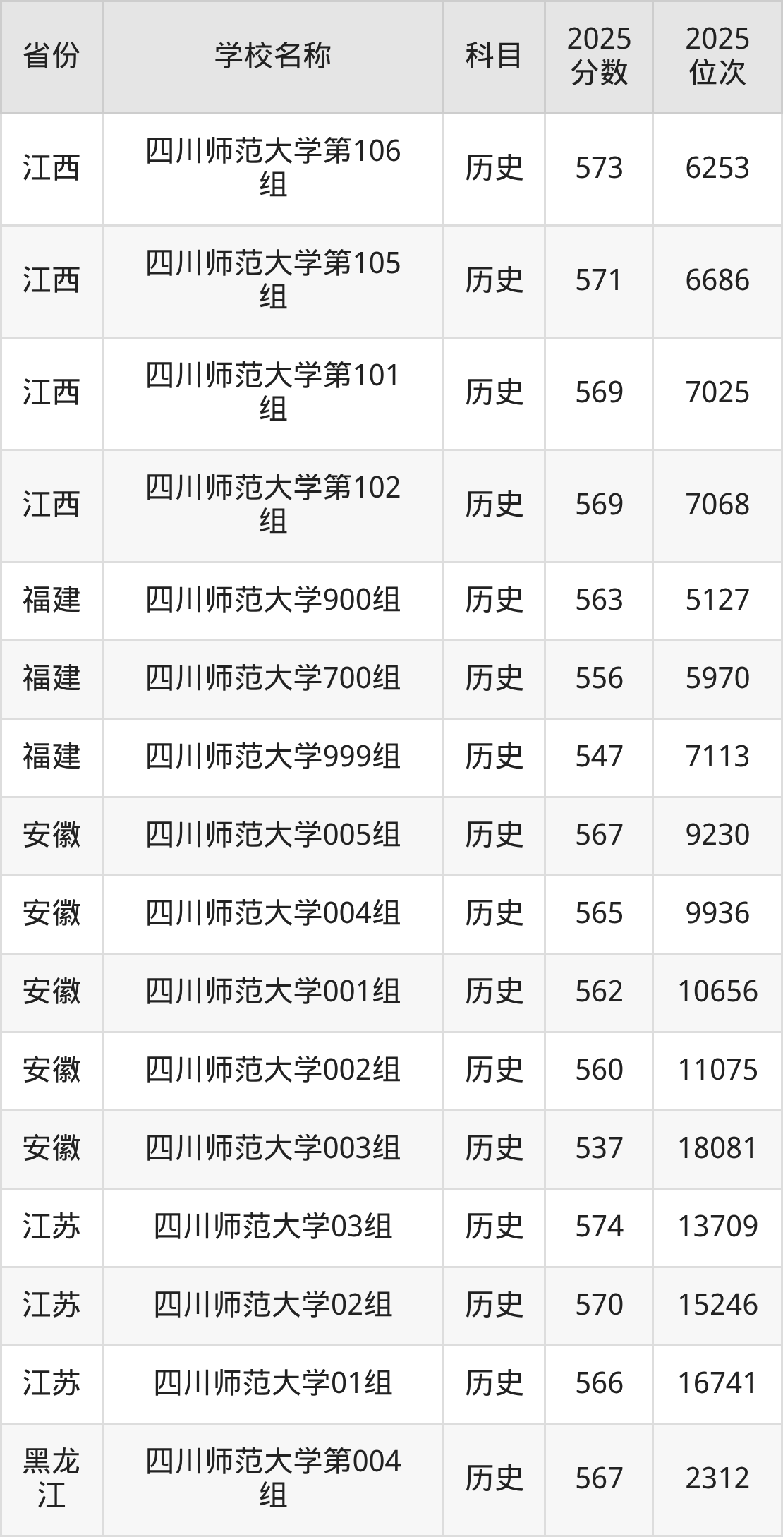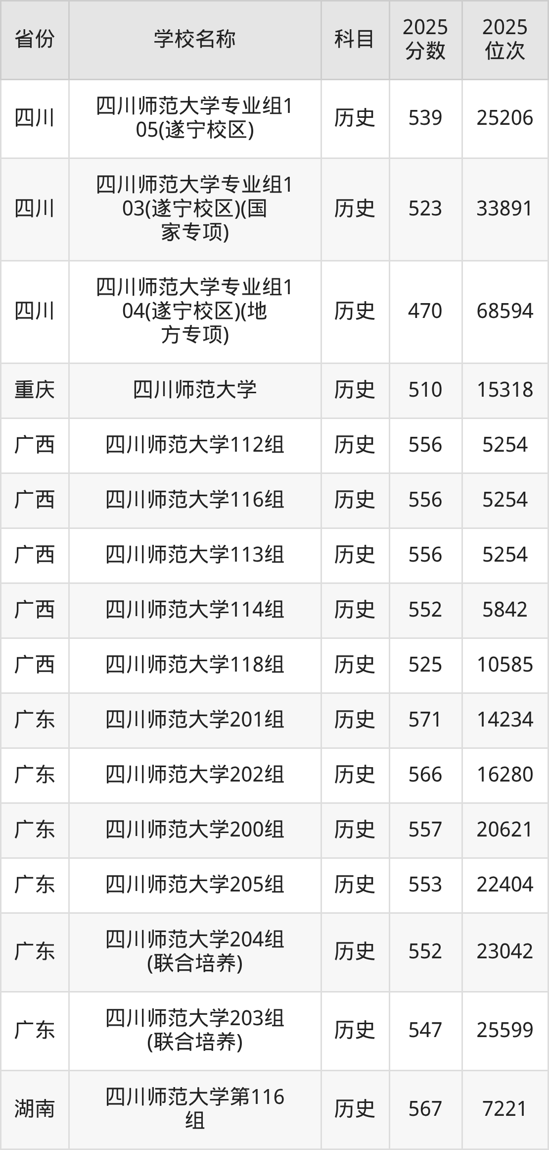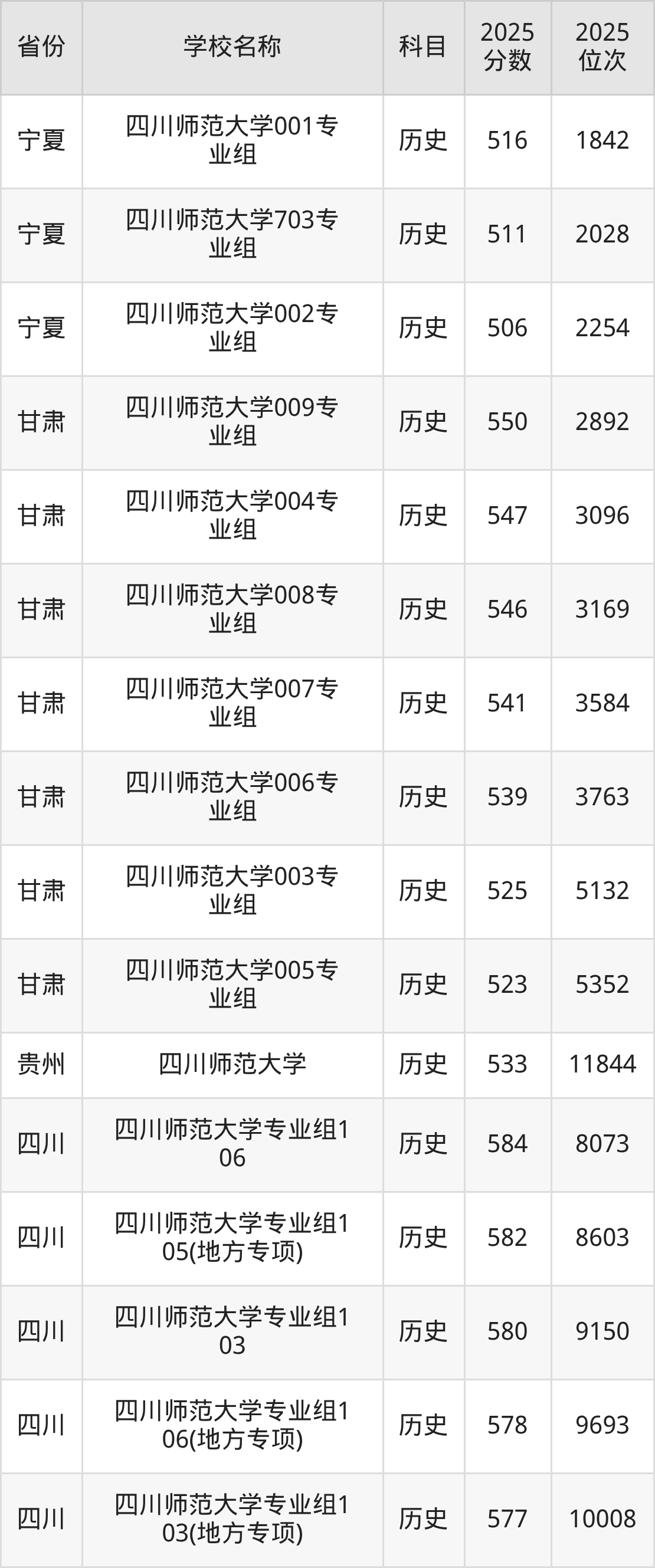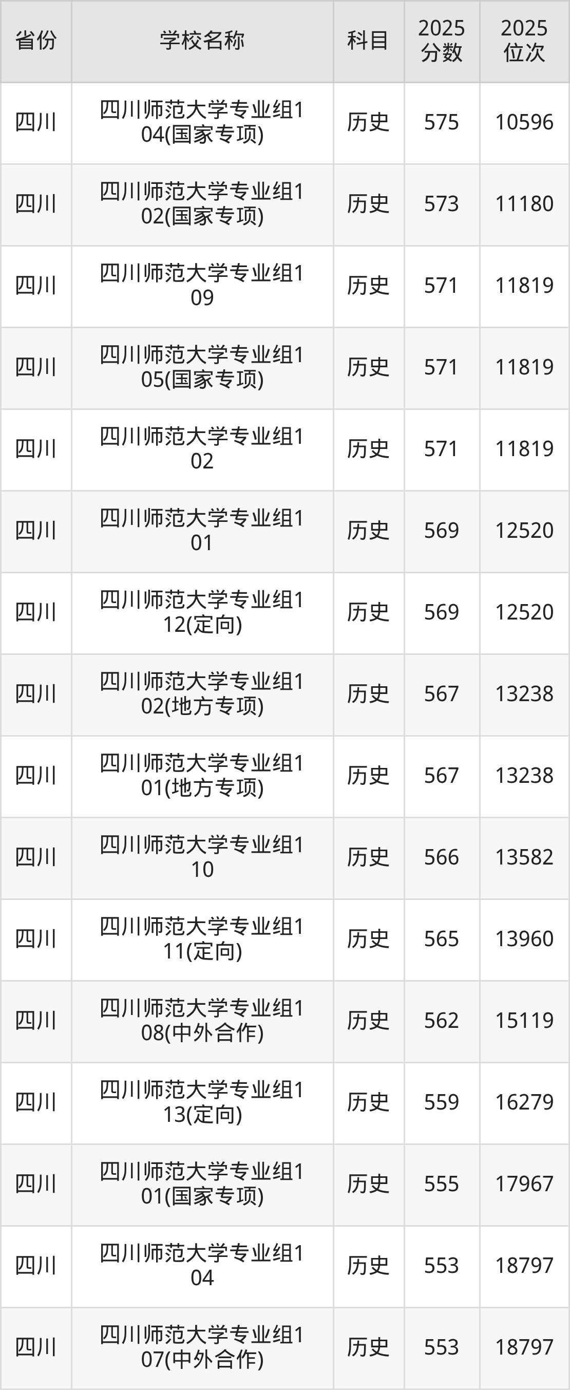 四川师范大学2025年有194个专业组面向四川省内首选了历史科目的考生招生:
