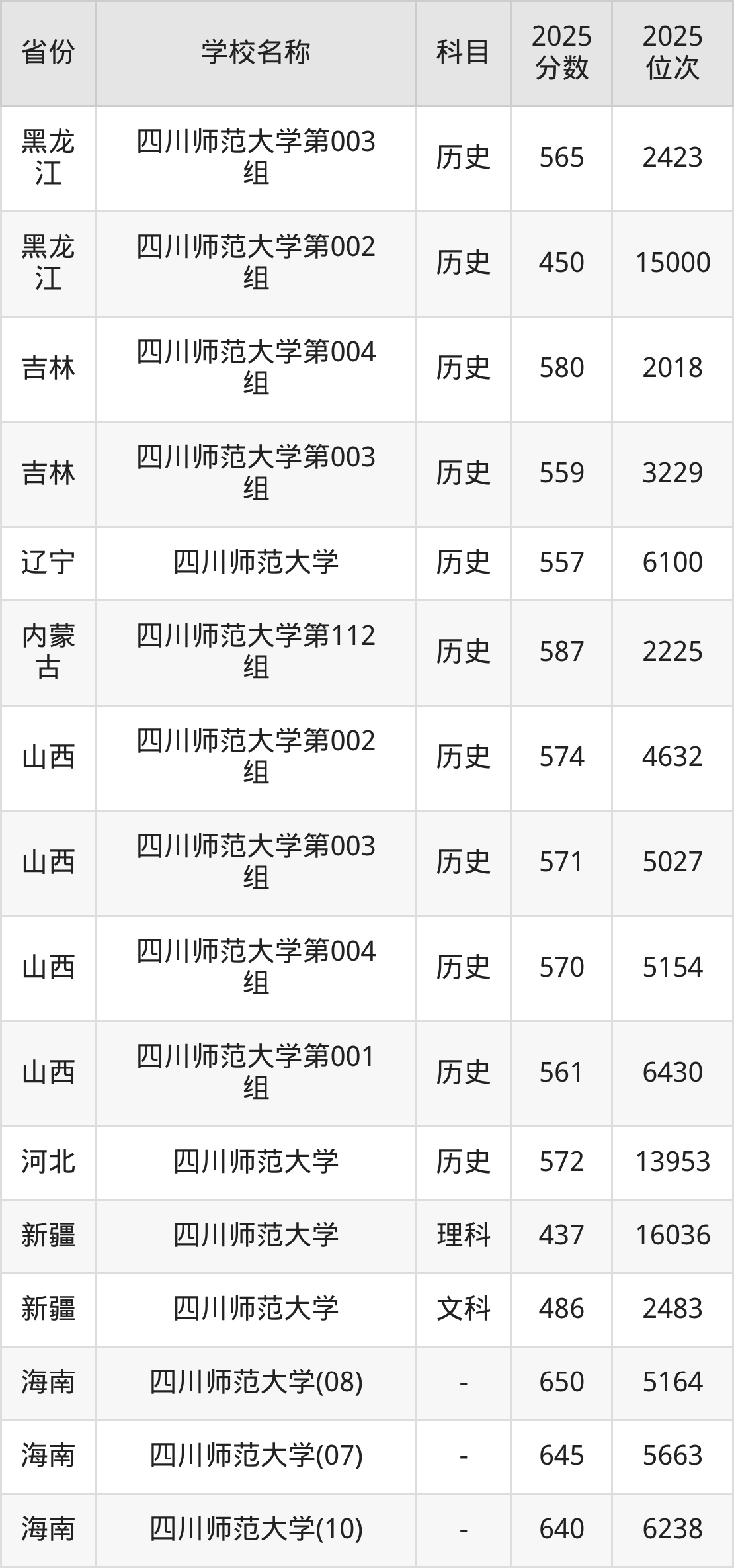 一、2025四川师范大学录取分数线