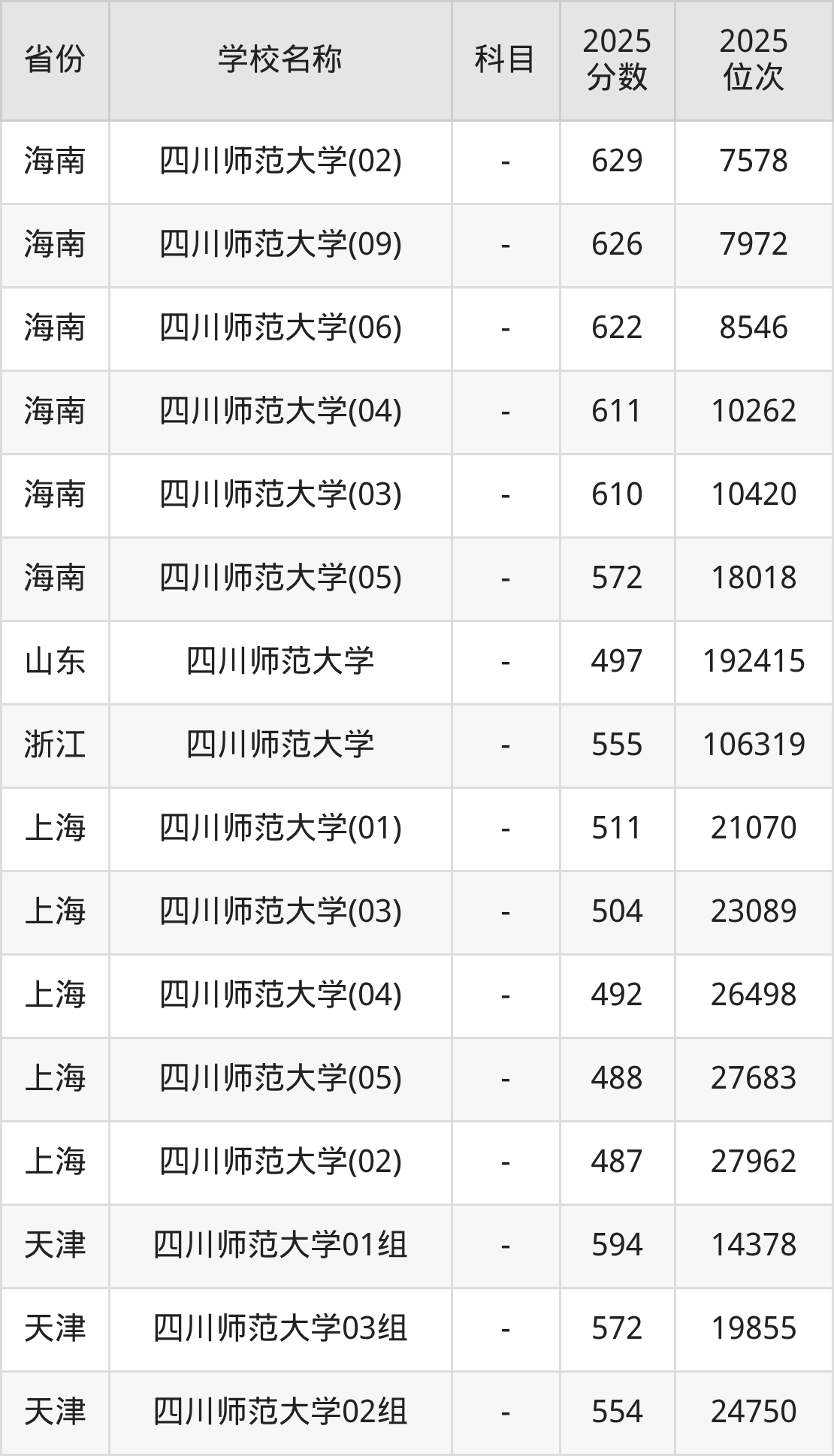 2025年四川师范大学在全国各省本科的最低录取分数线在412~650分之间。海南高考生最低650分能上四川师范大学、天津高考生最低594分能上四川师范大学……下文将展示四川师范大学在全国27个高考省份中的本科最低投档录取分汇总!