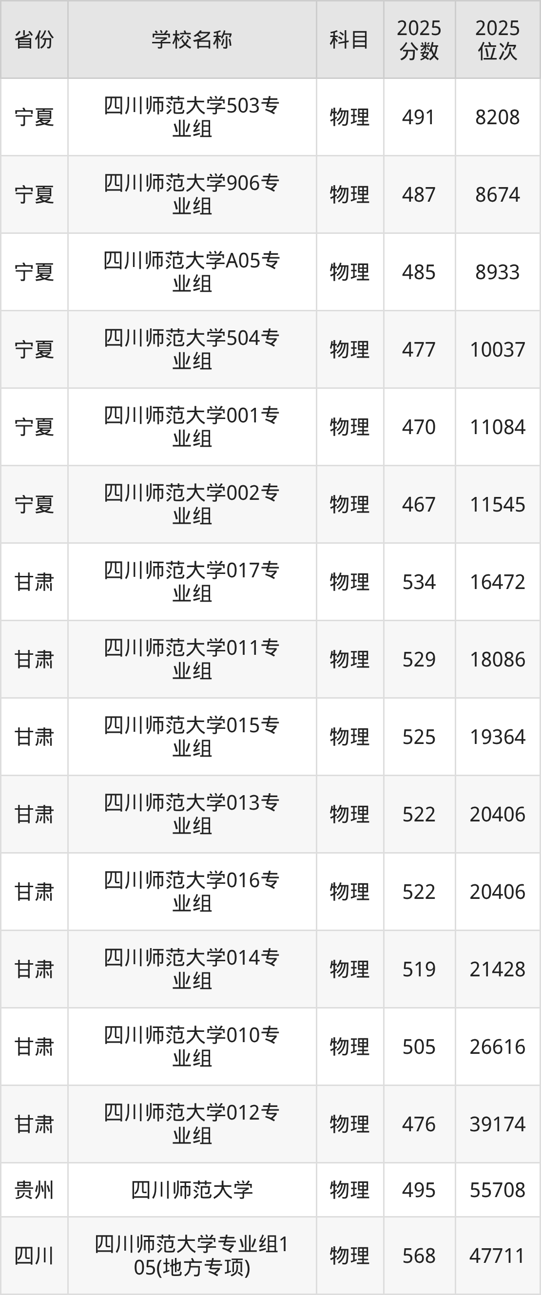 四川师范大学2025年有208个专业组面向四川省内首选了物理科目的考生招生: