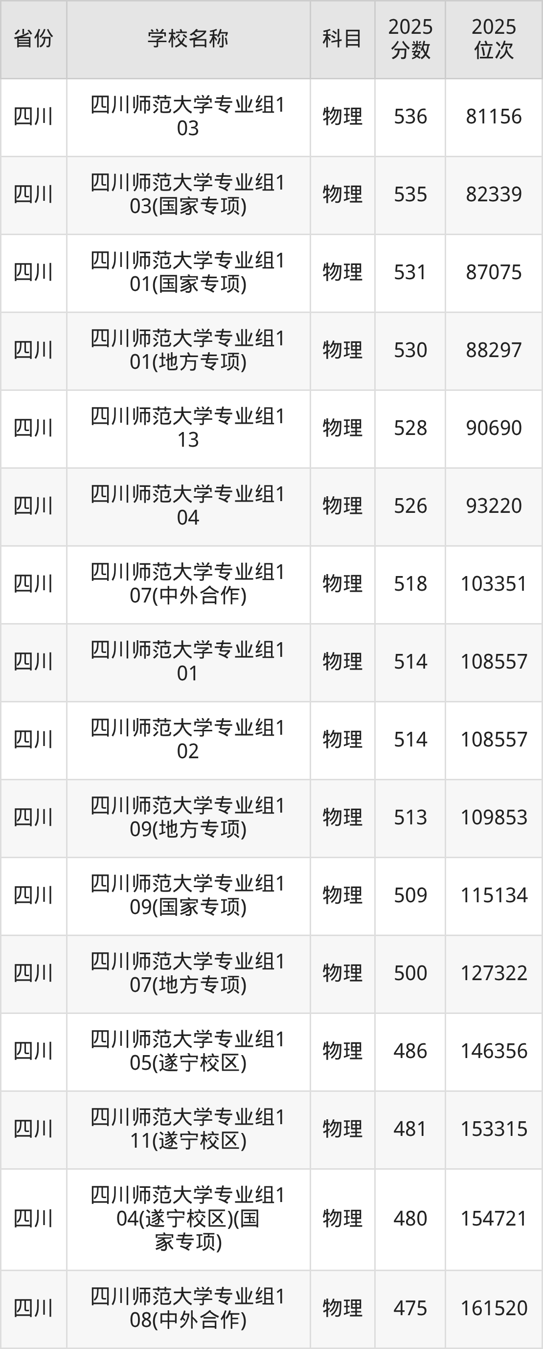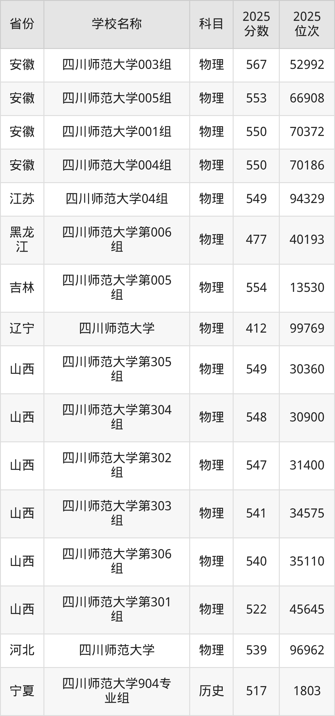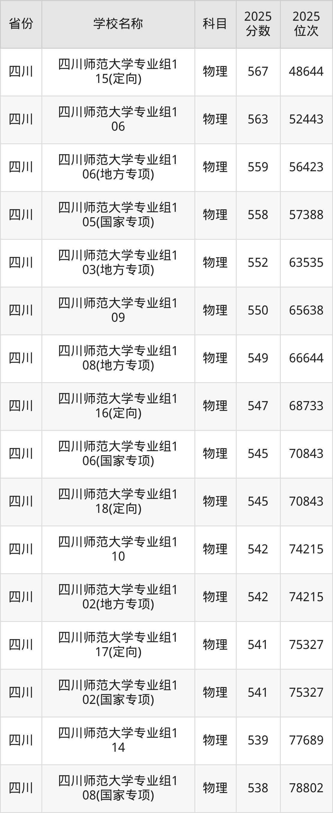 二、四川师范大学各专业录取分数线