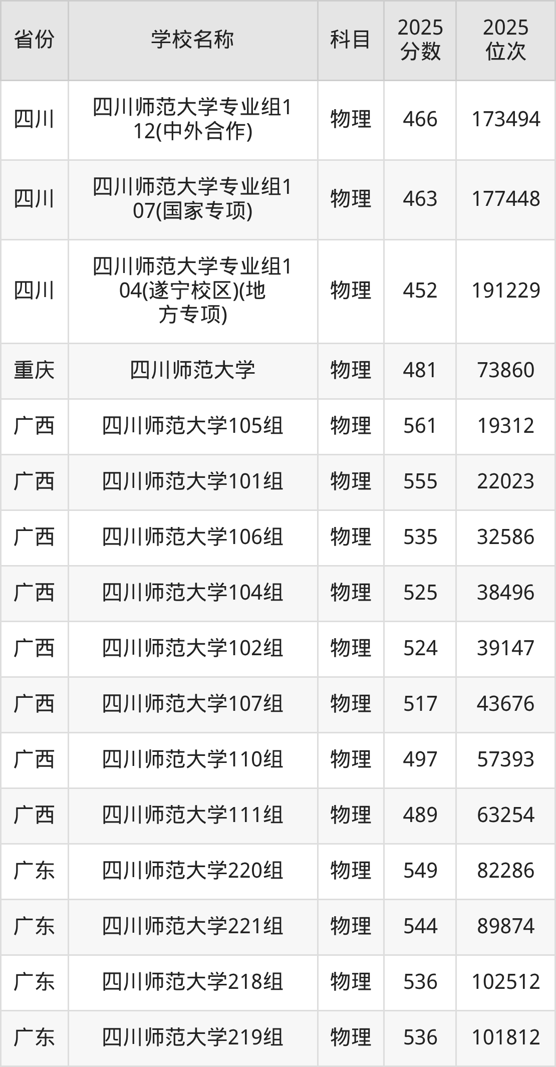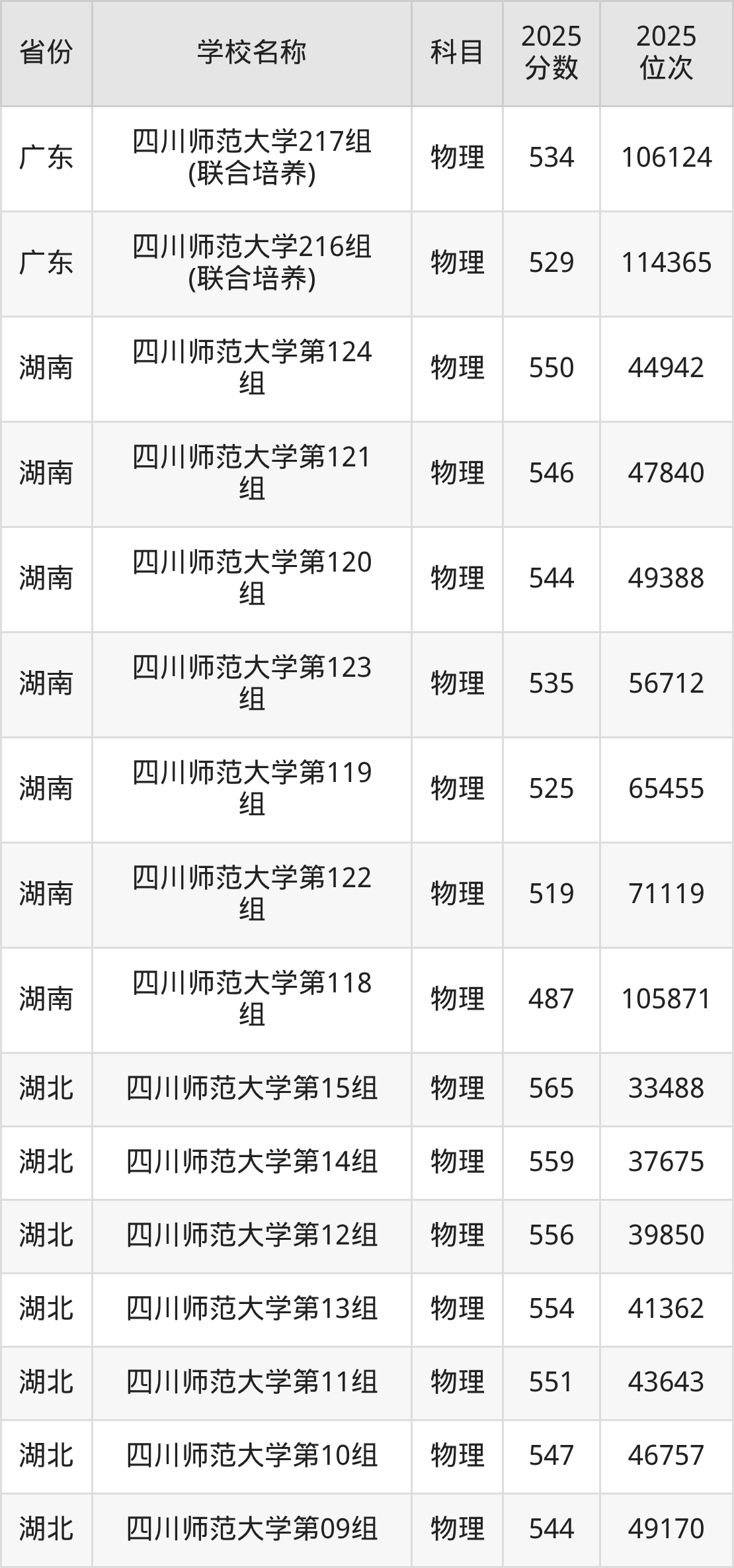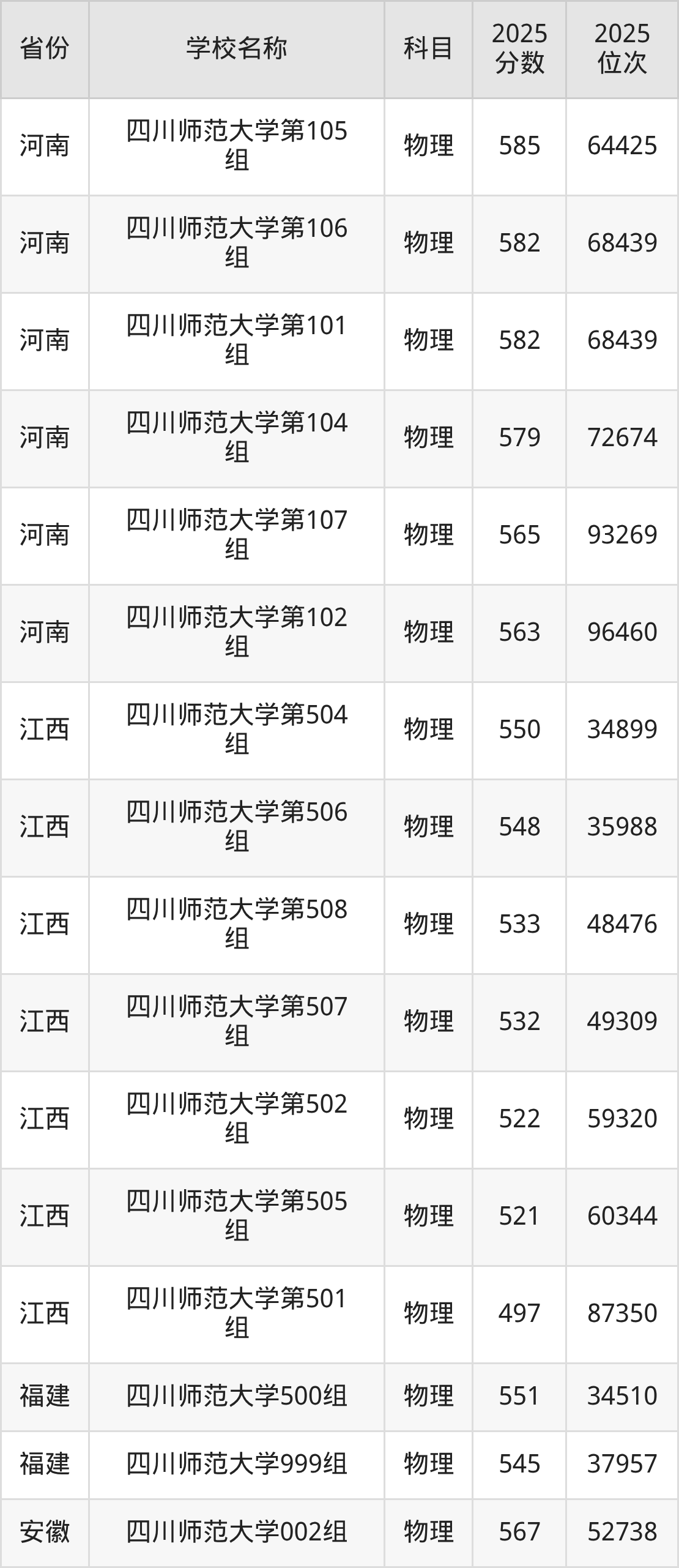 二、四川师范大学各专业录取分数线