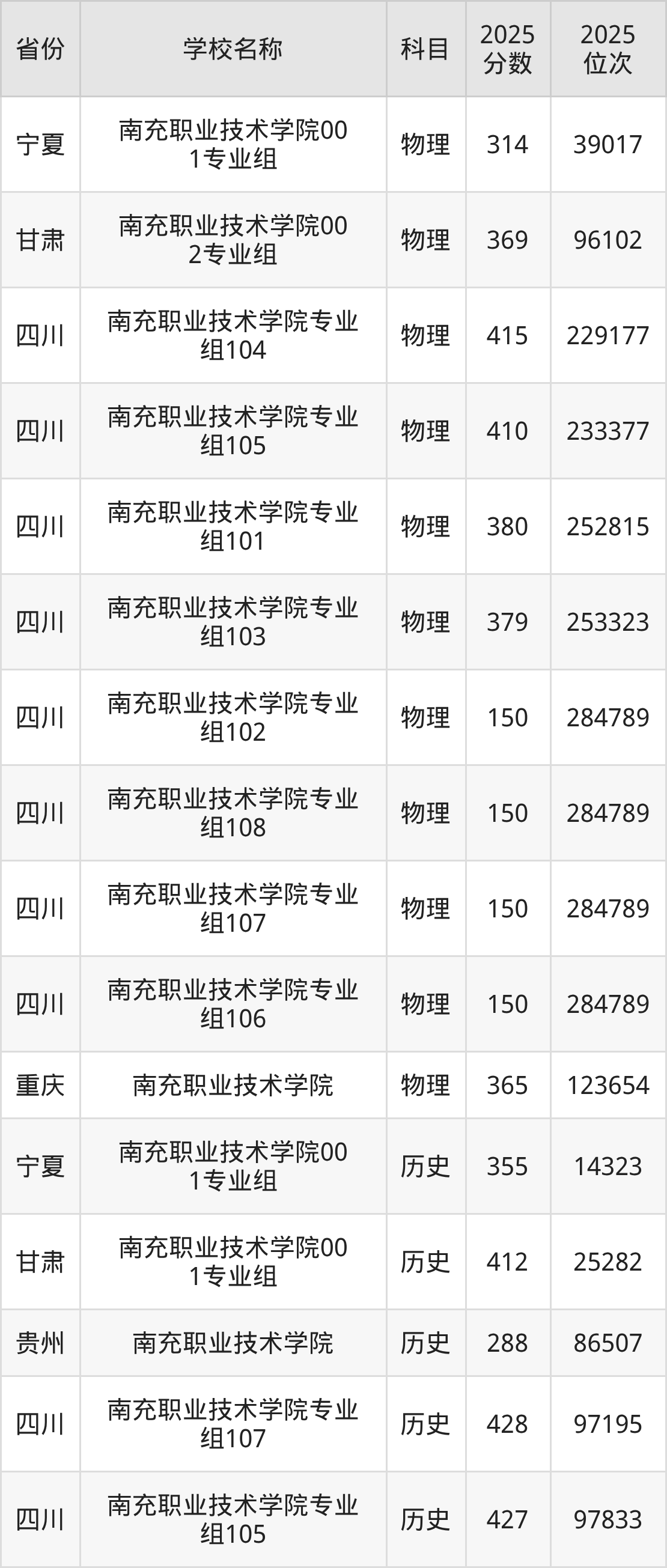 南充职业技术学院2025年有8个专业组面向四川省内首选了历史科目的考生招生: