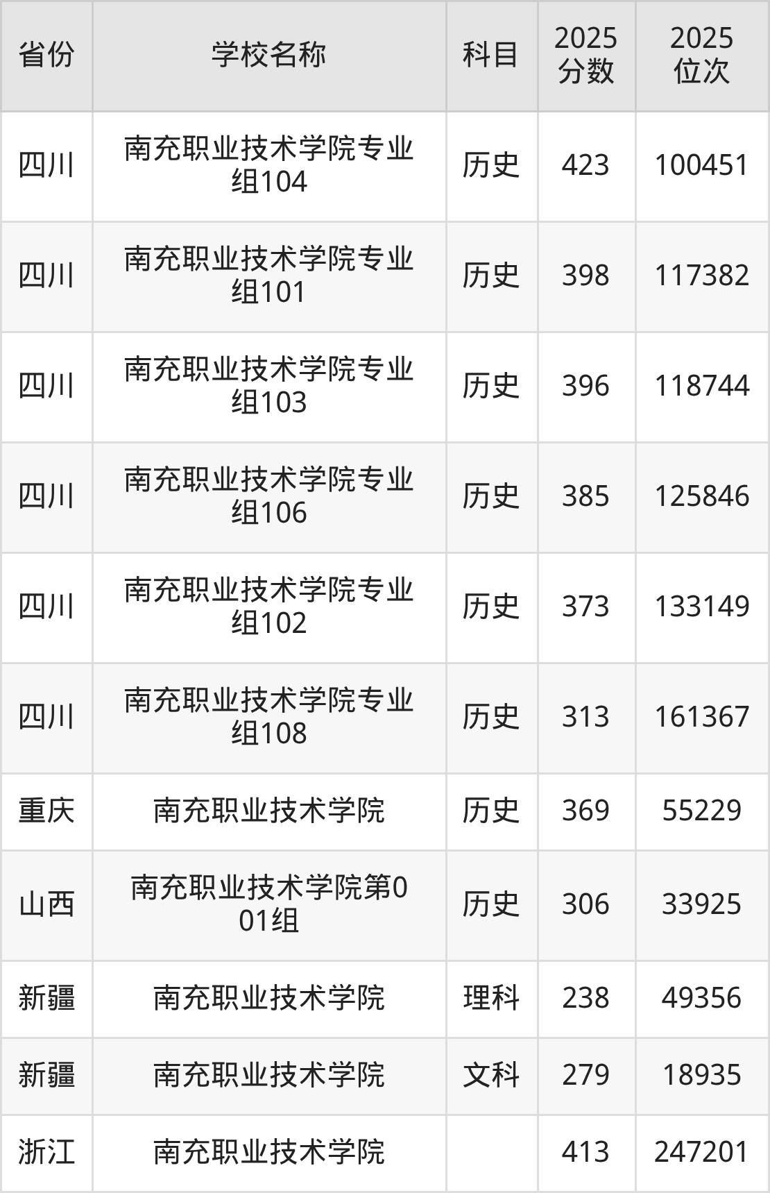 2025年南充职业技术学院在全国各省专科的最低录取分数线在150~428分之间。四川物理类高考生最低415分能上南充职业技术学院、浙江高考生最低413分能上南充职业技术学院……下文将展示南充职业技术学院在全国8个高考省份中的专科最低投档录取分汇总!