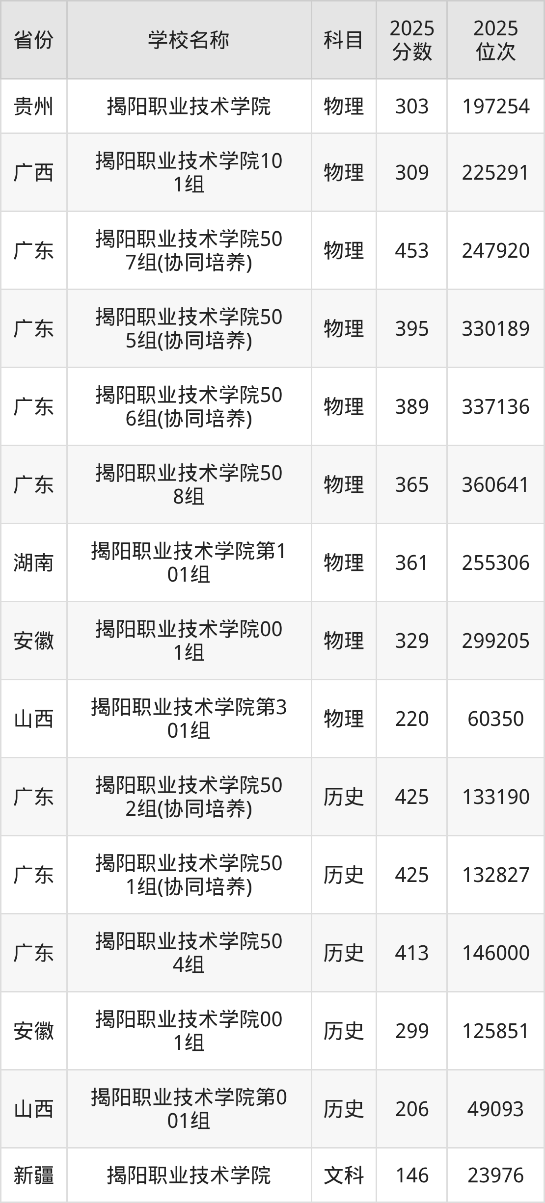 一、2025揭阳职业技术学院录取分数线