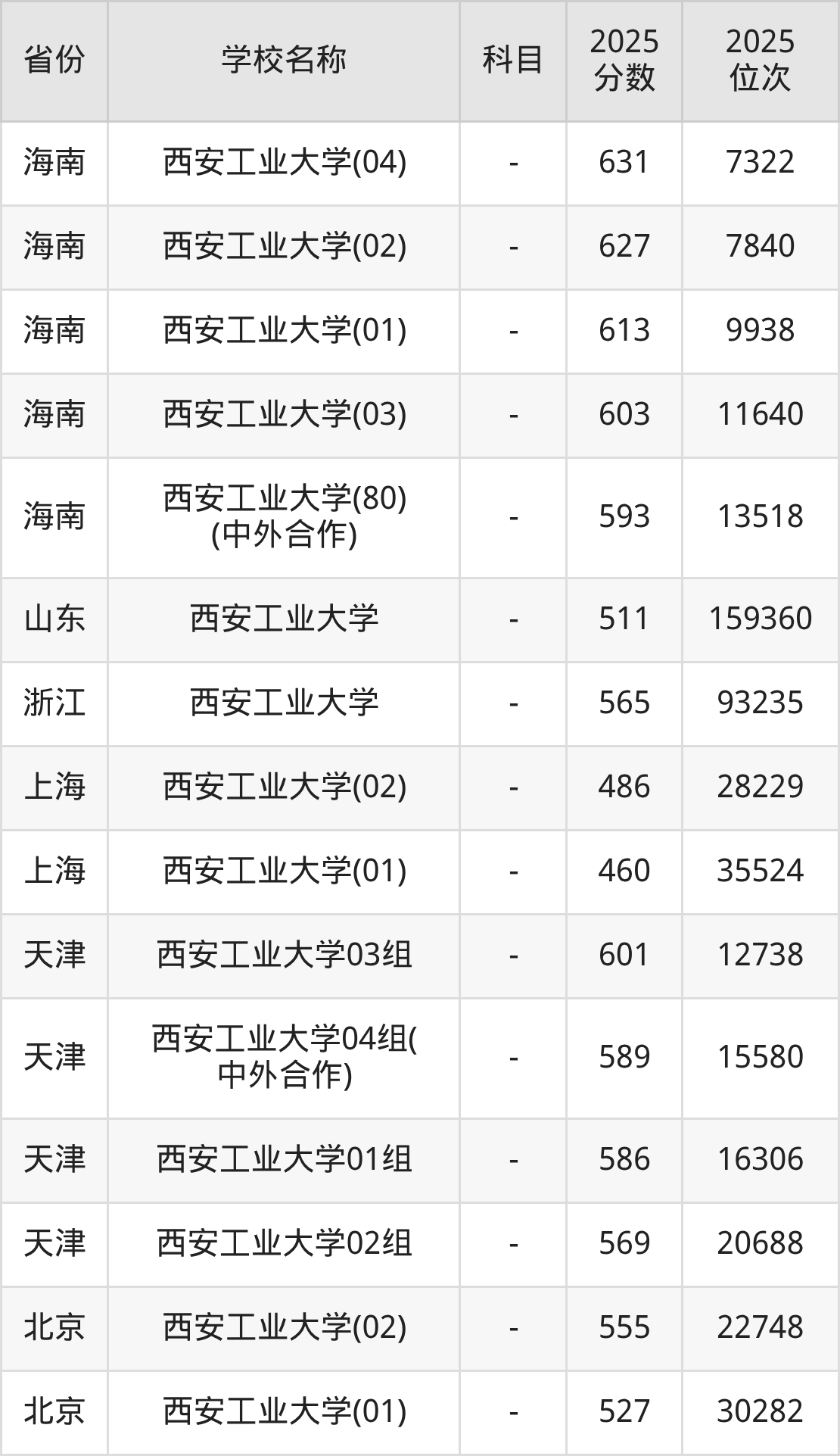 2025年西安工业大学在全国各省本科的最低录取分数线在432~631分之间。海南高考生最低631分能上西安工业大学、河南物理类高考生最低612分能上西安工业大学……下文将展示西安工业大学在全国27个高考省份中的本科最低投档录取分汇总!