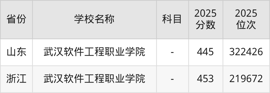 一、2025武汉软件工程职业学院录取分数线