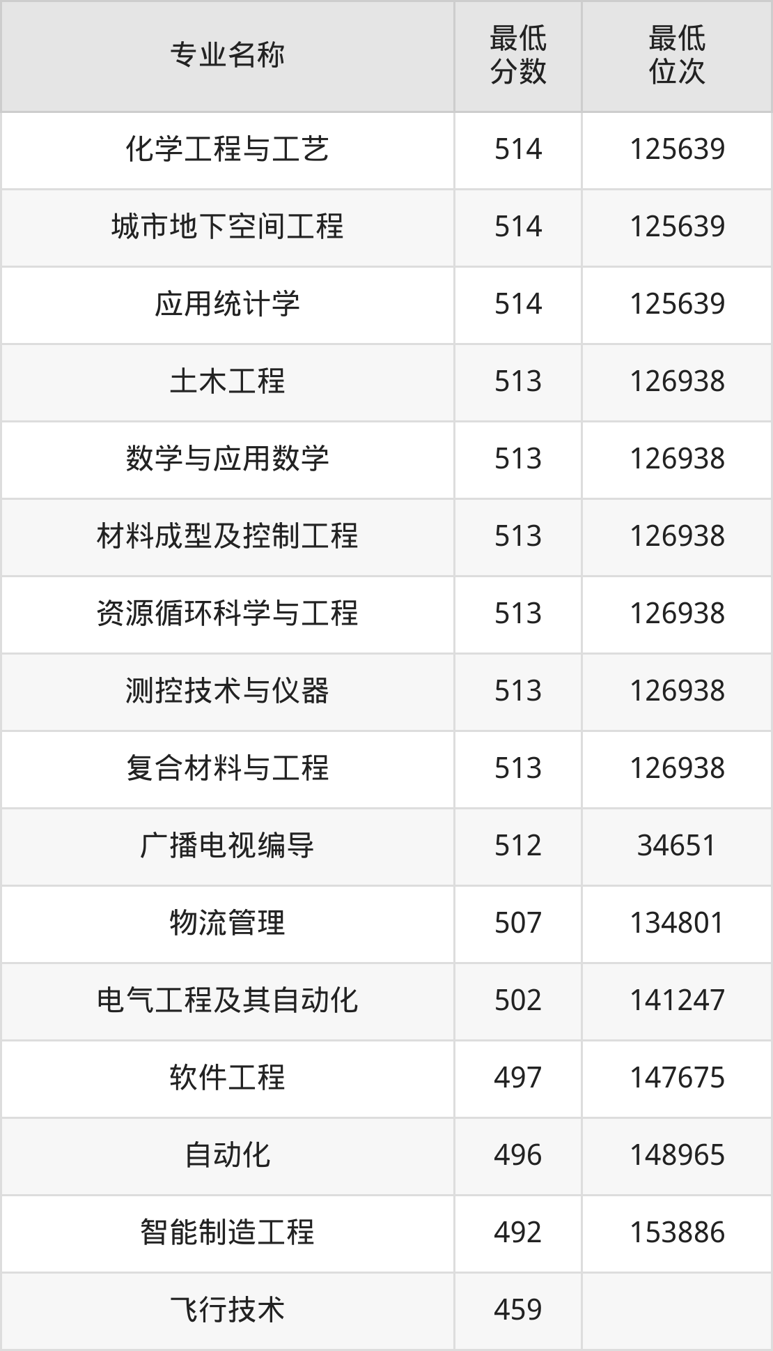 | 云南 | 理科二本 | —— | 497/452/477 |