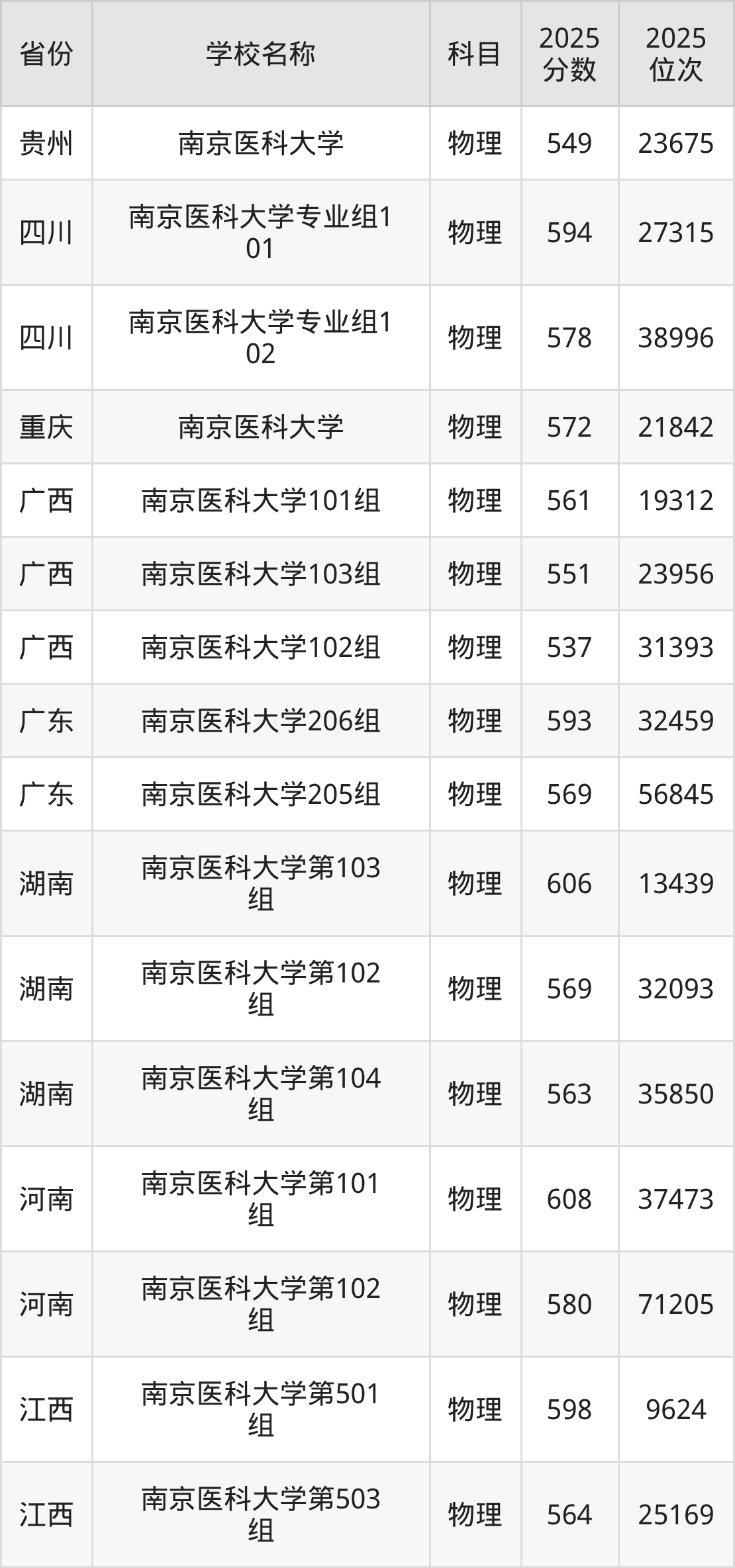 二、南京医科大学各专业录取分数线