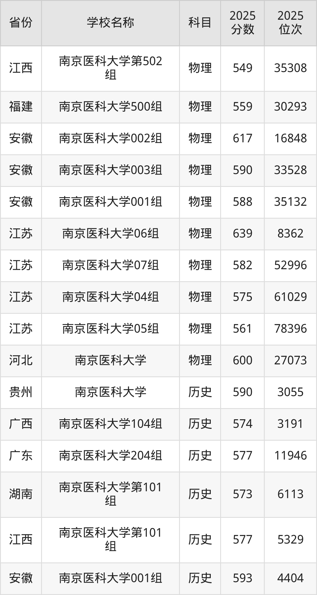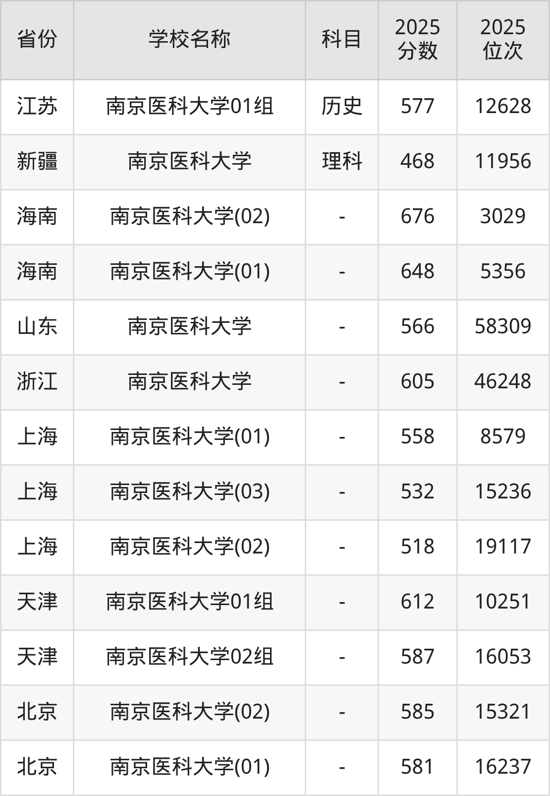 一、2025南京医科大学录取分数线