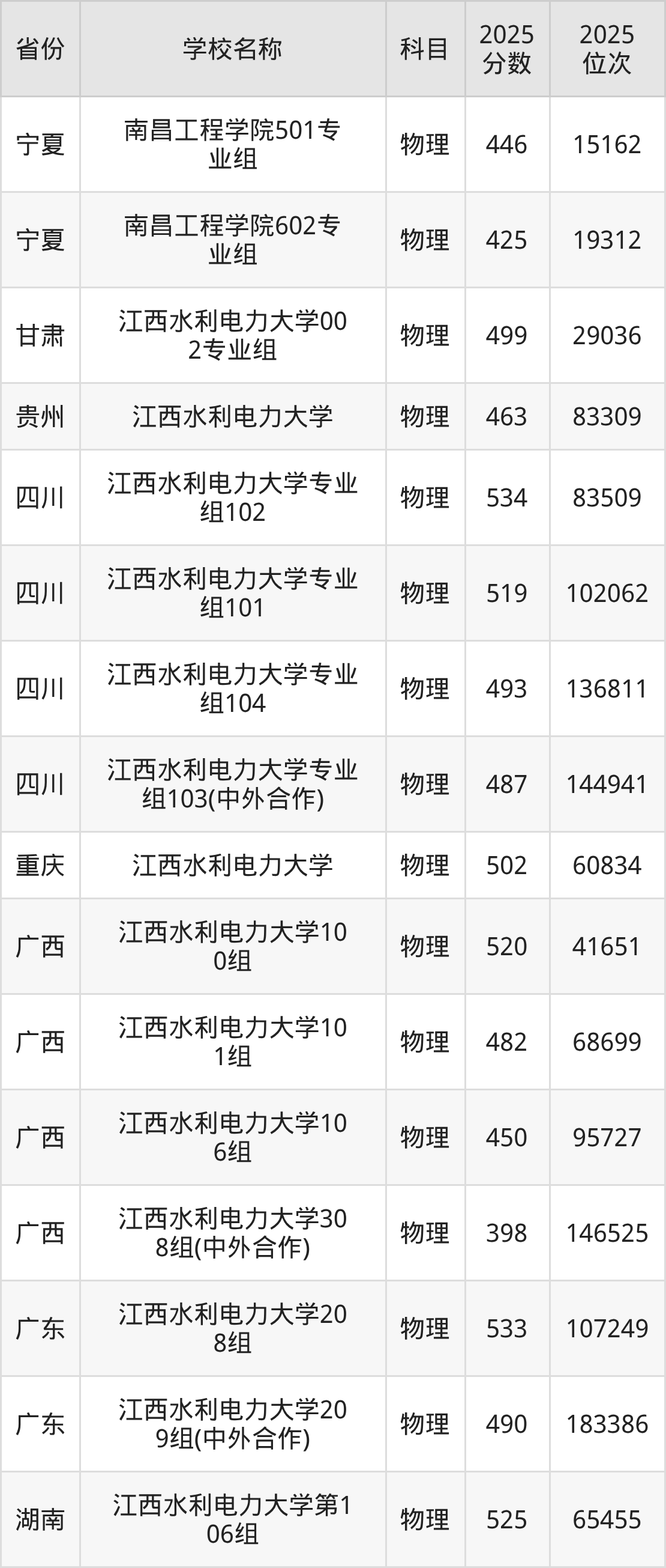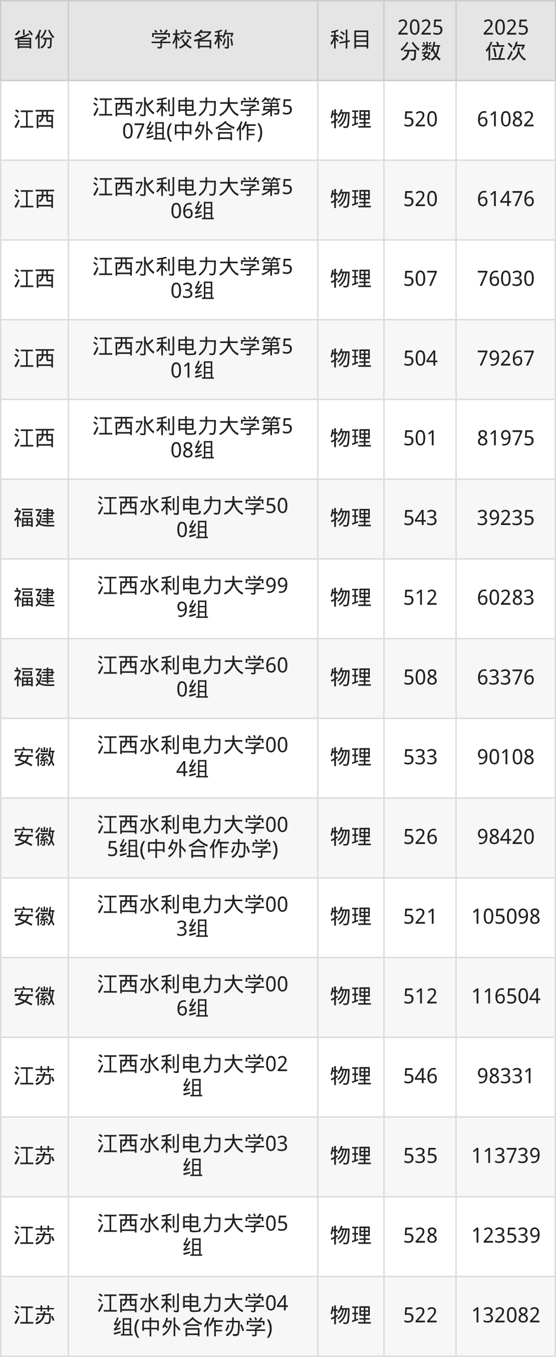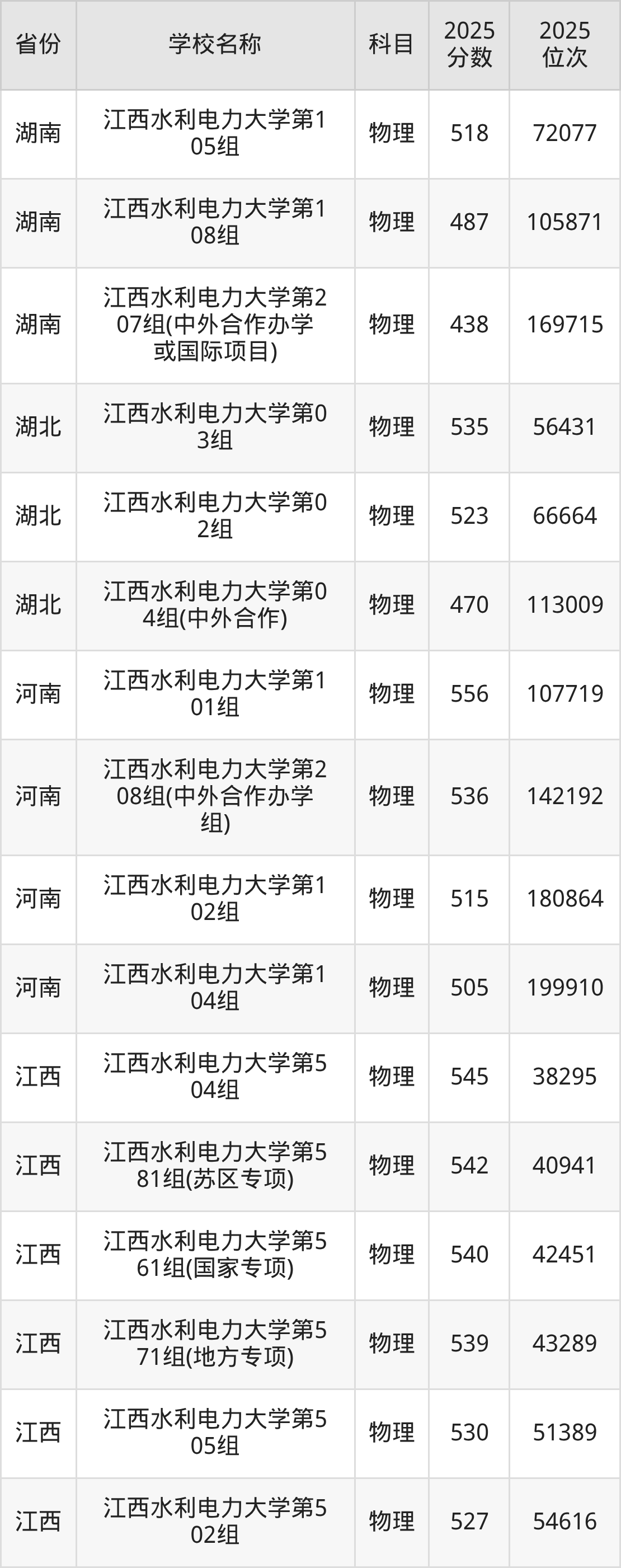 江西水利电力大学2025年有13个专业组面向江西省内首选了物理科目的考生招生: