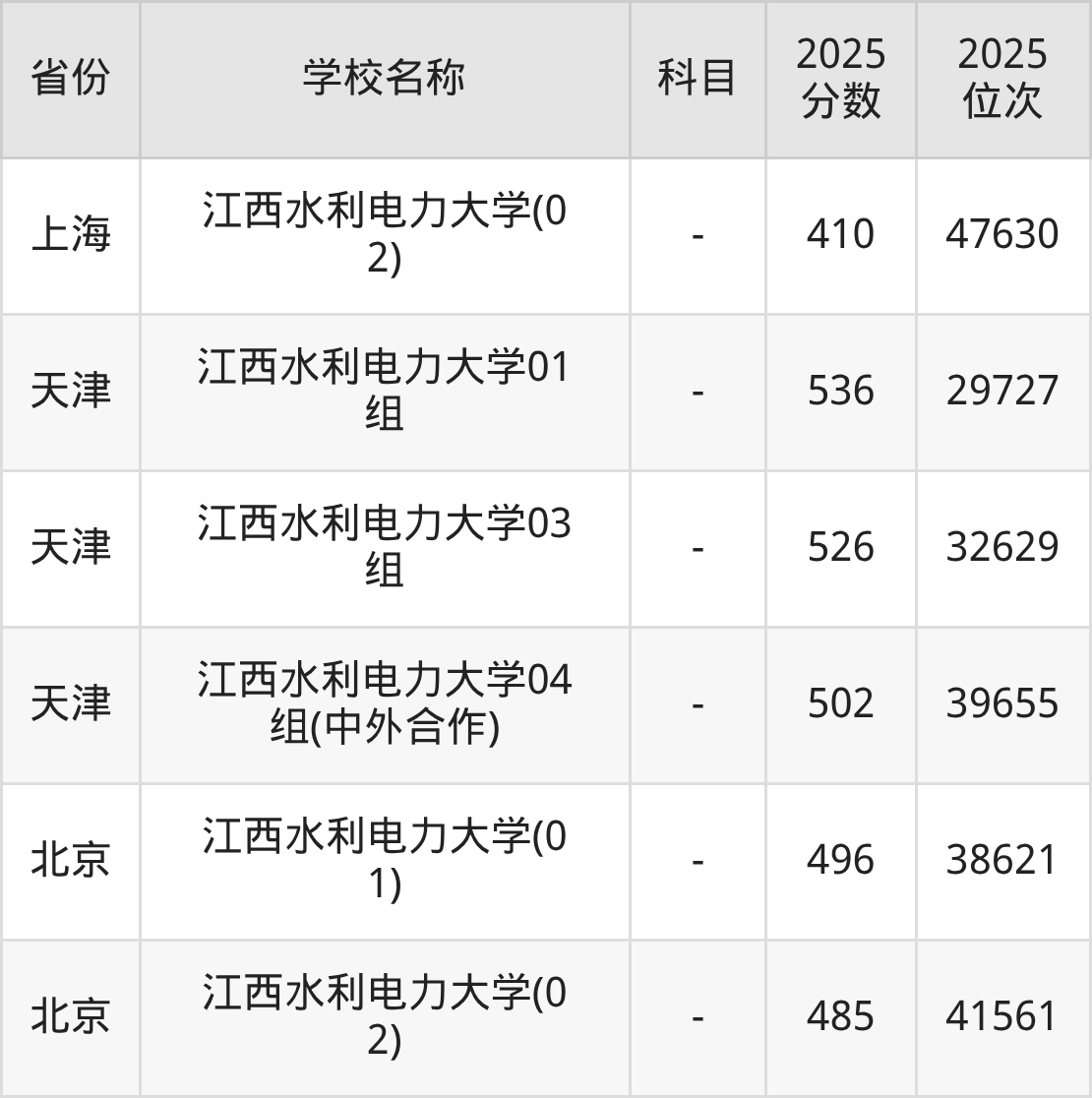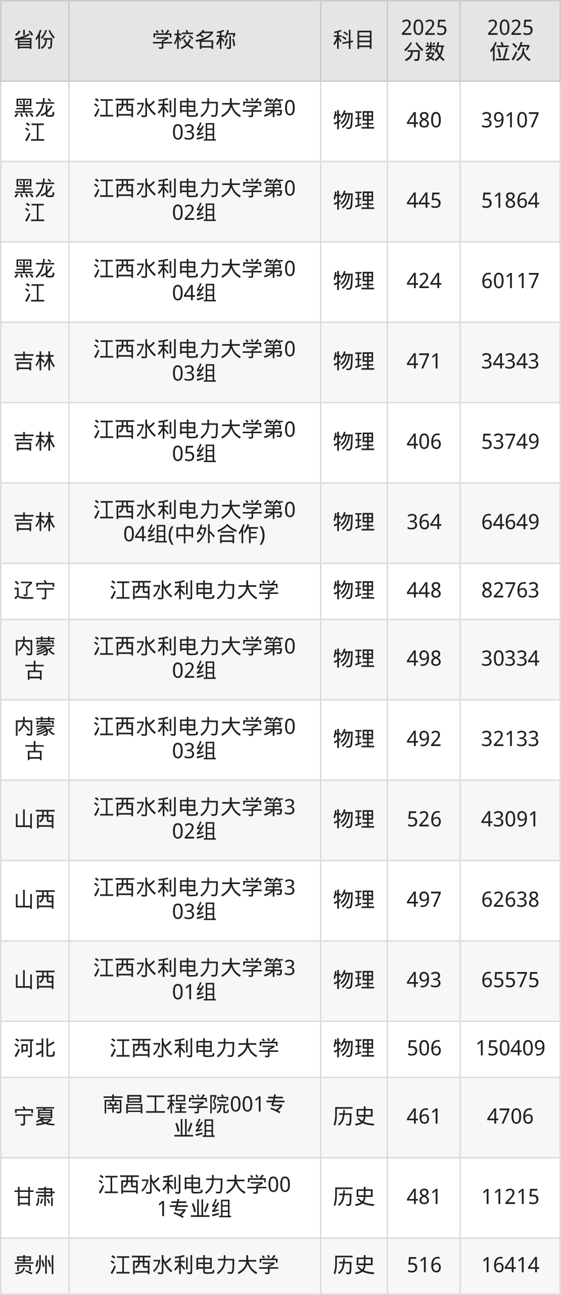 再看江西高考2025年本科批次线,历史类是486分、物理类是429分。通过对比发现:江西水利电力大学2025年历史类最低分比本科线高48分,物理类最低分比本科线高72分。2026届江西高考生,可通过每一次模考划线,来判断自己的成绩是否有机会被江西水利电力大学录取。