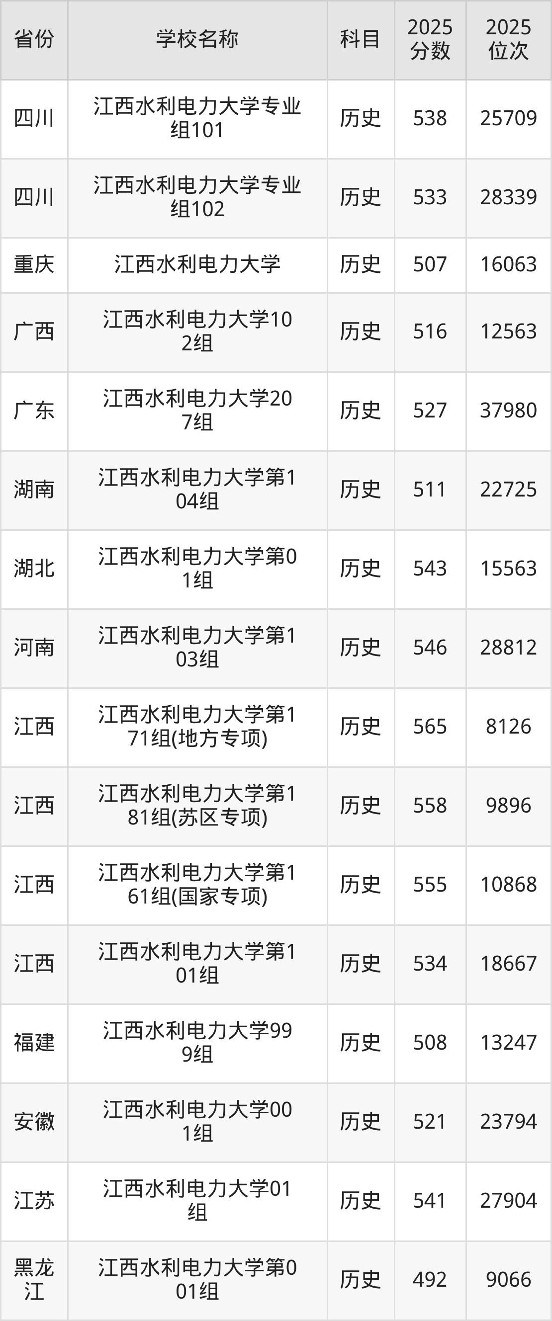 江西水利电力大学2025年有4个专业组面向江西省内首选了历史科目的考生招生: