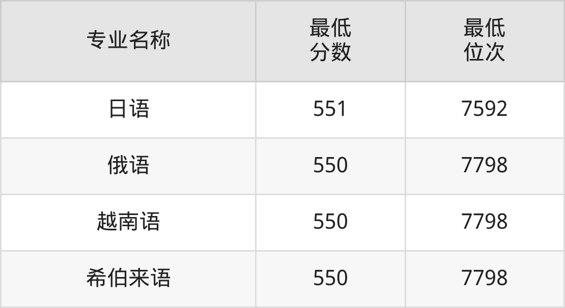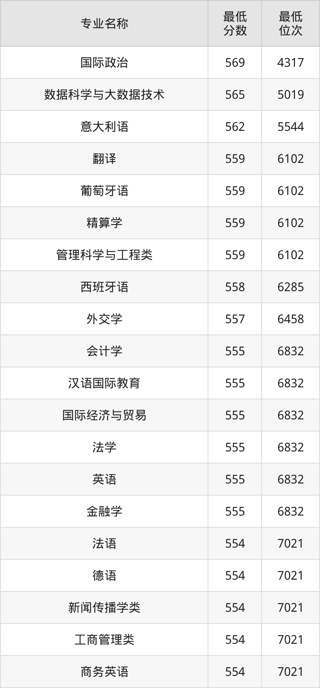 上海外国语大学2024年在上海各专业的录取分数线是:550分-569分。