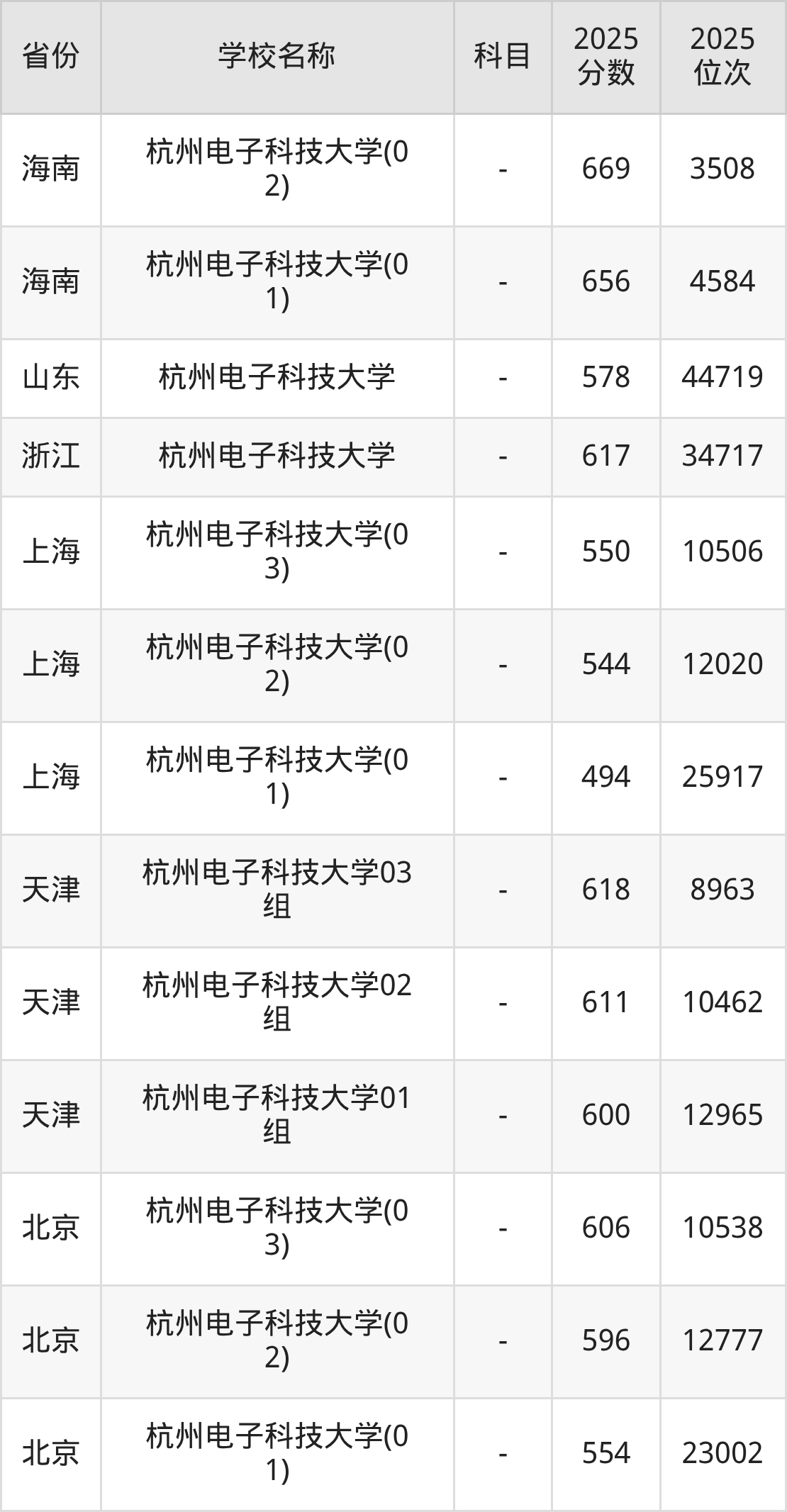 2025年杭州电子科技大学在全国各省本科的最低录取分数线在485~669分之间。海南高考生最低669分能上杭州电子科技大学、河南物理类高考生最低634分能上杭州电子科技大学……下文将展示杭州电子科技大学在全国27个高考省份中的本科最低投档录取分汇总!