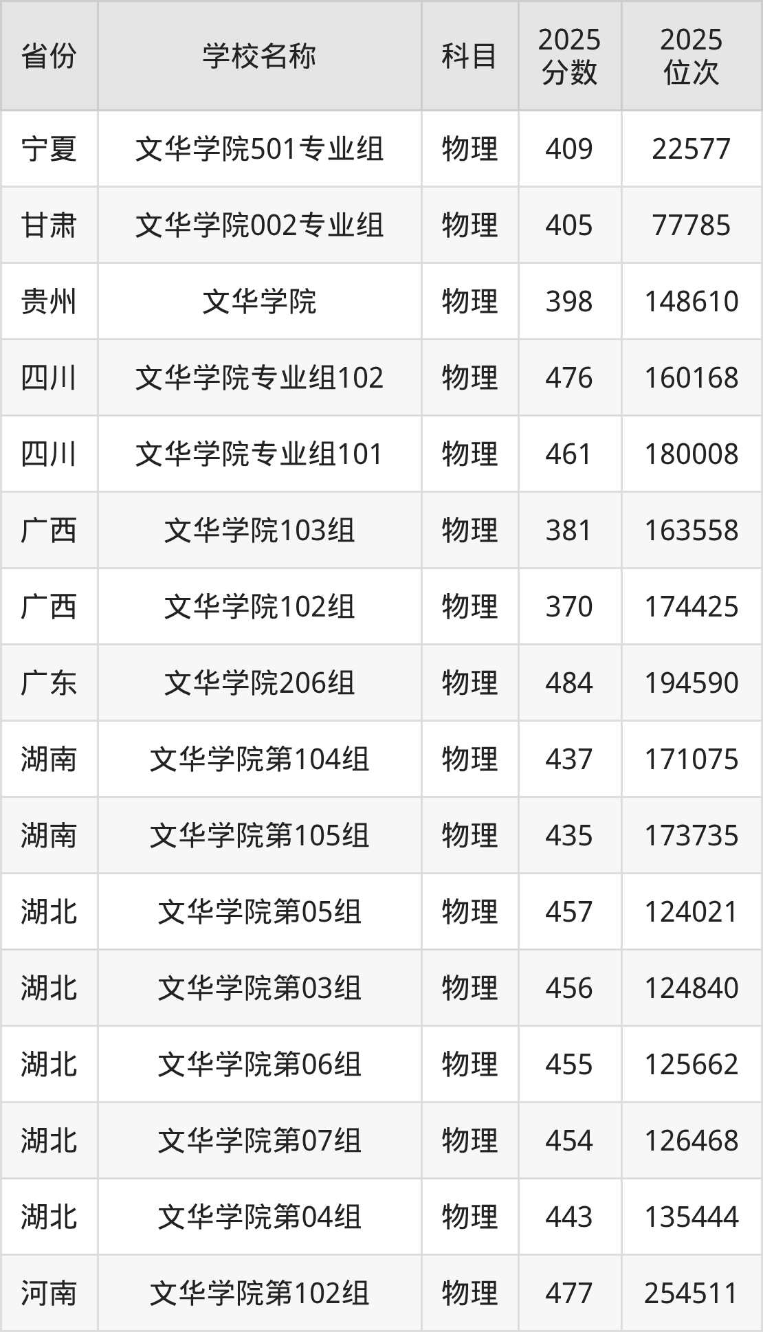 文华学院2025年有7个专业组面向湖北省内首选了物理科目的考生招生: