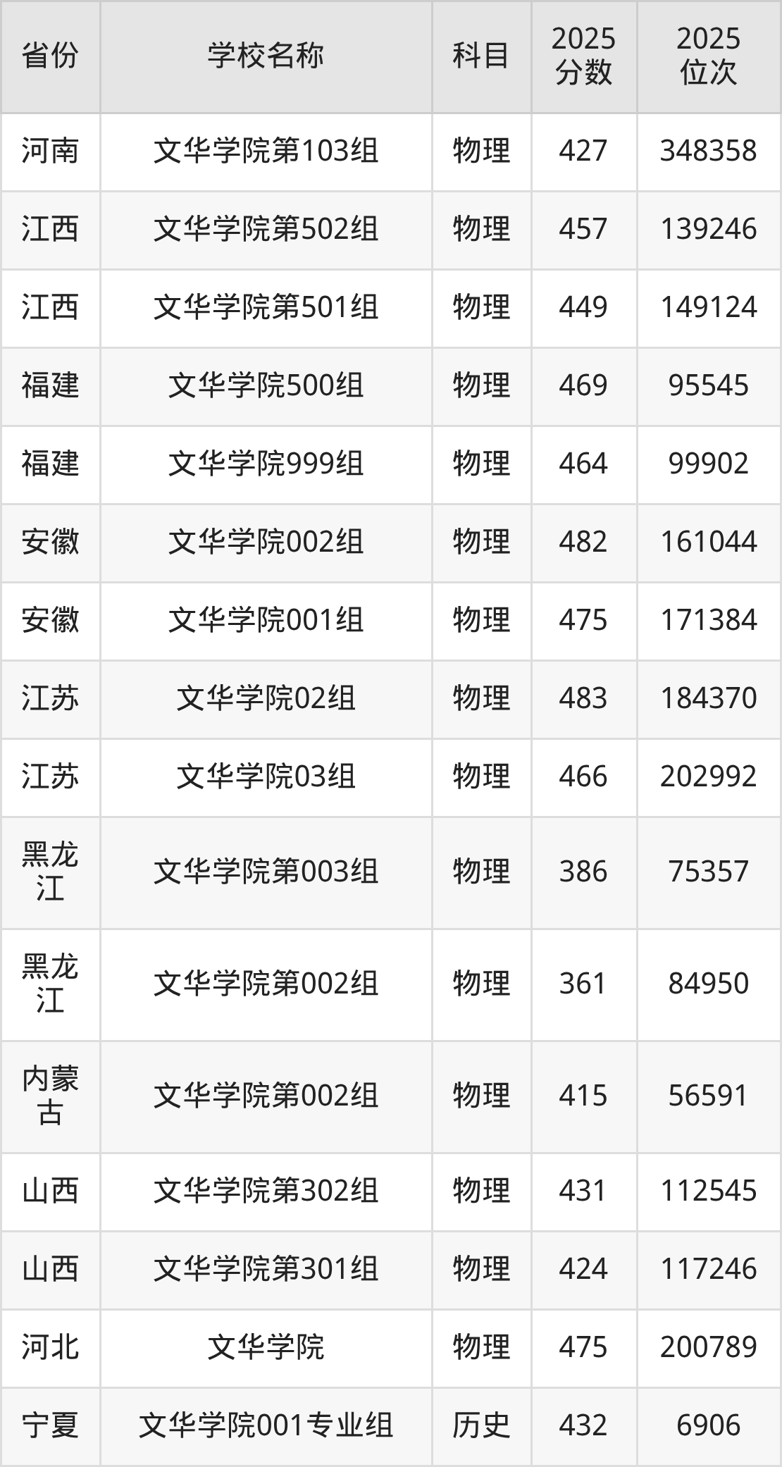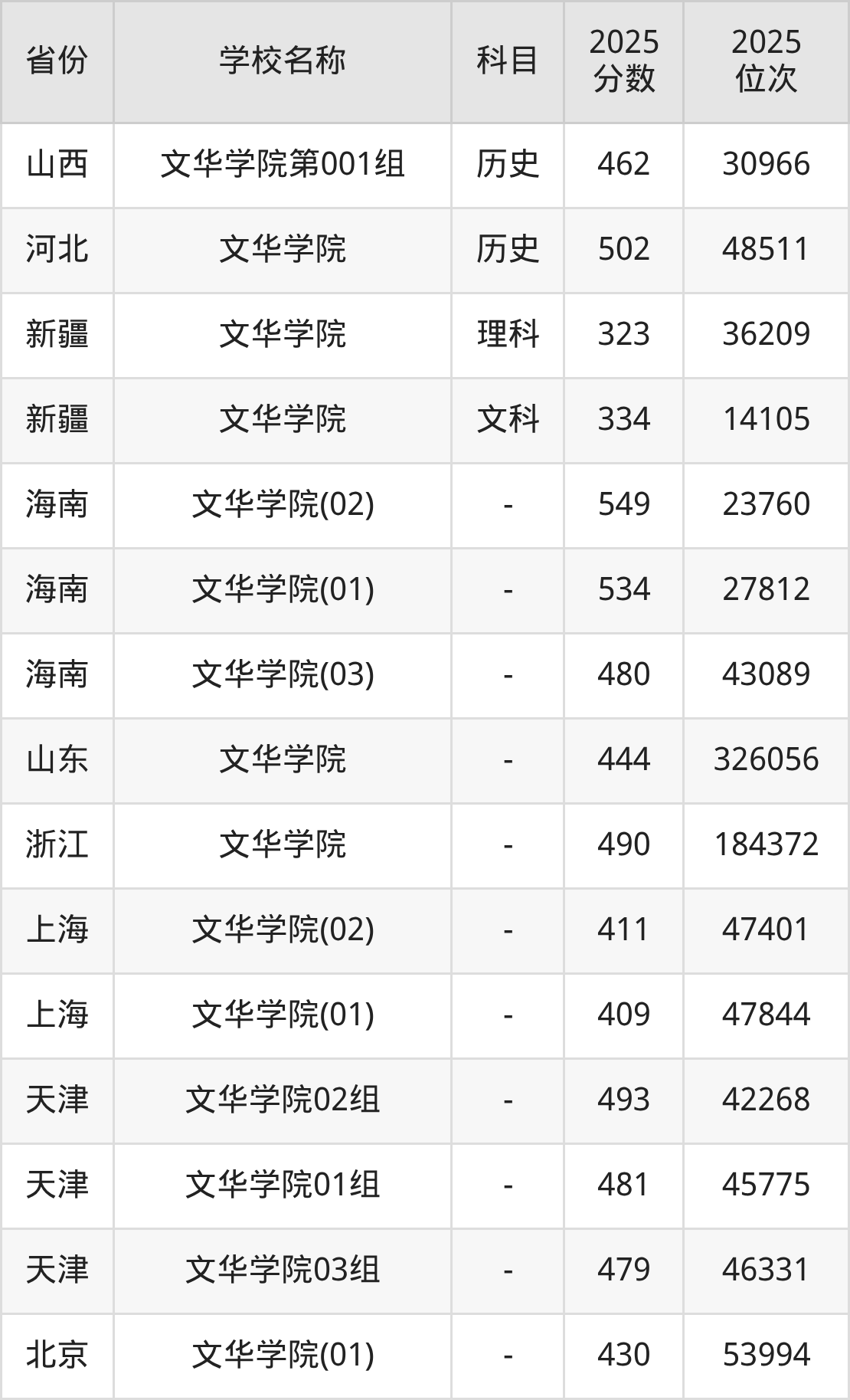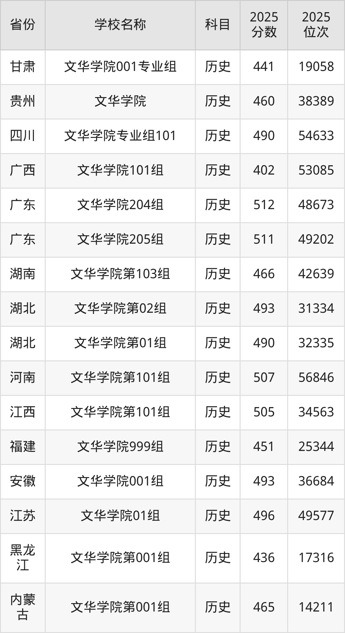 一、2025文华学院录取分数线