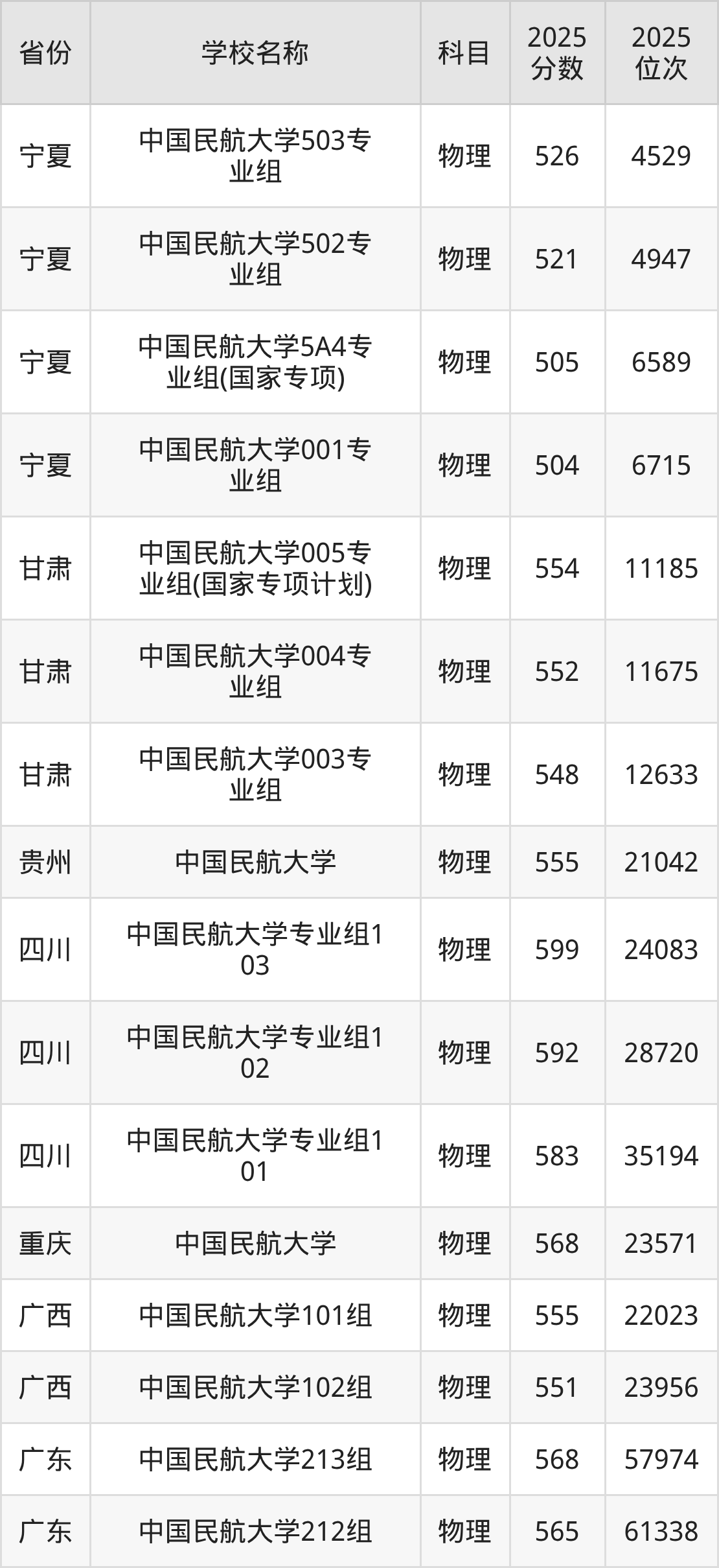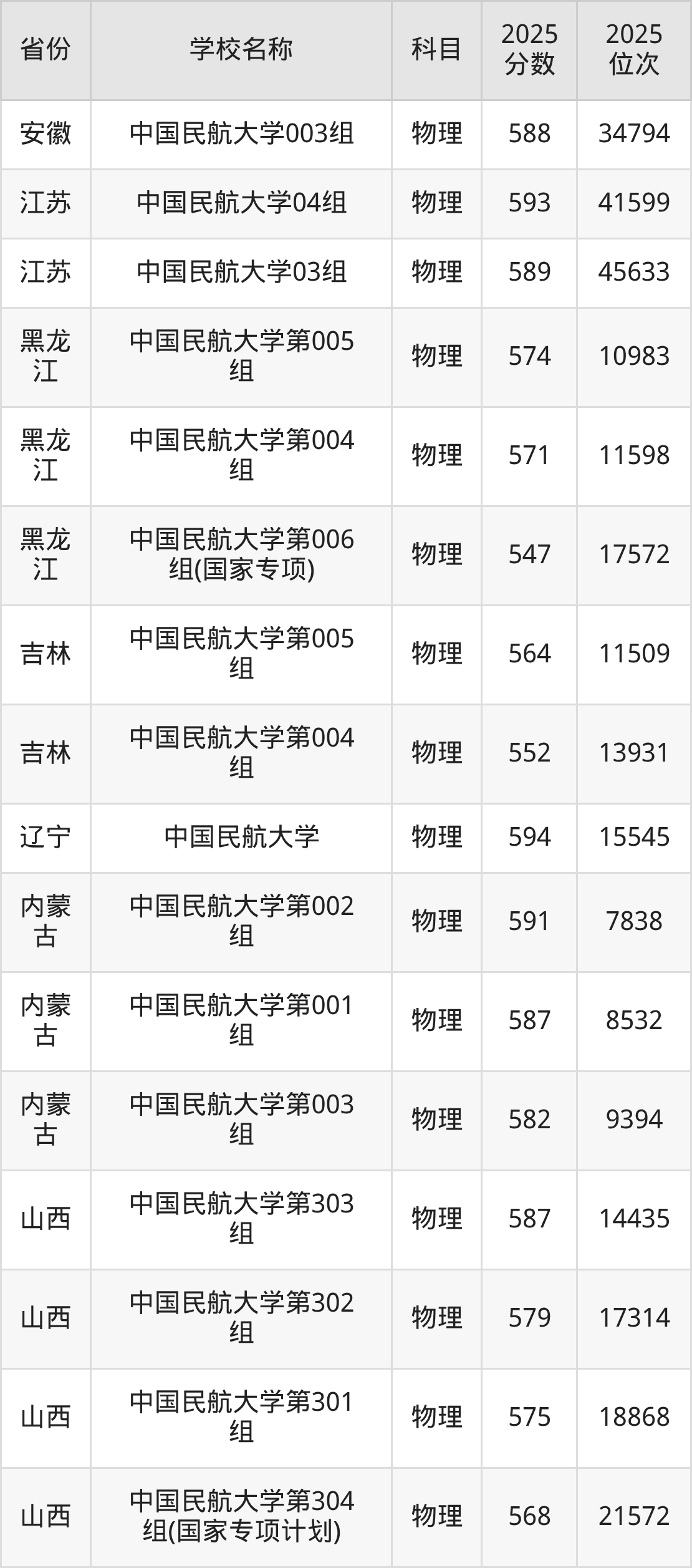 3、飞行器适航技术专业:2025年最低569分、最低位次是15850
