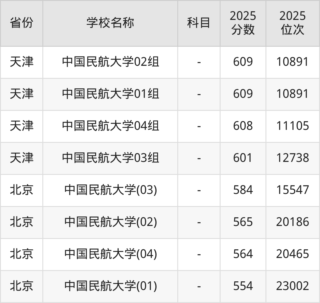 中国民航大学2025年有7个专业组面向天津市内的考生招生: