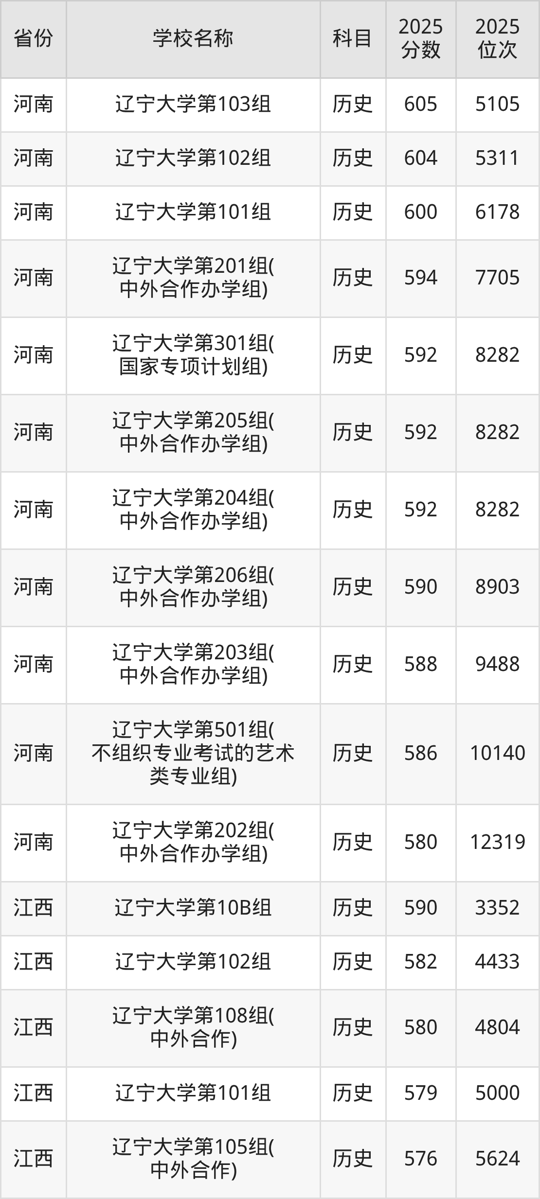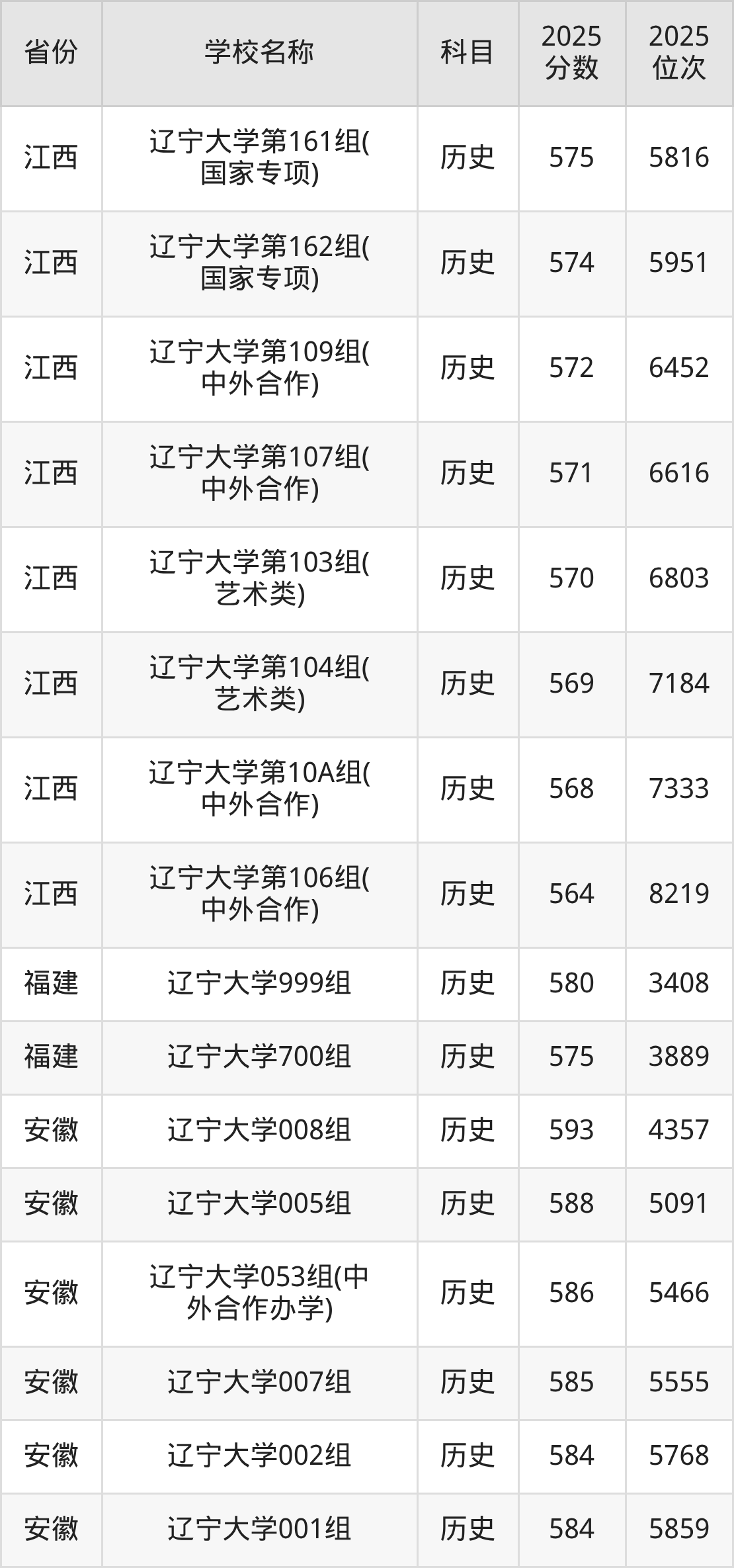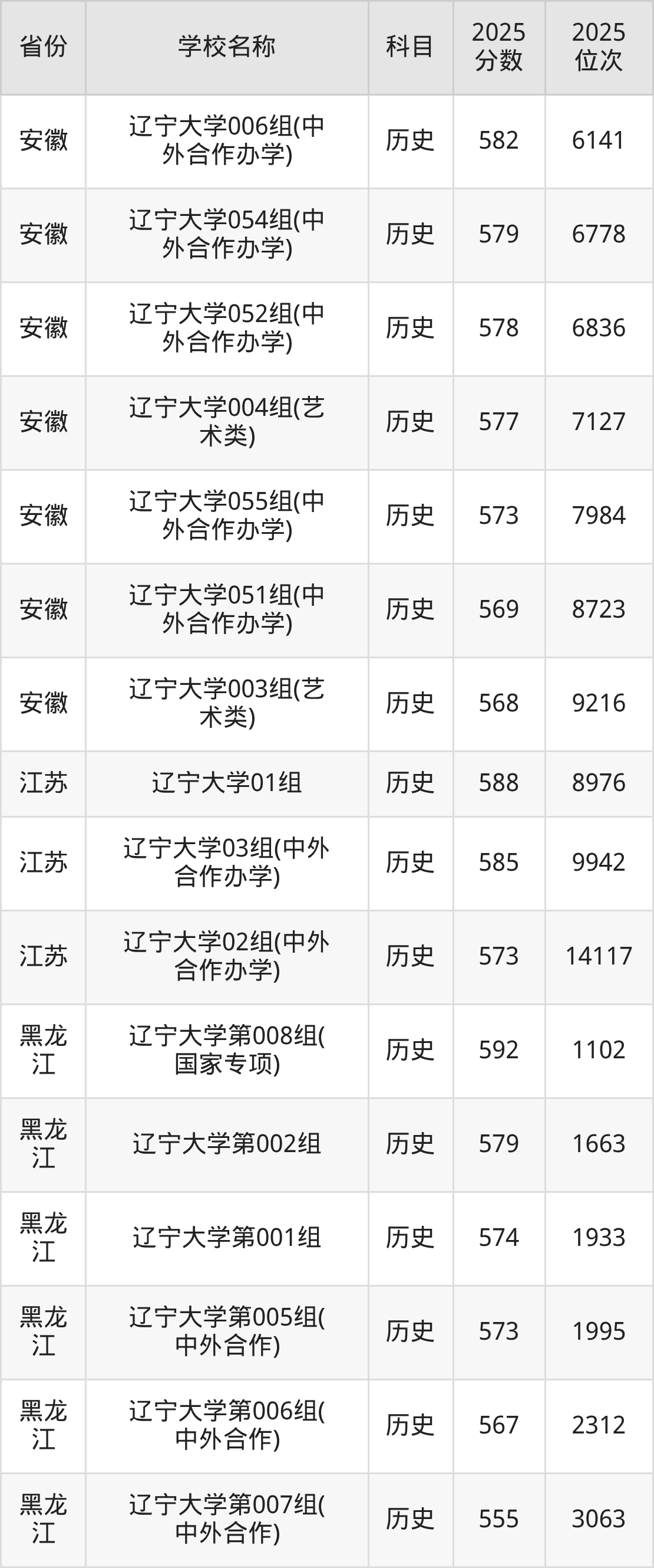 6、历史学专业:2025年最低593分、最低位次是2546