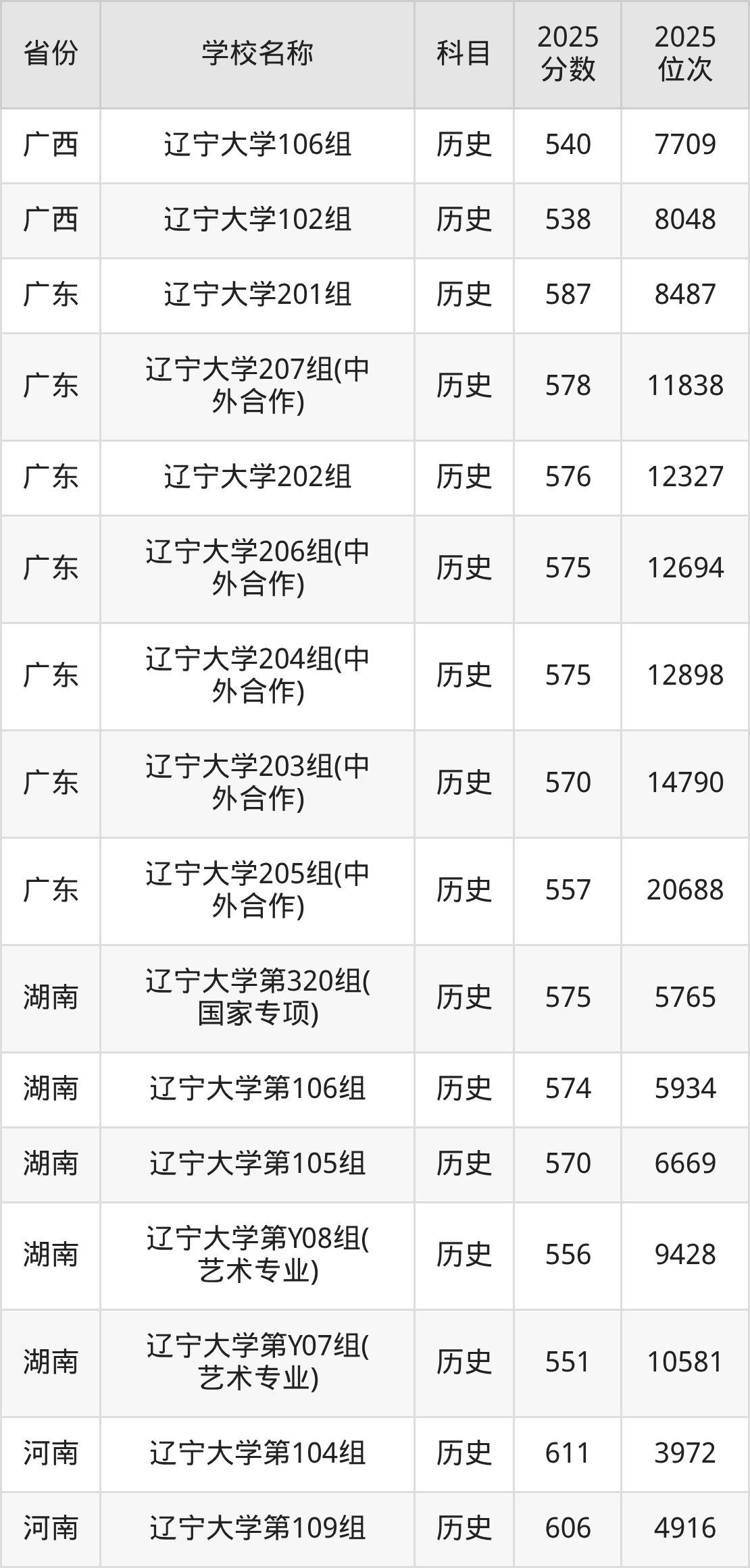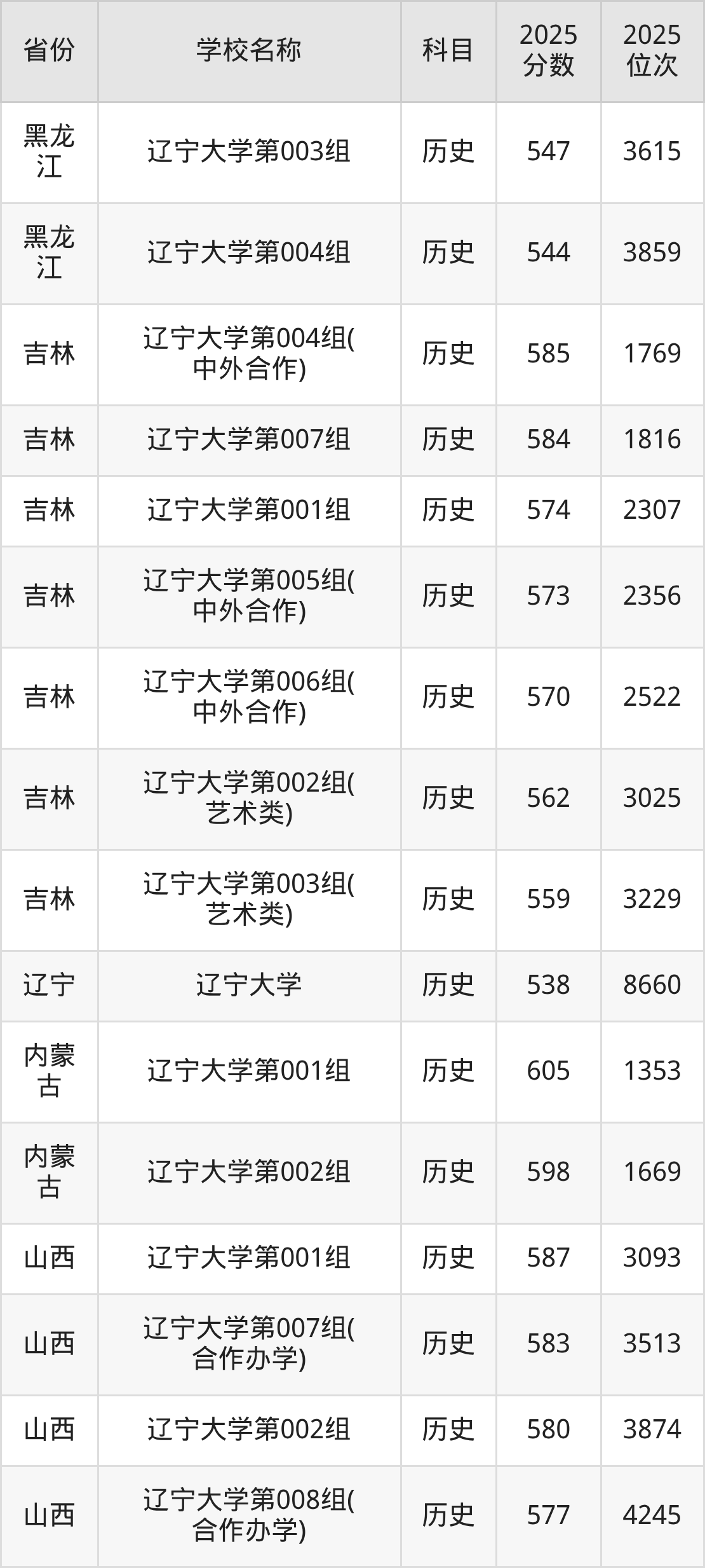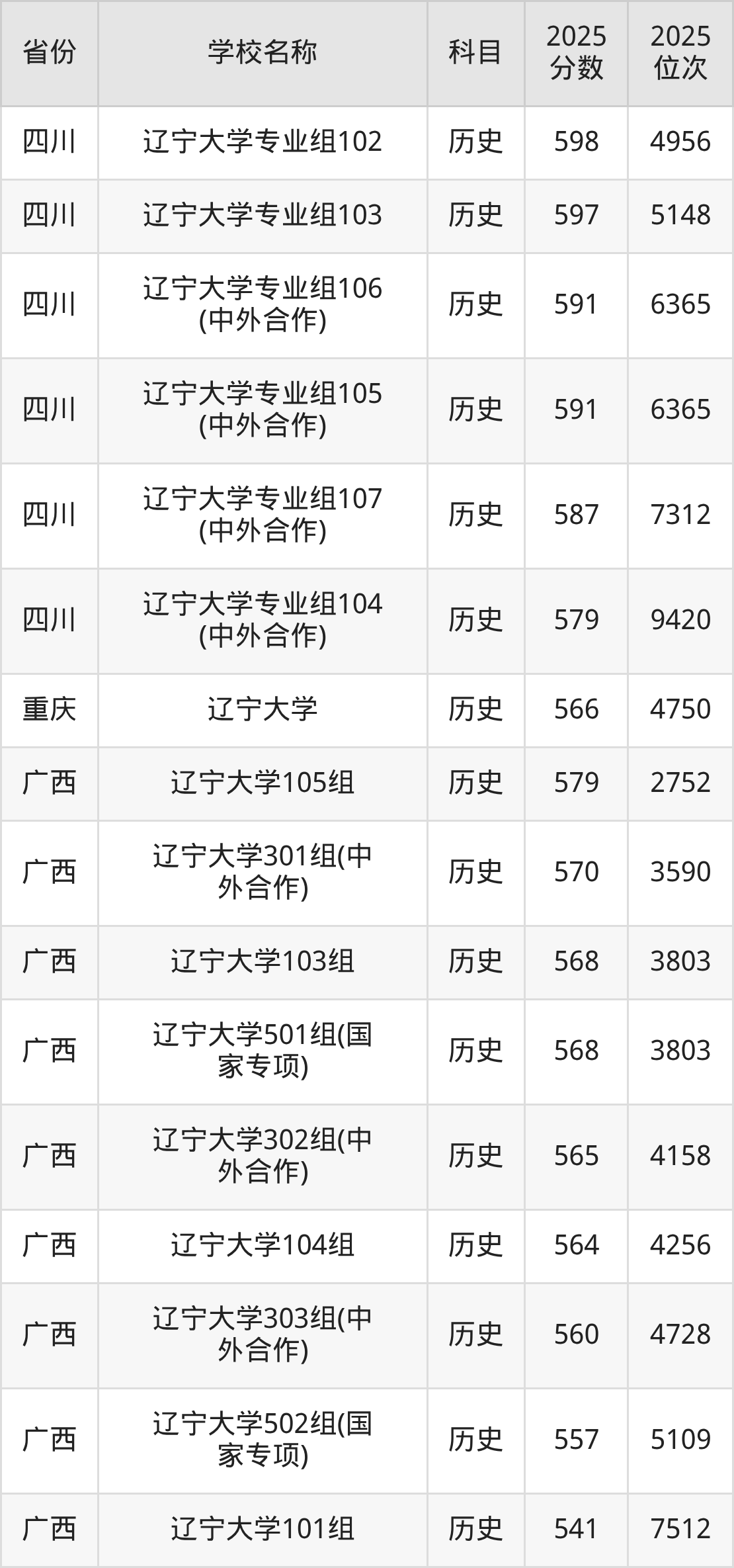 6、历史学专业:2025年最低593分、最低位次是2546